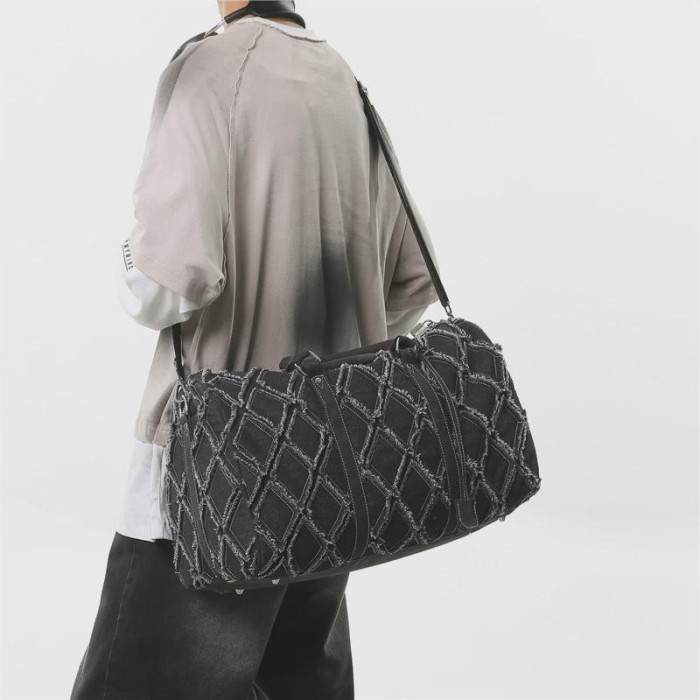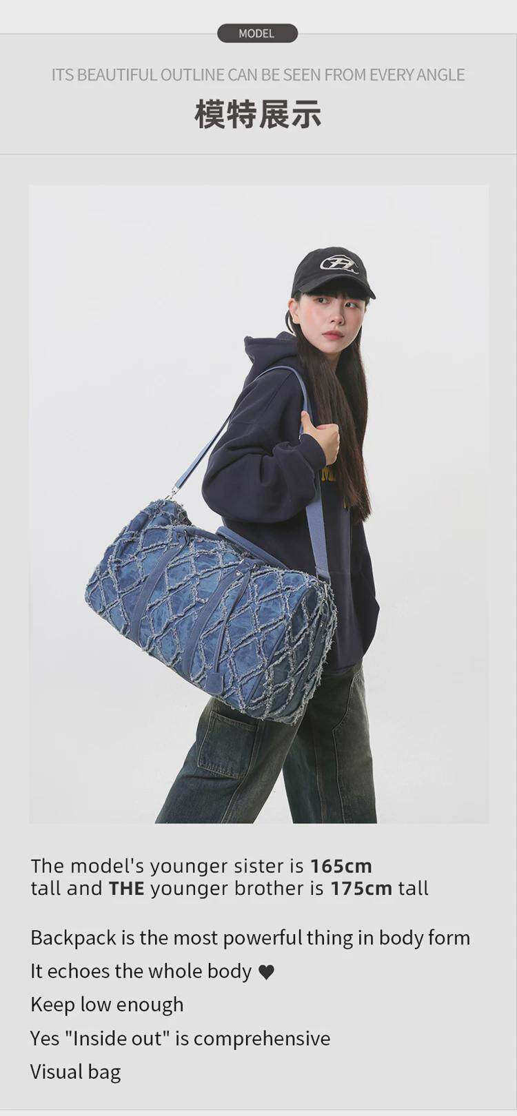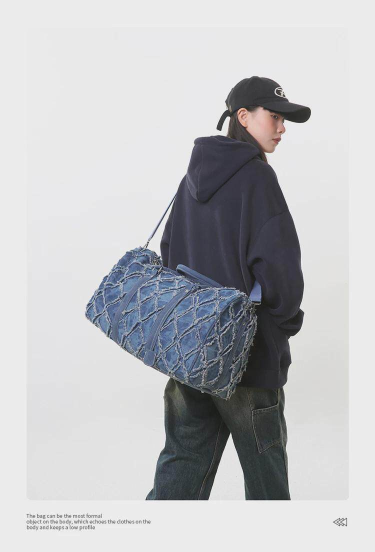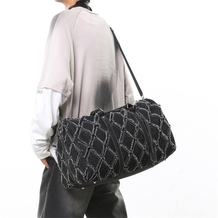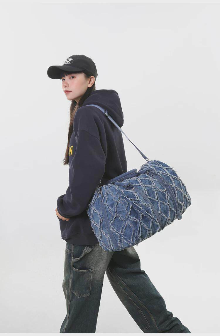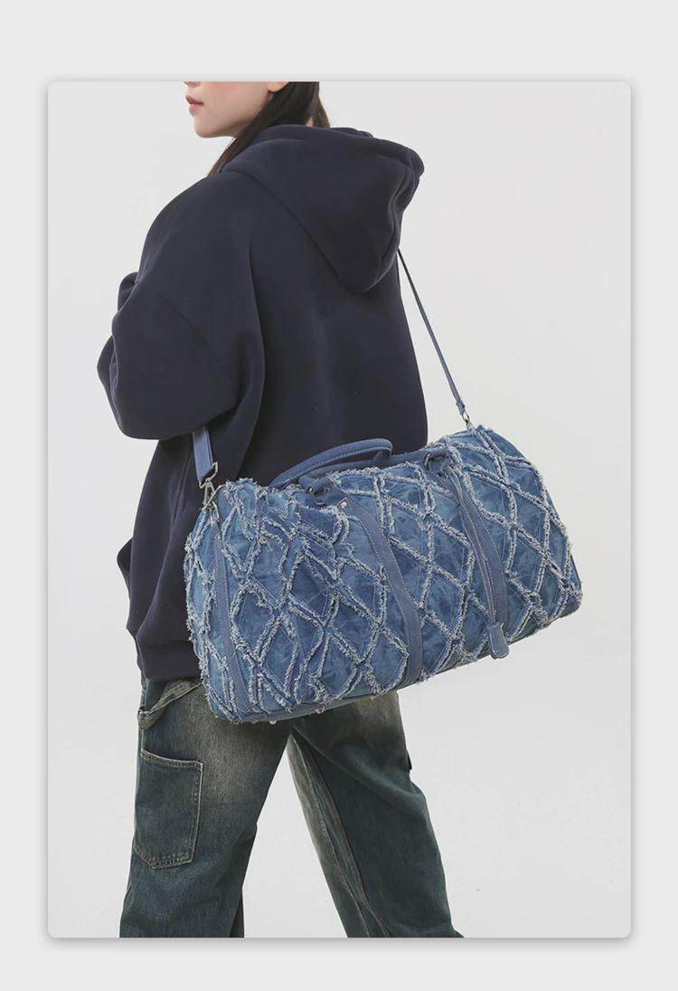 旅行包行李袋男生2025新款大容量短途包水洗牛仔布斜背手提健身包