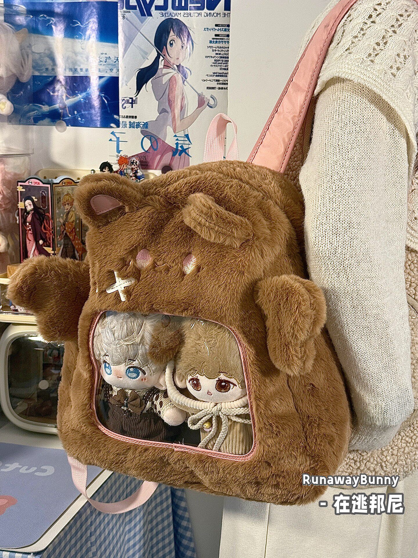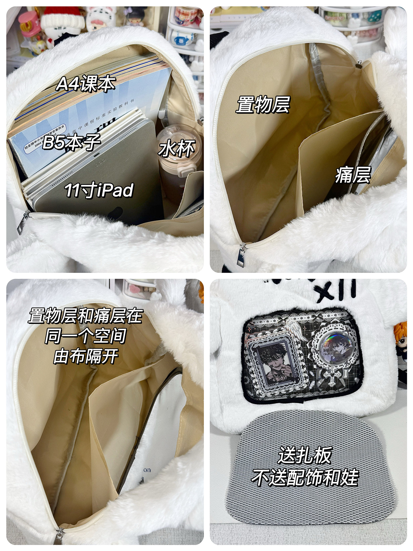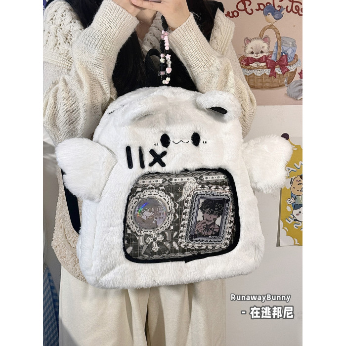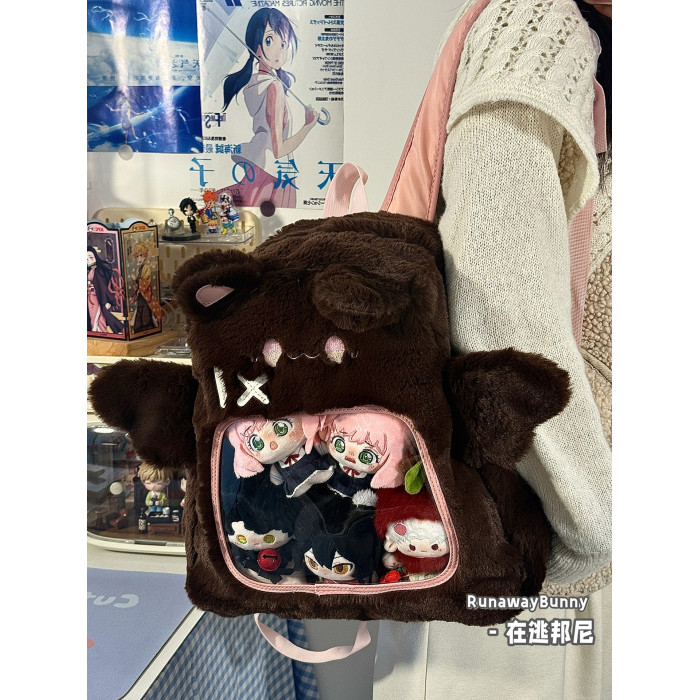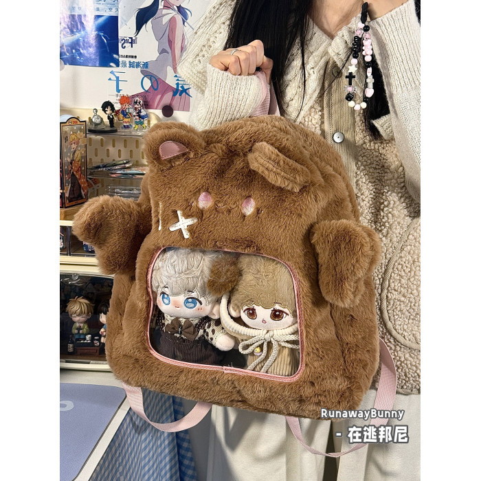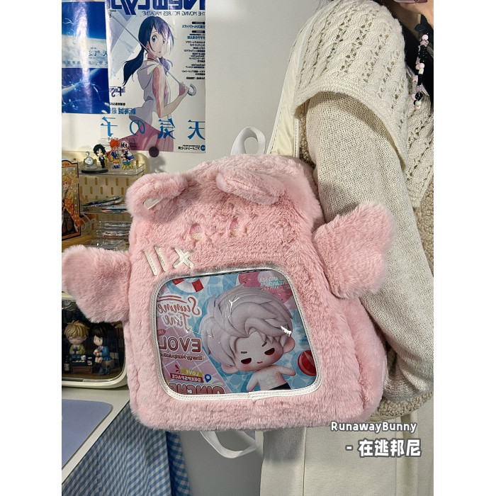 大容量秋冬日常毛絨包20cm娃包外出追星小食量紥板痛包雙肩包書包