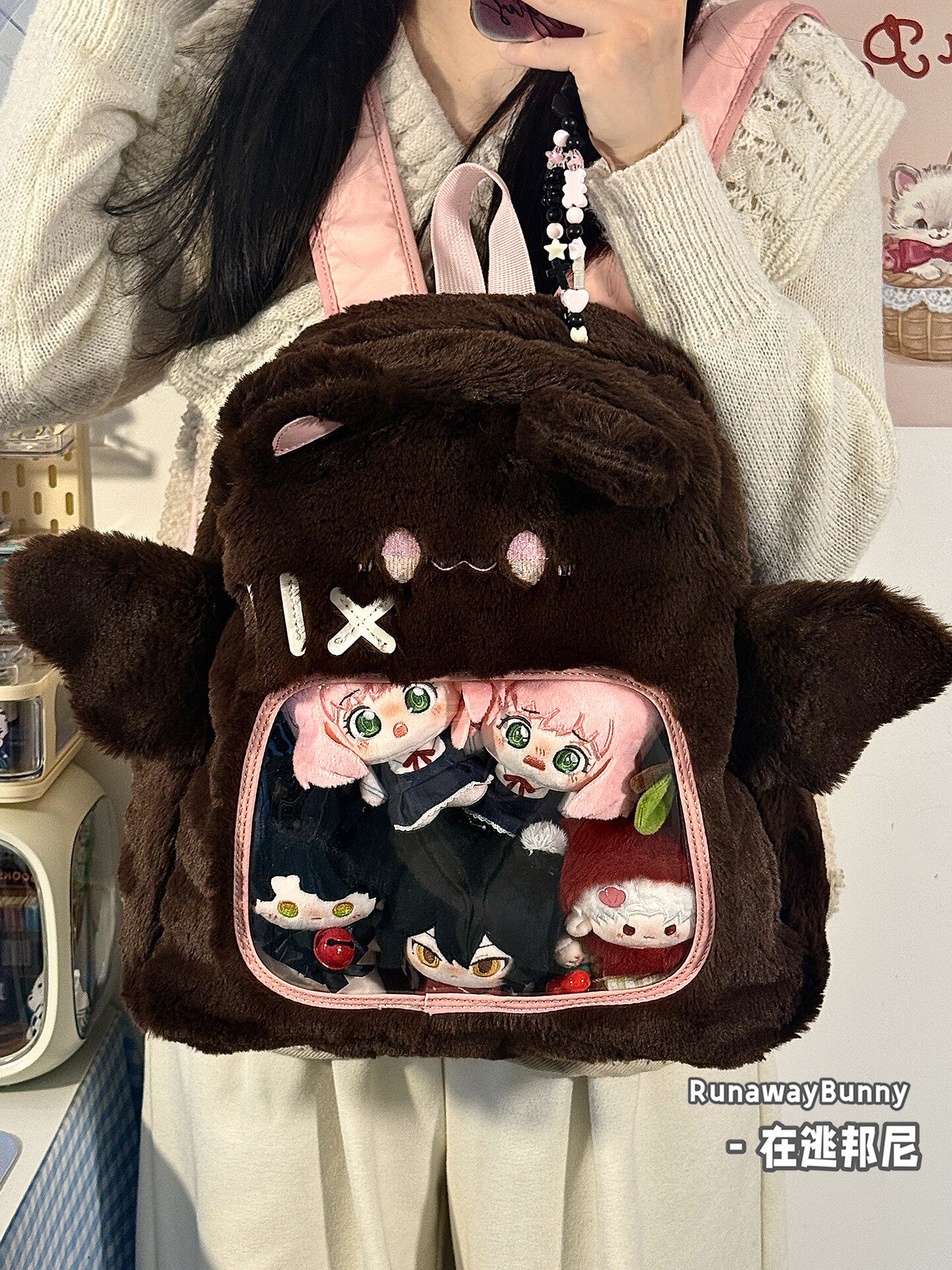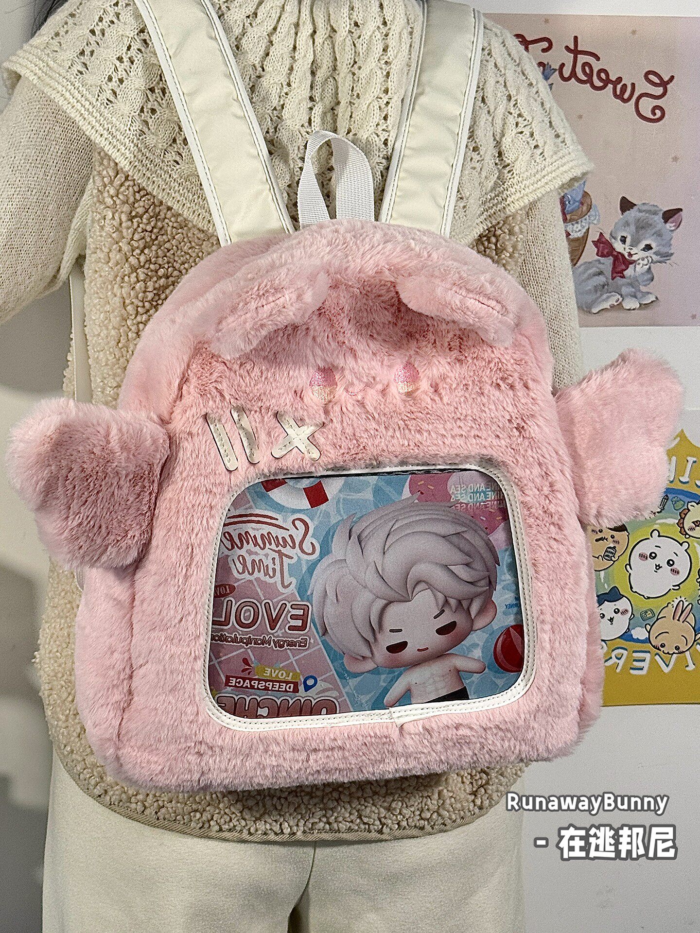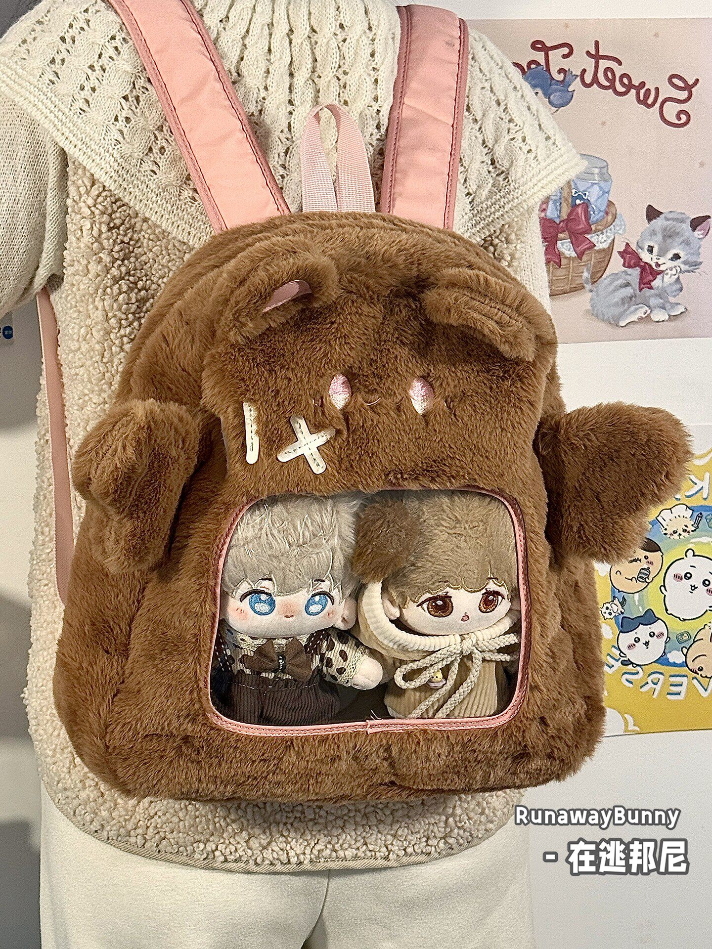 大容量秋冬日常毛絨包20cm娃包外出追星小食量紥板痛包雙肩包書包