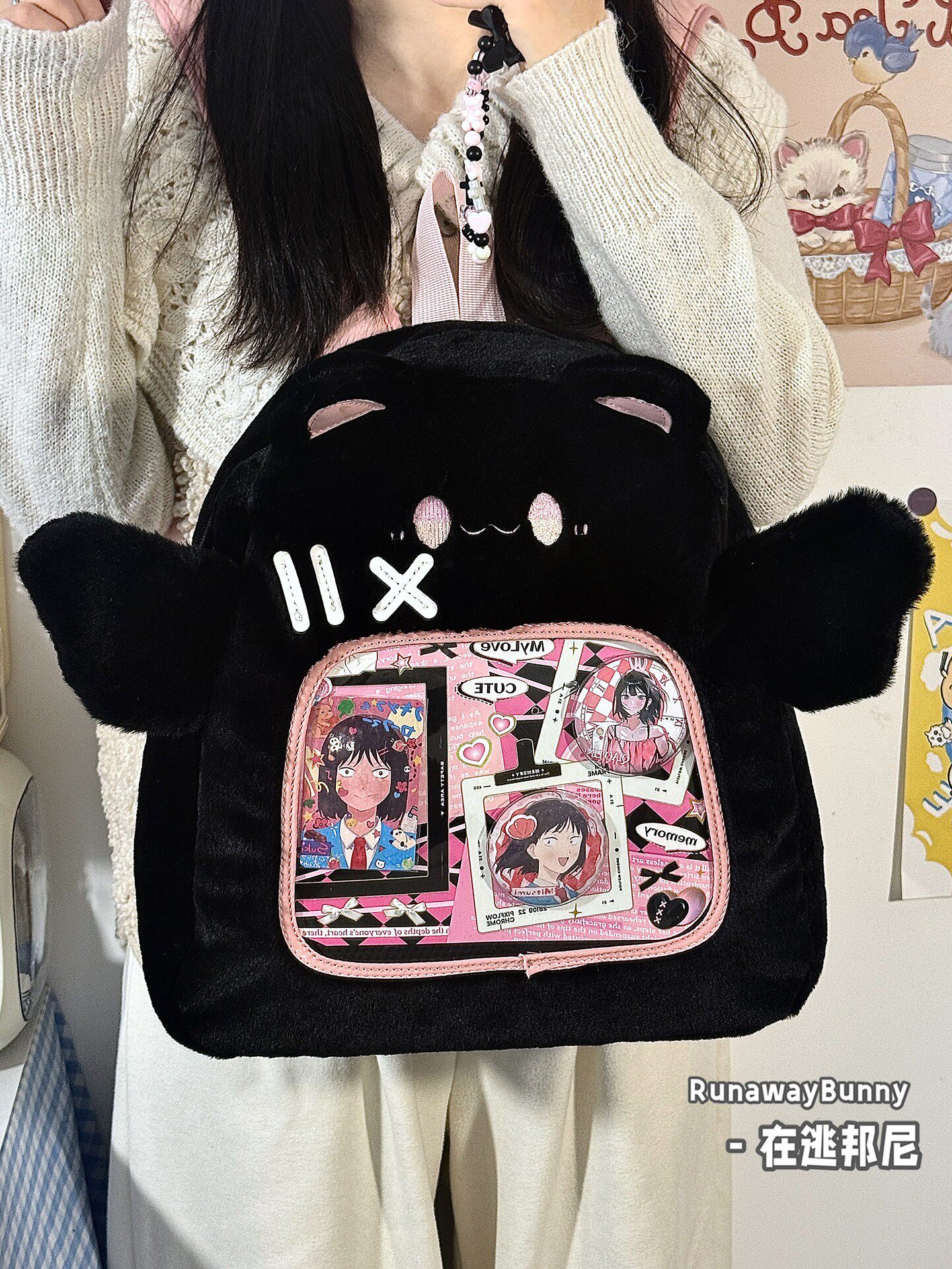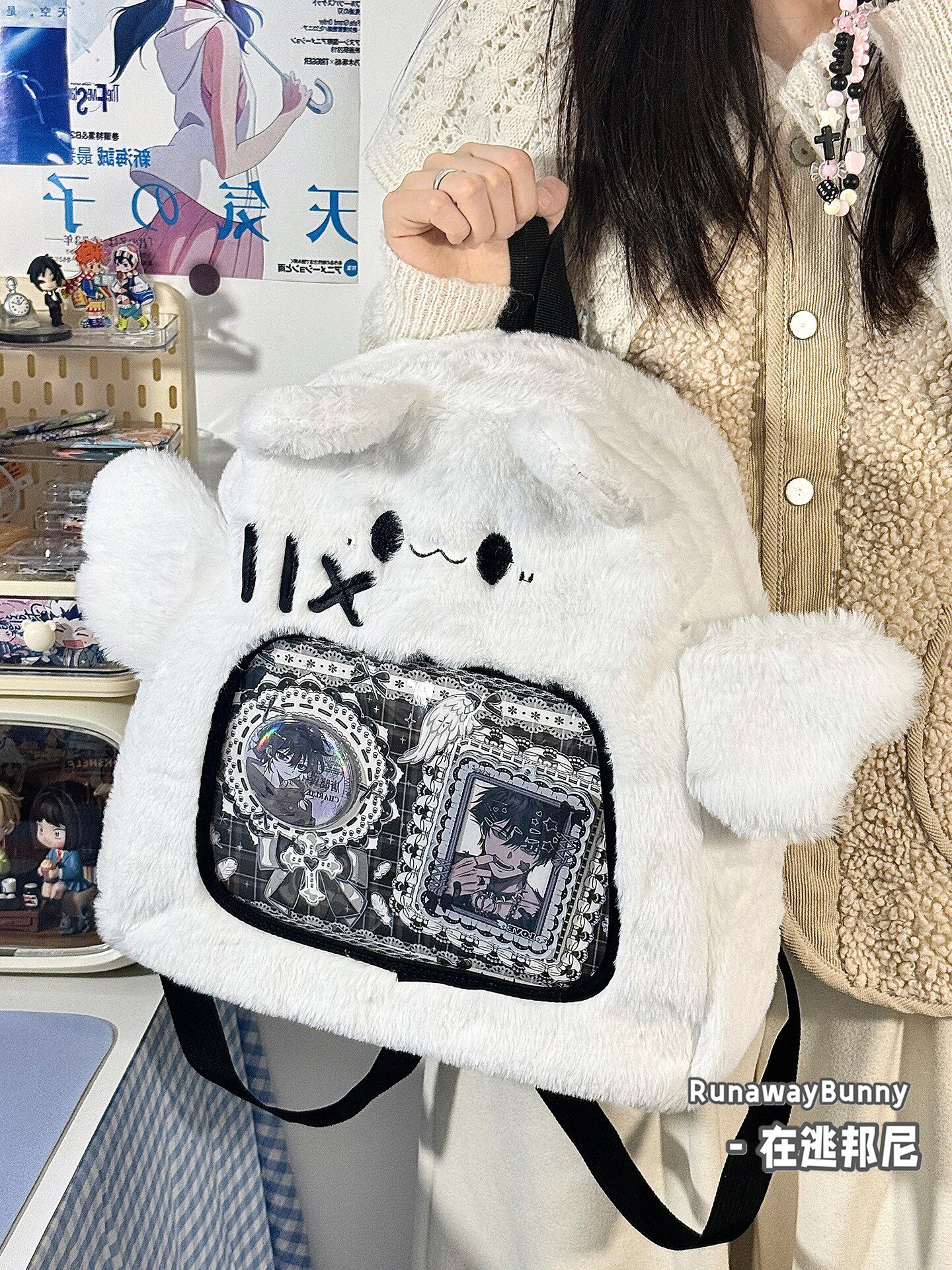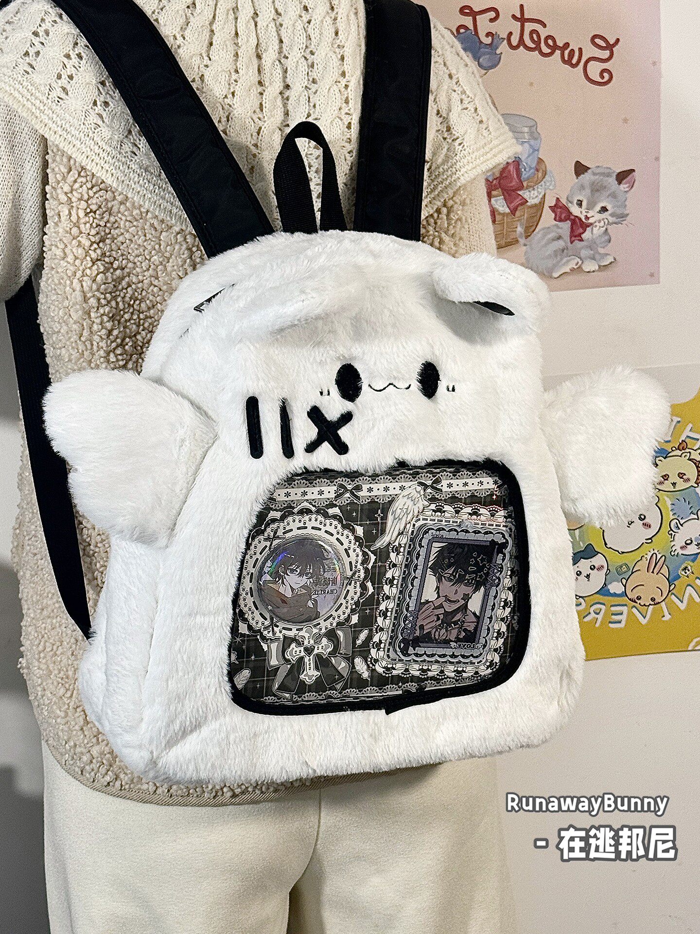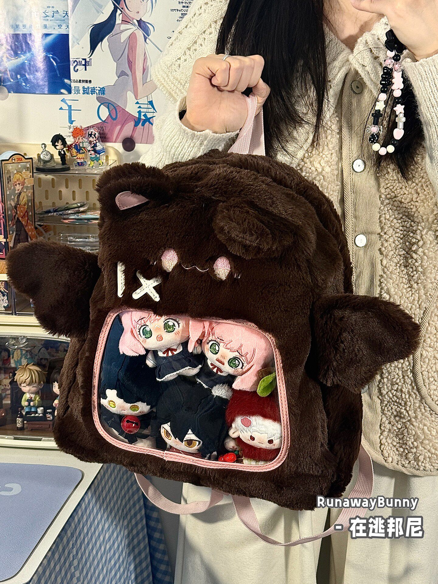 大容量秋冬日常毛絨包20cm娃包外出追星小食量紥板痛包雙肩包書包