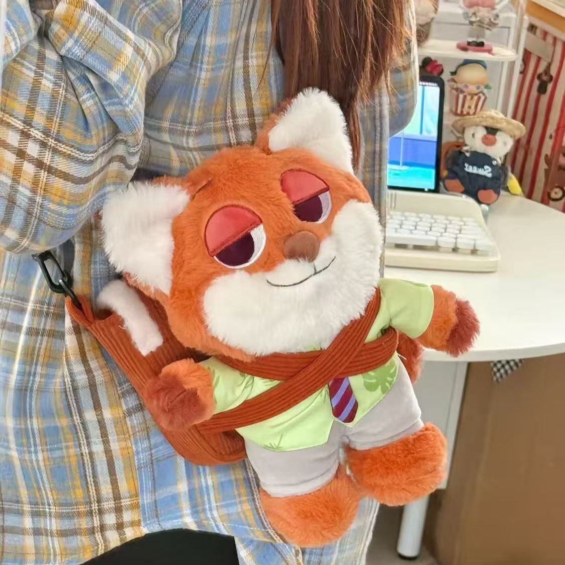 瘋狂動物城包包硃迪尼克毛絨公仔斜後後背包可拆卸公仔玩偶單肩斜後後背包