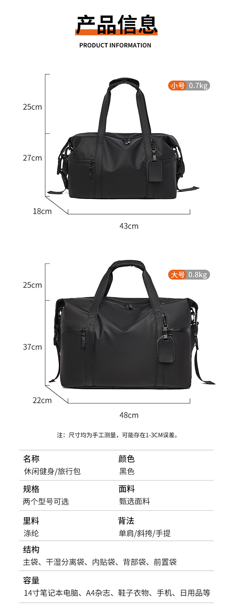 可套拉桿防水面料短途出差旅行包男女大容量行李包運動健身收納包