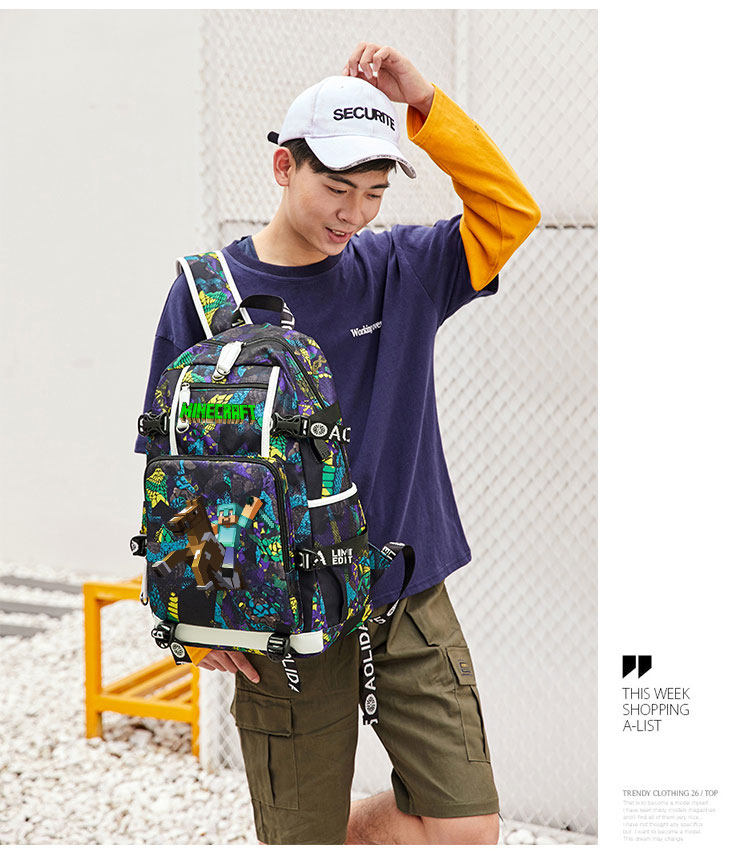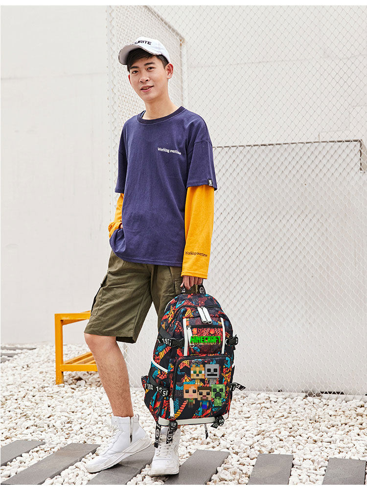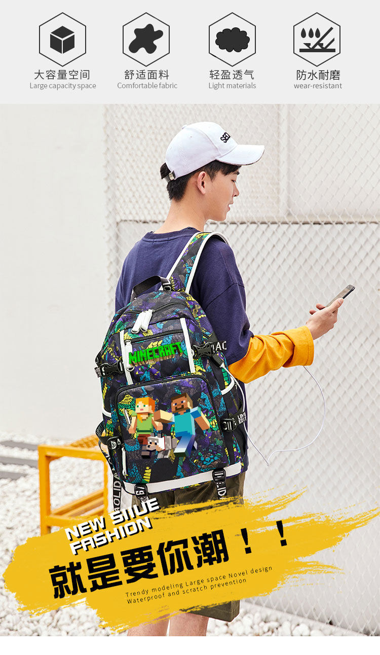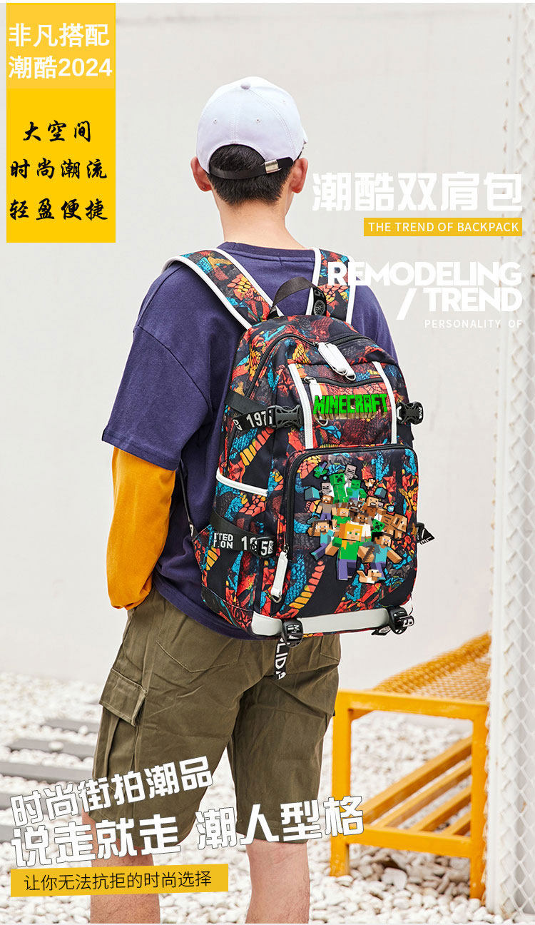 MC我的世界書包男女學生大容量苦力怕後後背包末影人二次元聯名雙肩包