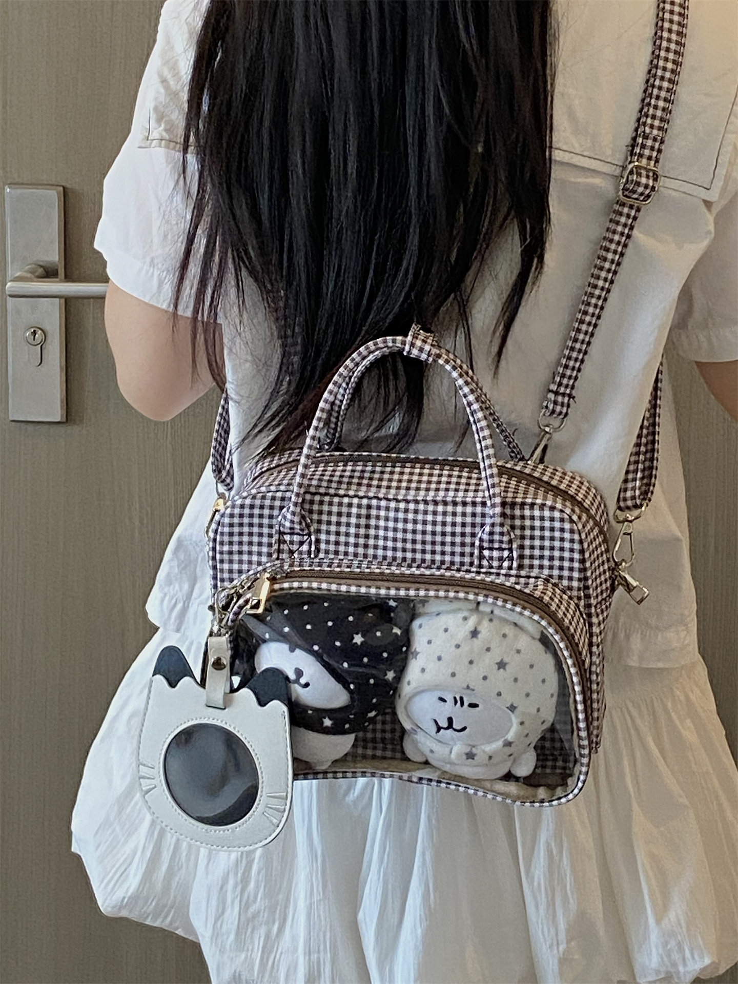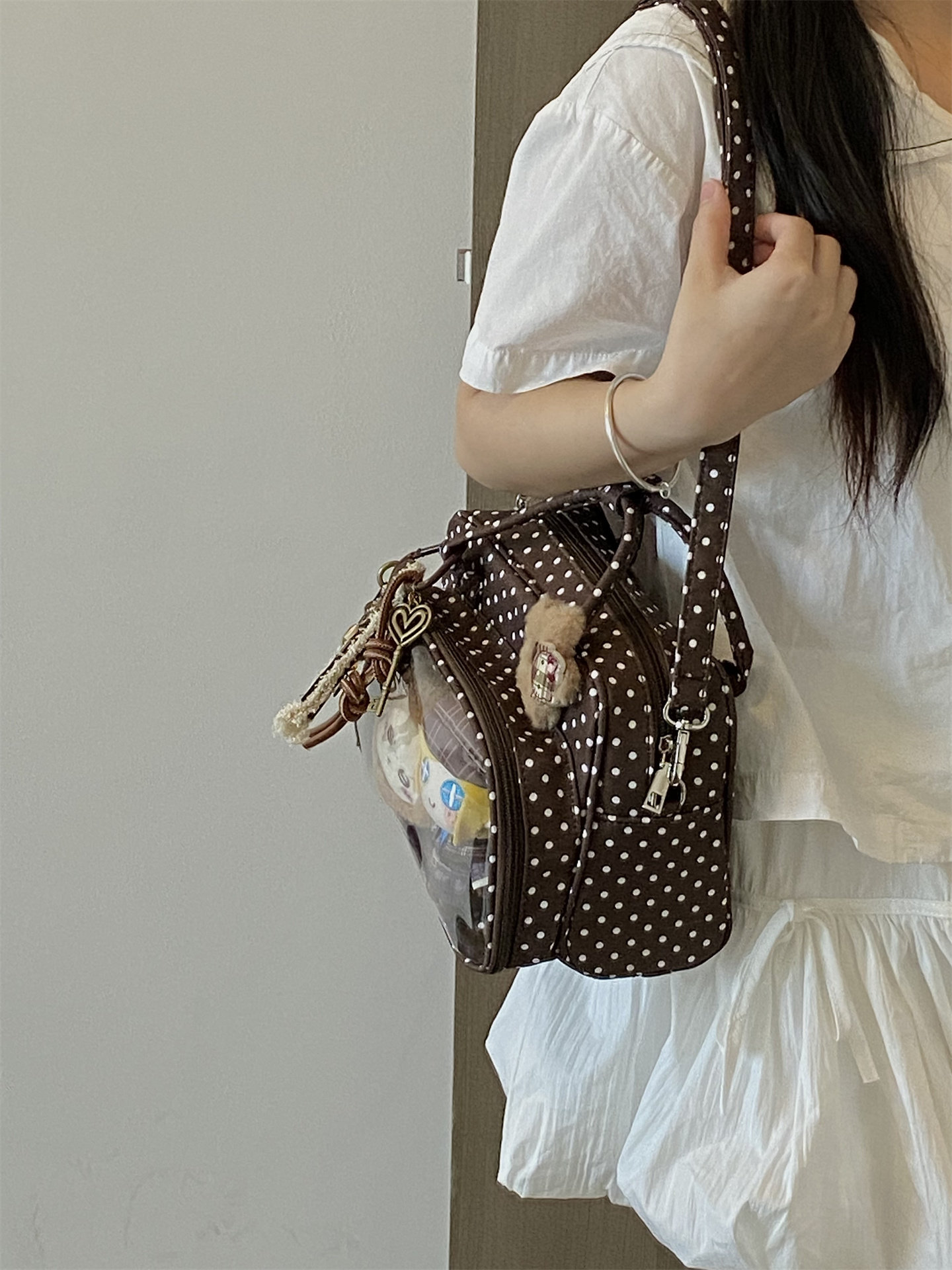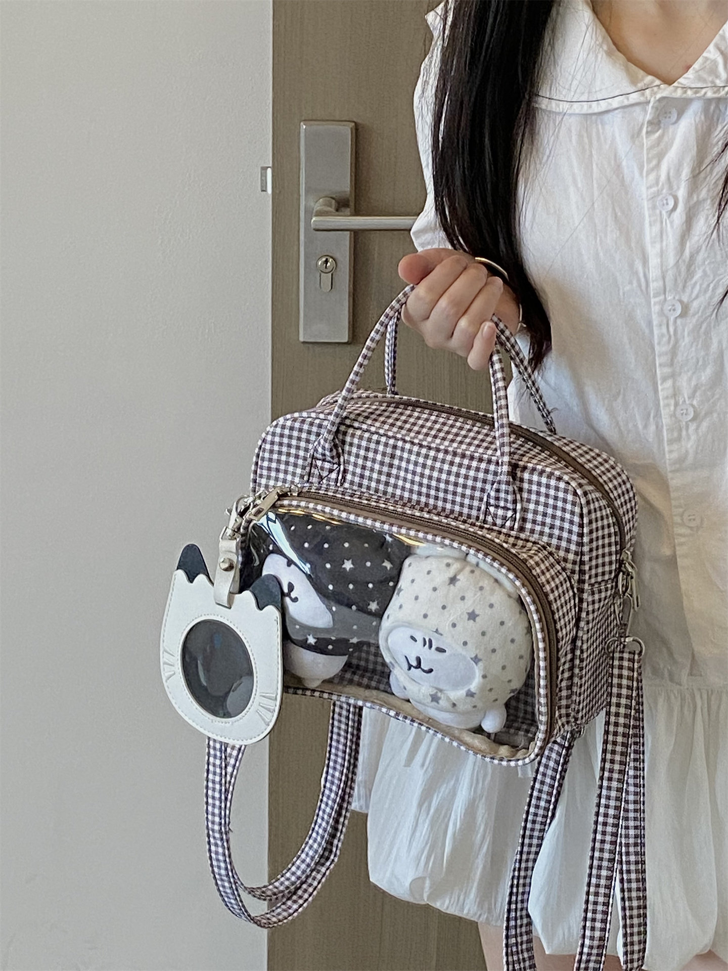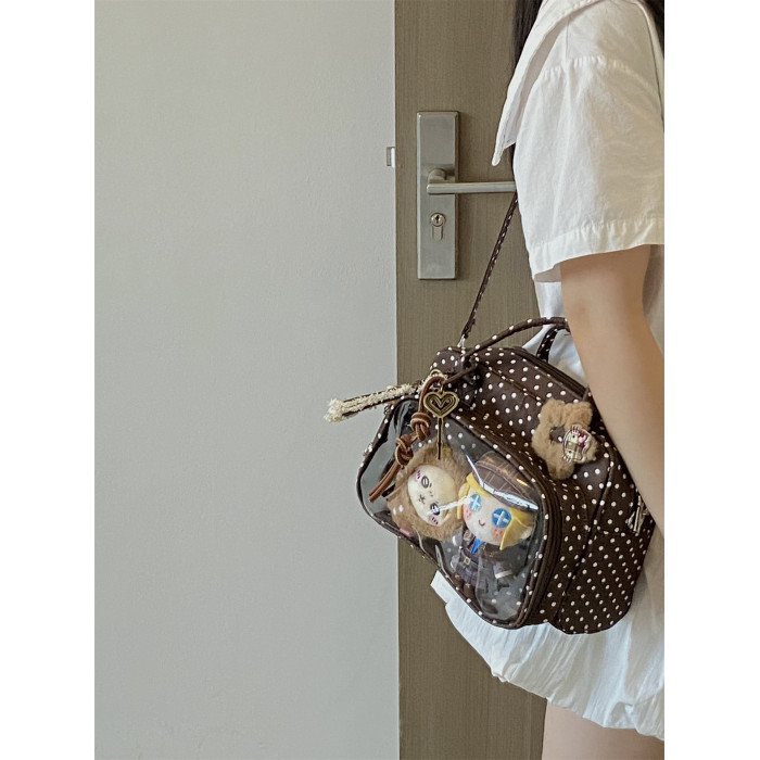 錢一波的痛包|復古秋冬氛圍感學院雙肩包10cm波點格子娃包二次元