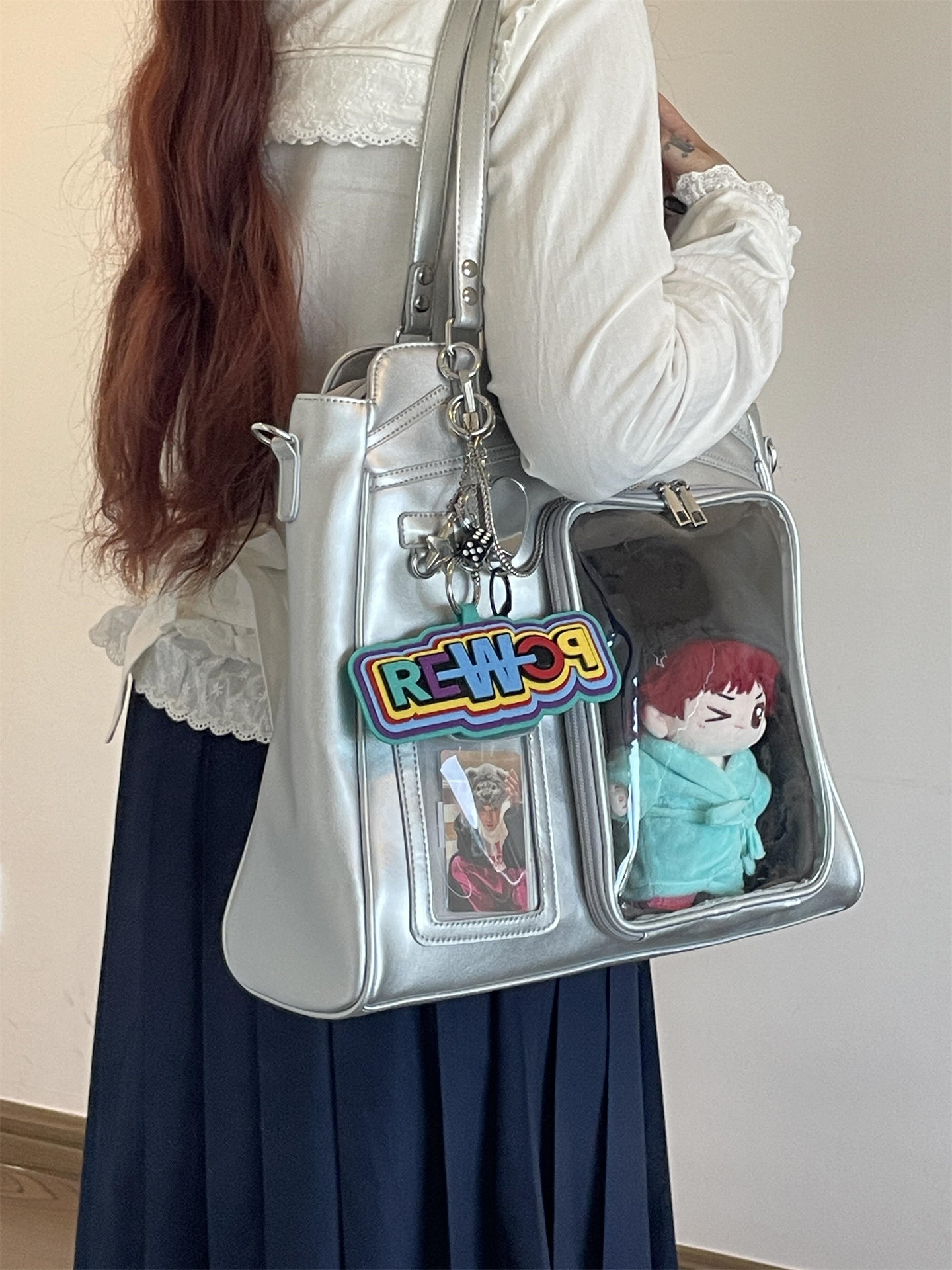 錢一波痛包|銀色公路巨痛20cm娃卡兩用演唱會藏支架大容量單肩包