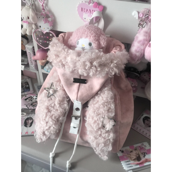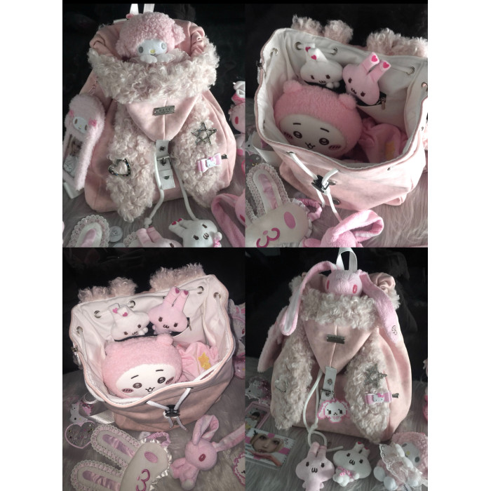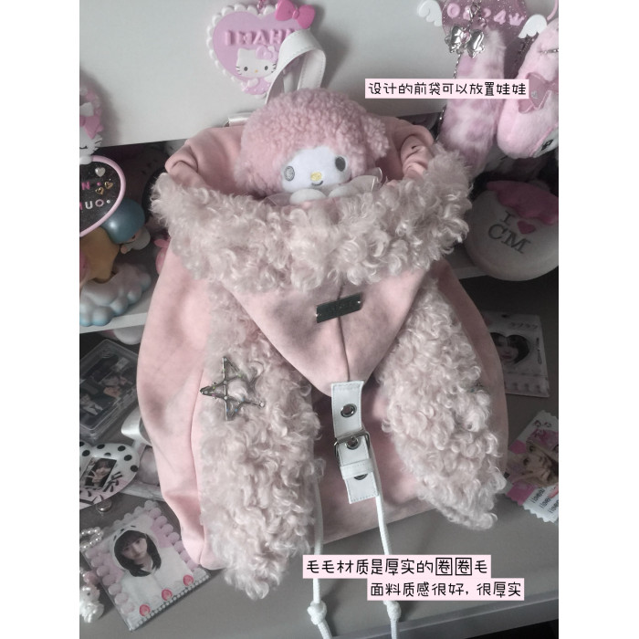 MGJKTJ女包秋冬粉色可愛毛絨絨軟糯雙肩包通勤大容量簡約兔子書包