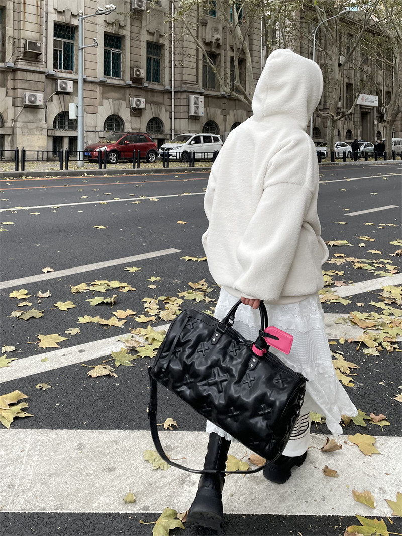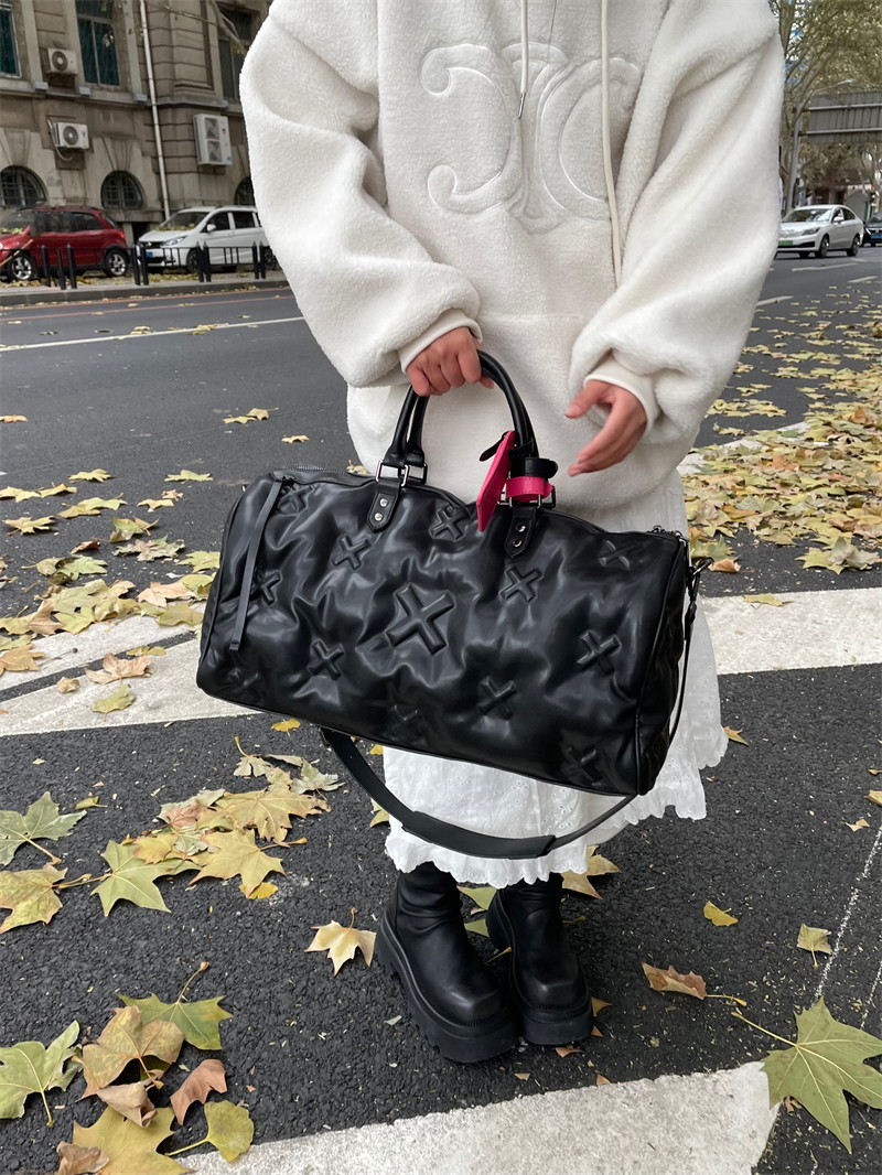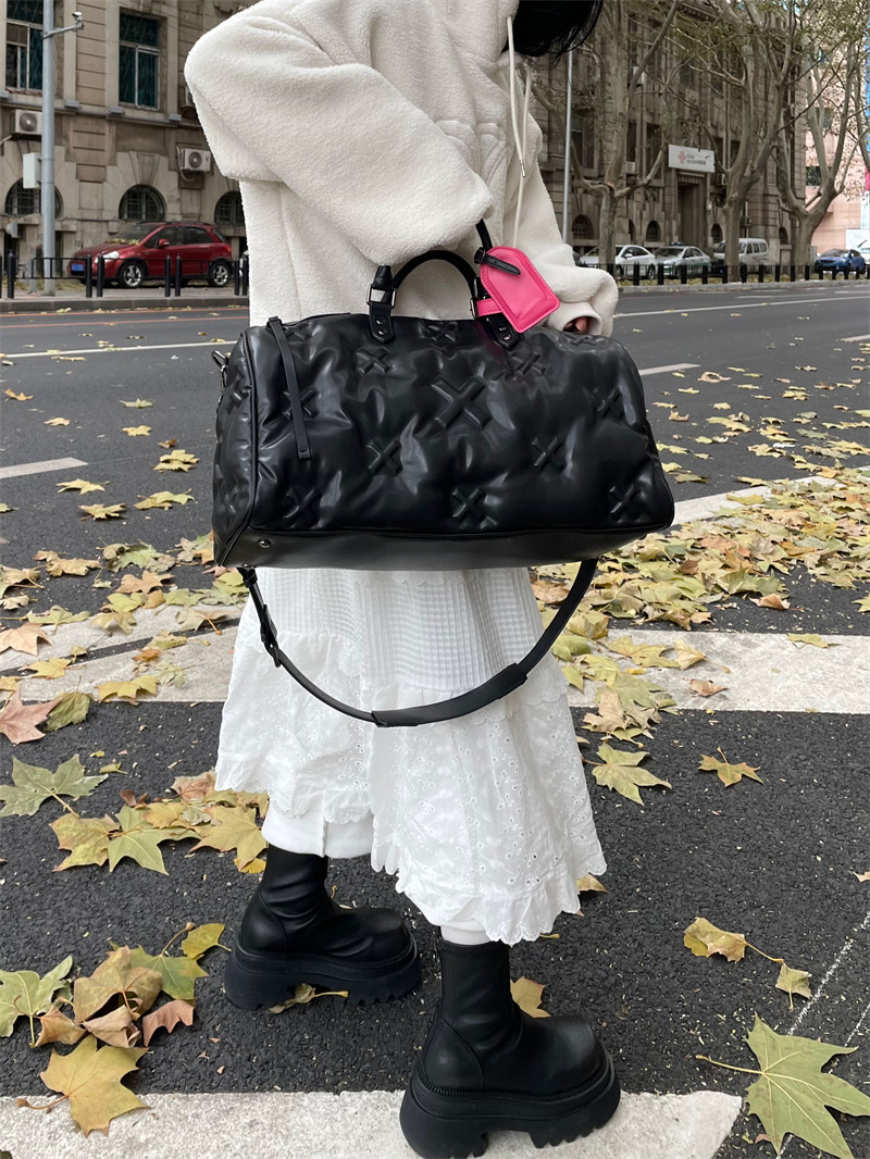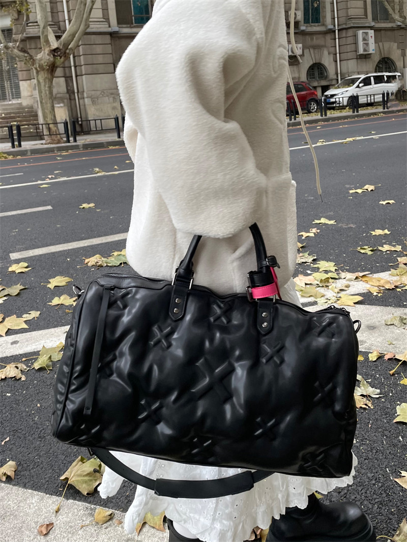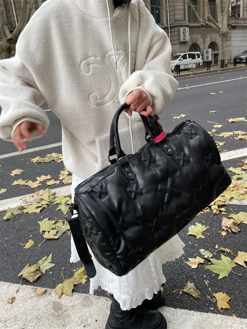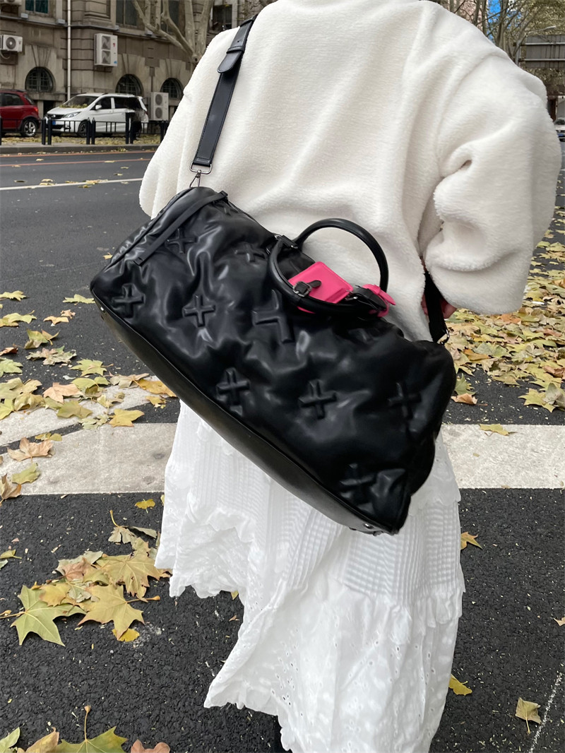雲朵羽絨旅行包2026新款登機行李手提包軟皮健身包充棉慵懶枕頭包