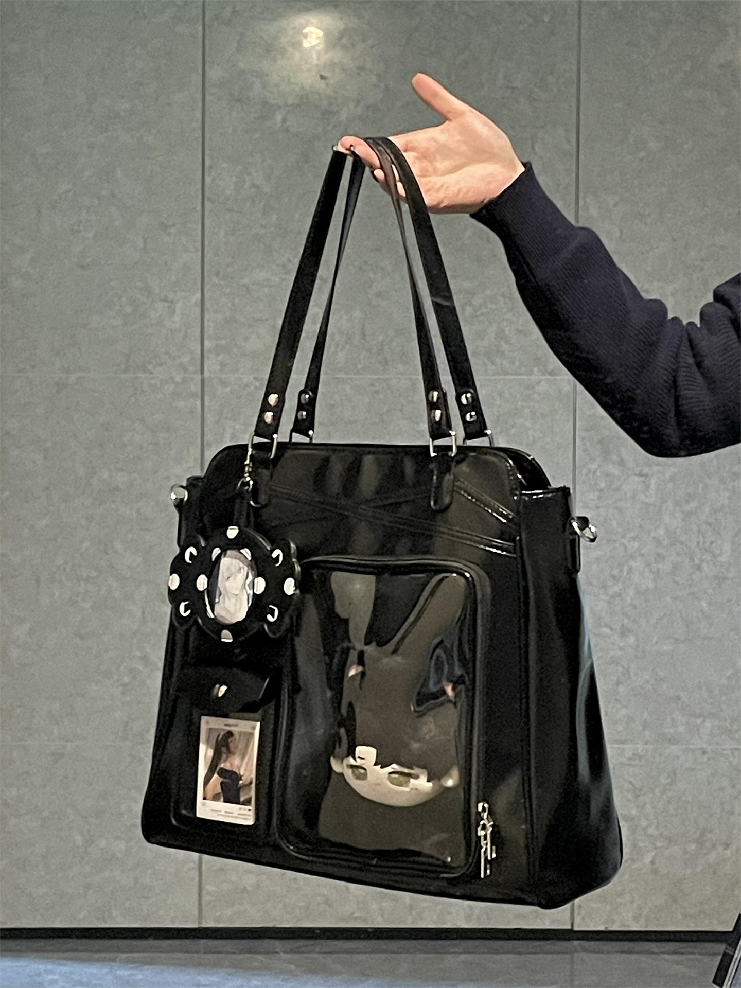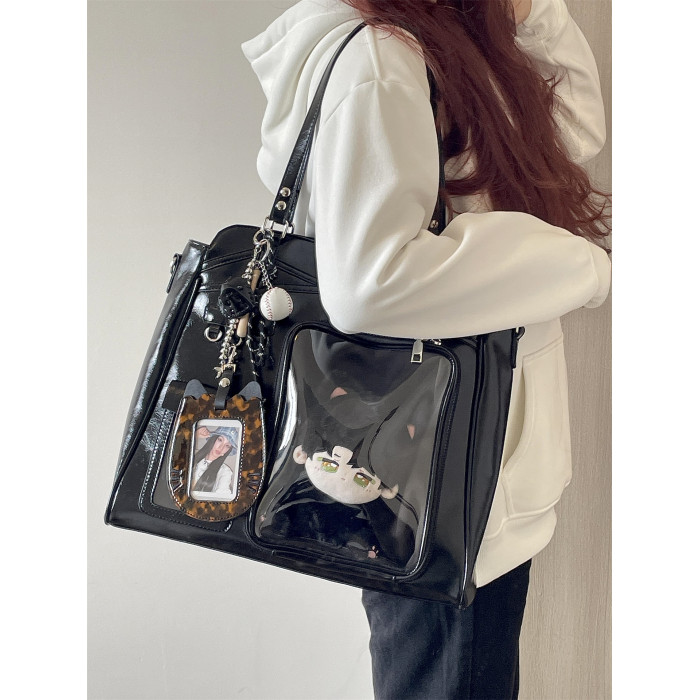 錢一波痛包|黑色日系20cm娃包紥穀子追星大容量演唱會單肩雙肩包