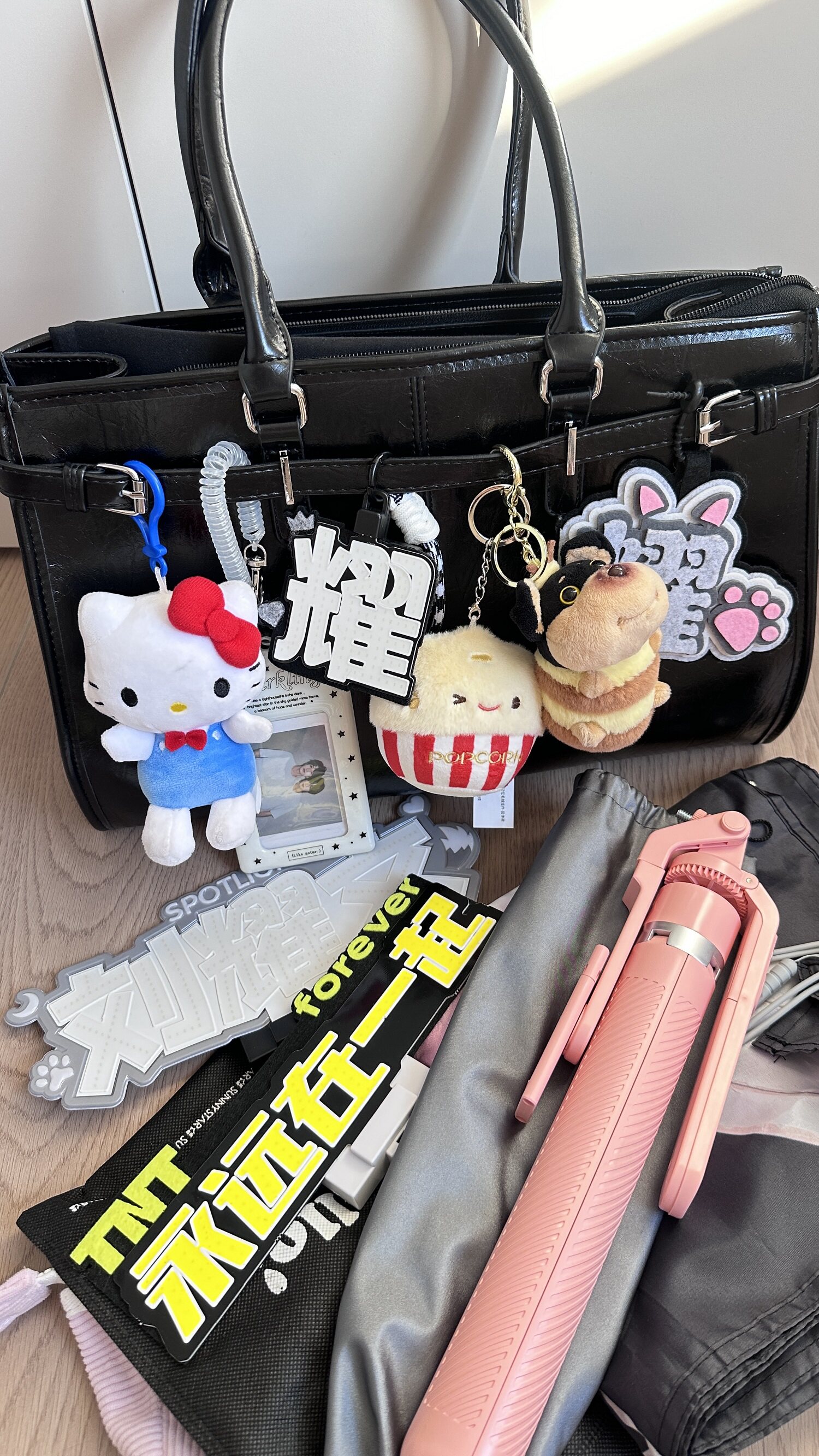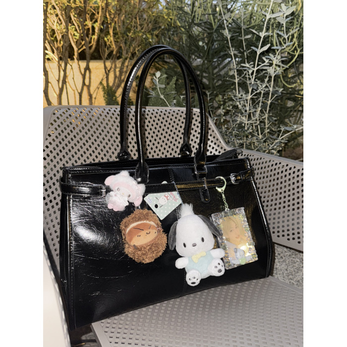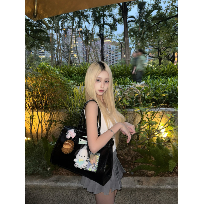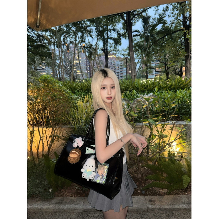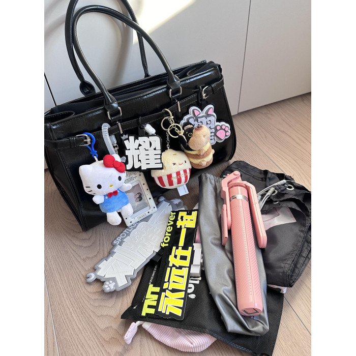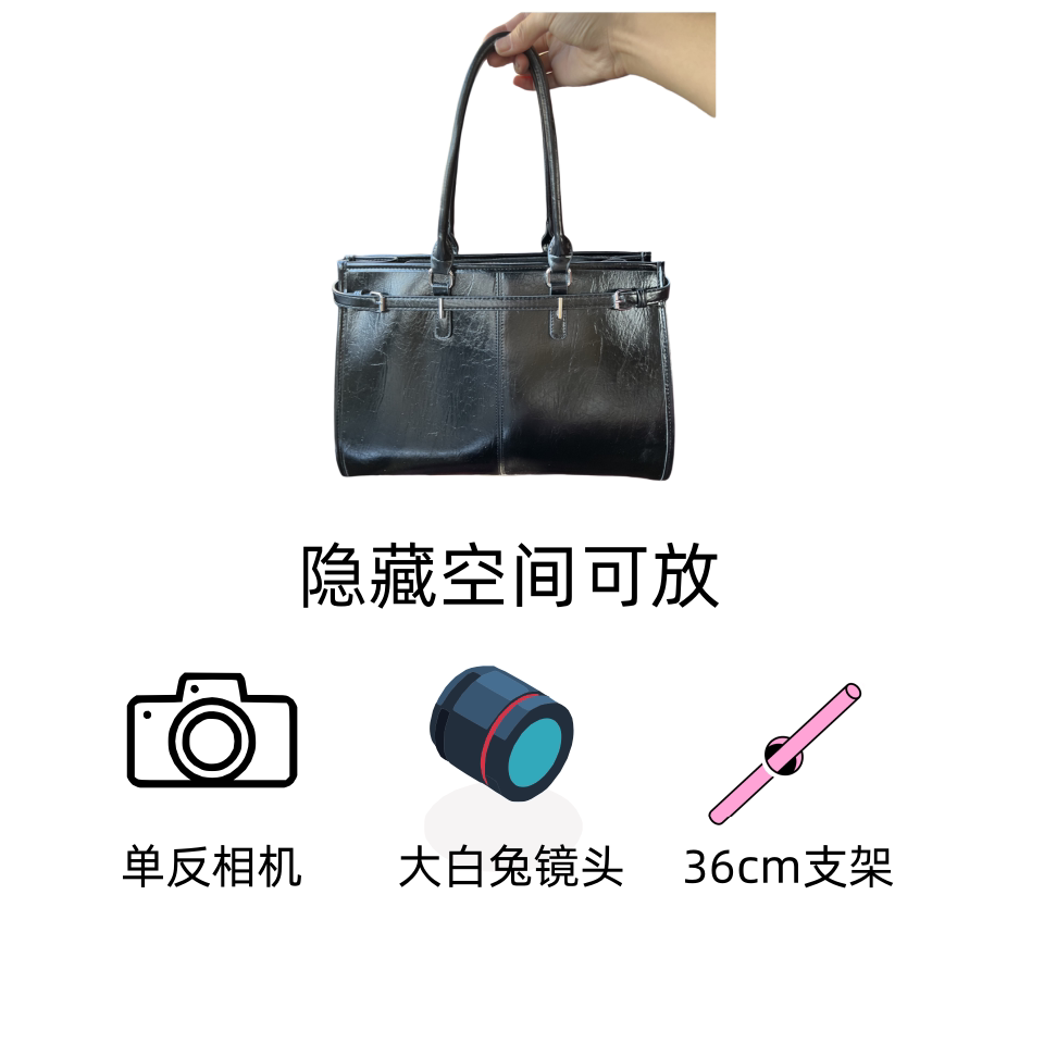 黑色油蠟皮大容量托特包追星女孩演唱會藏相機支架手提包應援包