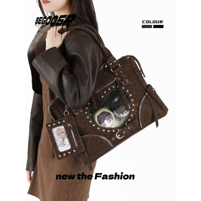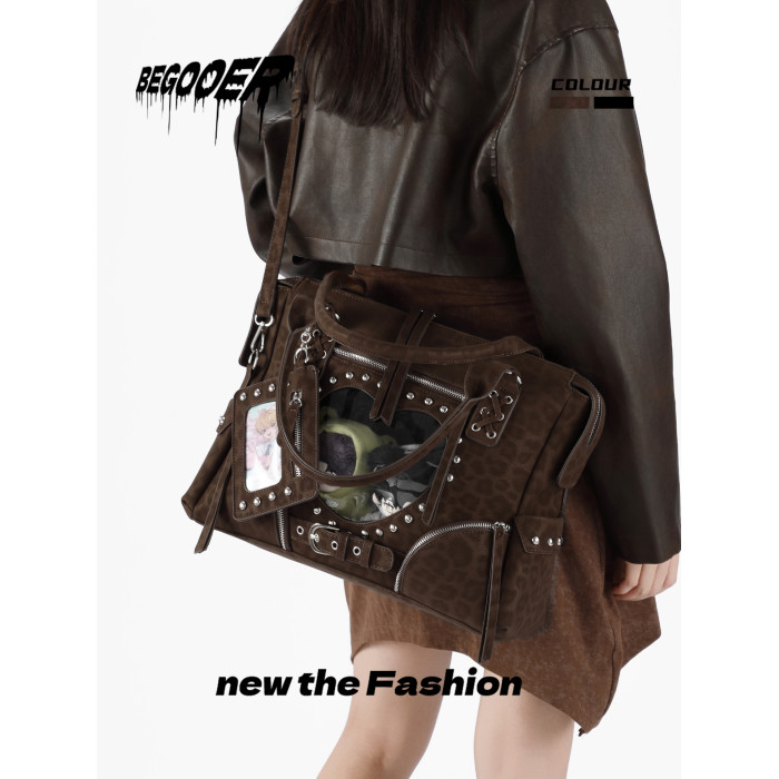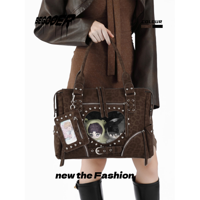 BEGOOER小衆機車引擎痛大容量豹紋托特包日常娃包復古單肩斜後後背包
