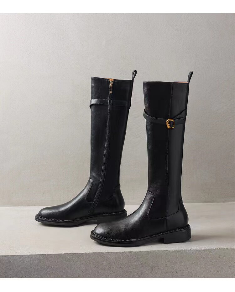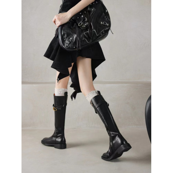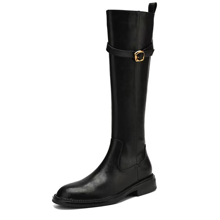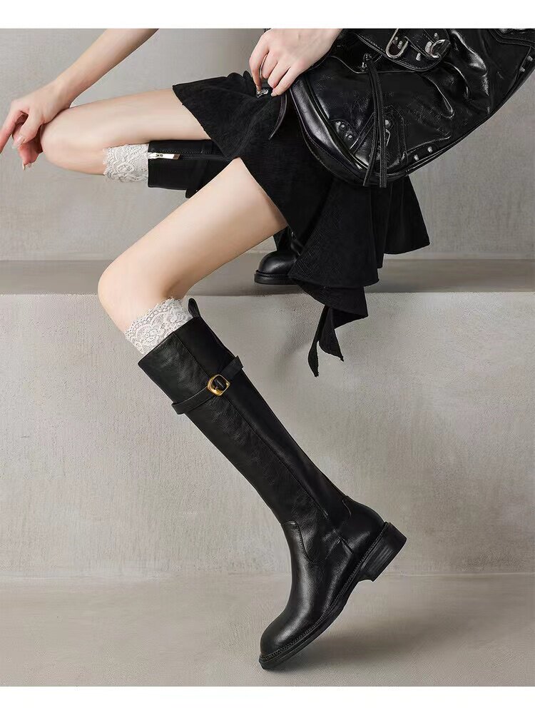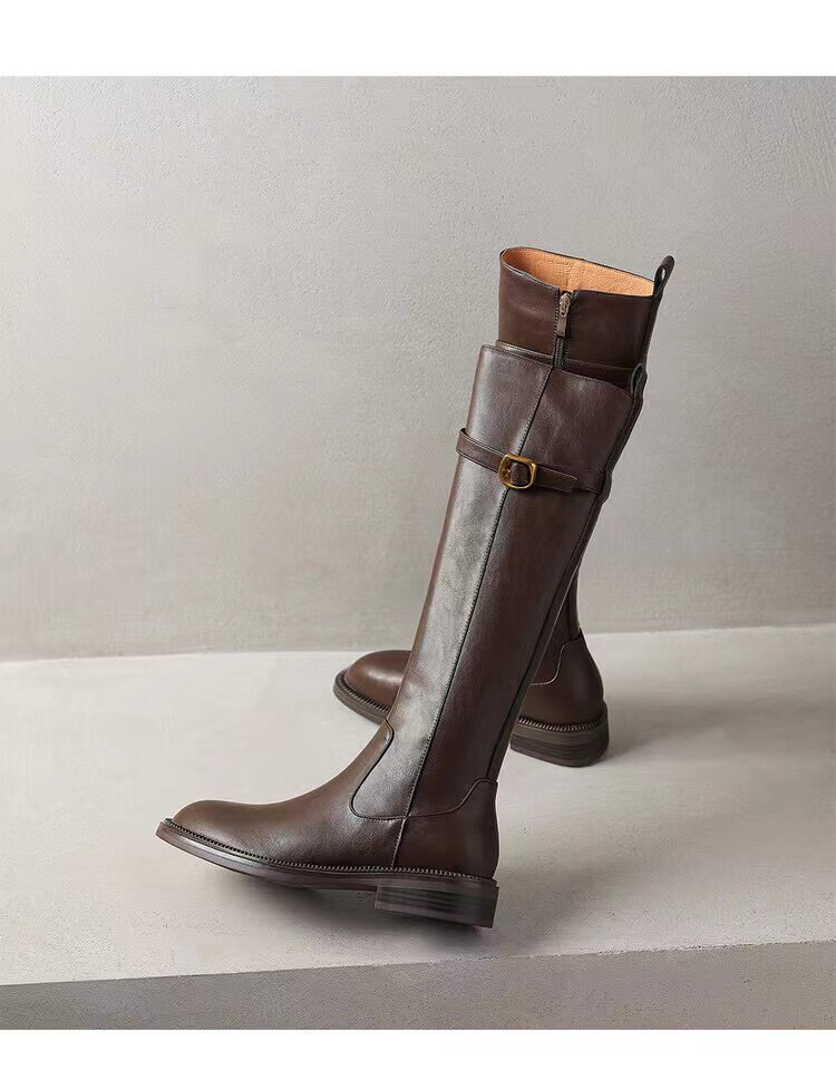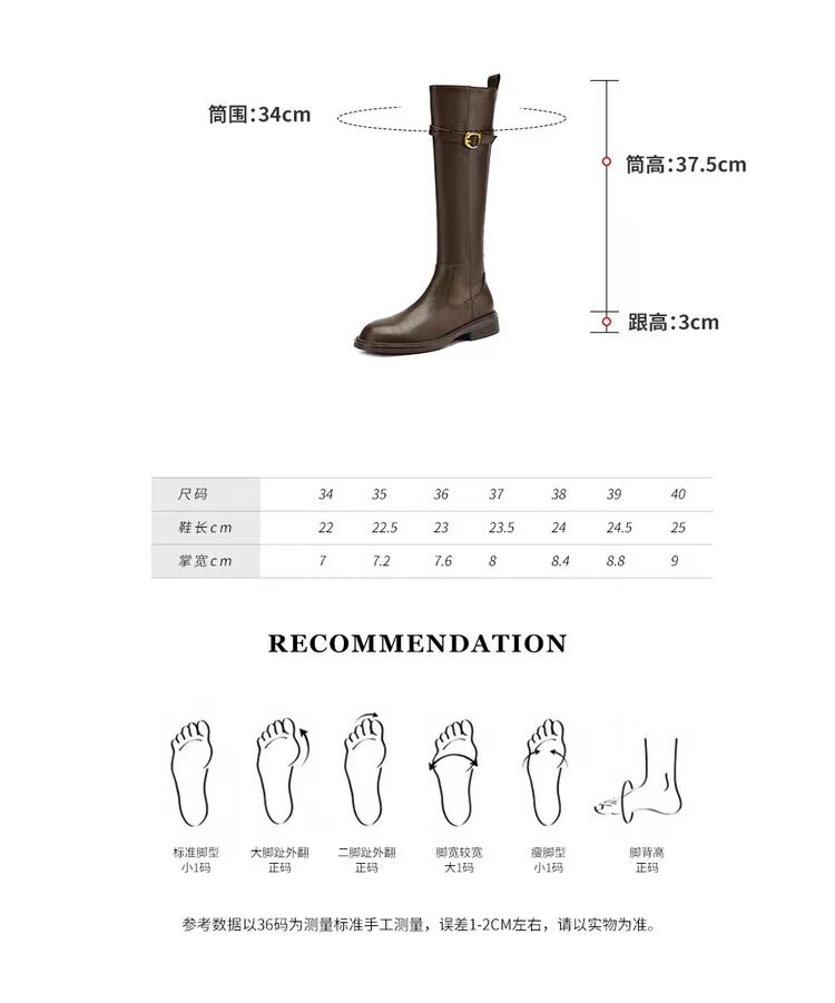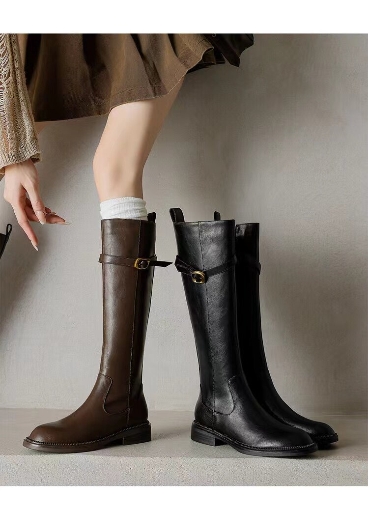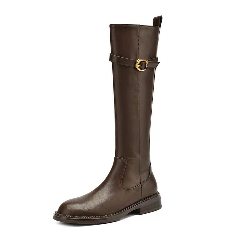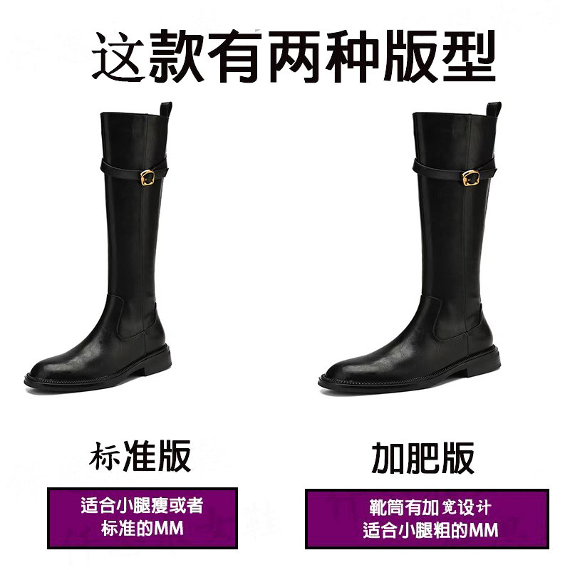 2025冬低跟長筒靴不過膝靴子棕色騎士靴女大碼大筒圍女靴40-41-43