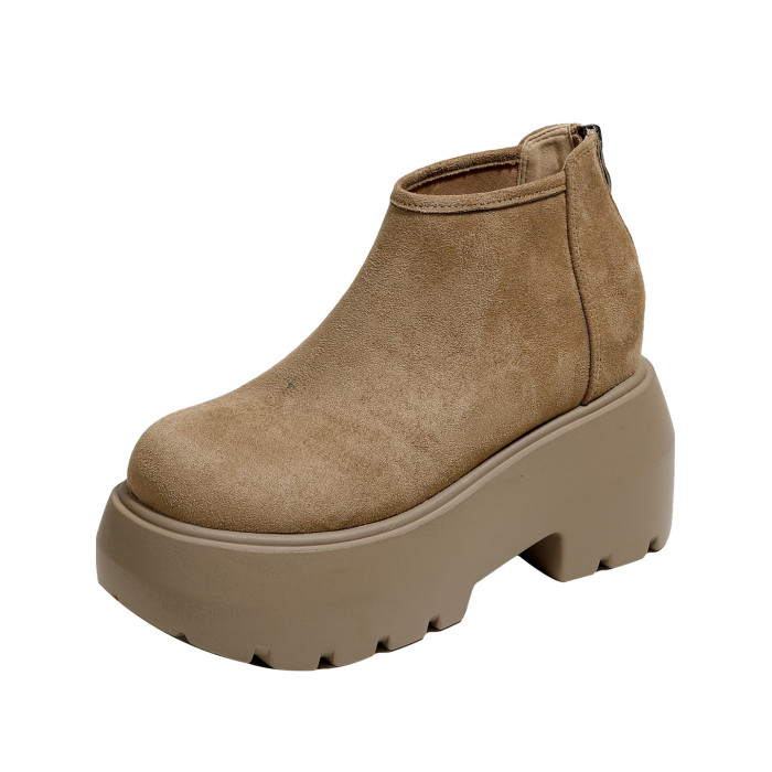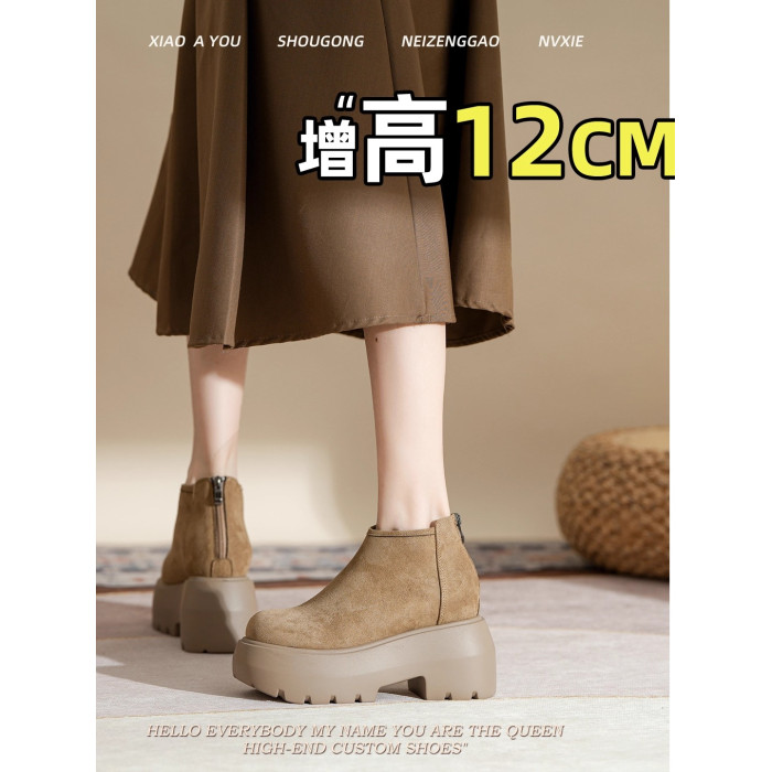 時尚12CM內增高粗跟馬丁靴女瘦瘦靴2026新款爆款復古休閒軟皮短靴