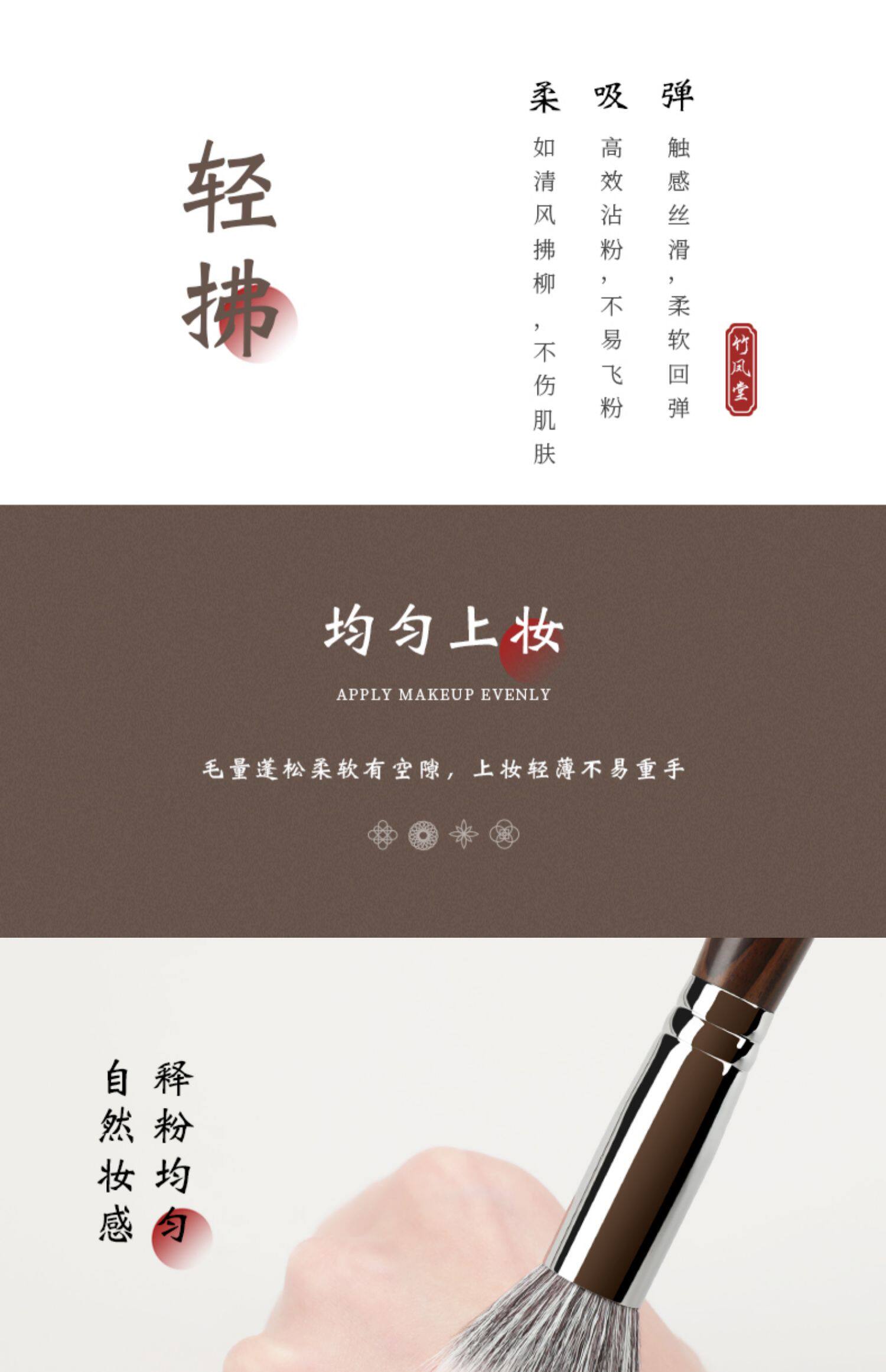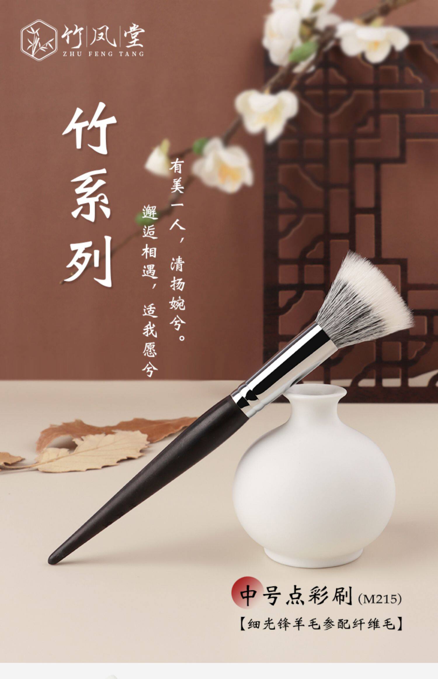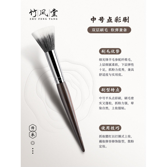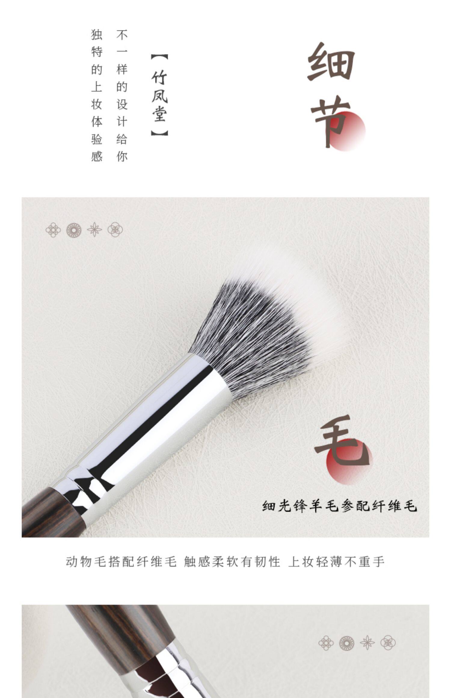 竹鳳堂化妝刷M215點彩刷曬紅女腮紅刷子女高光刷羊毛一支裝竹風堂