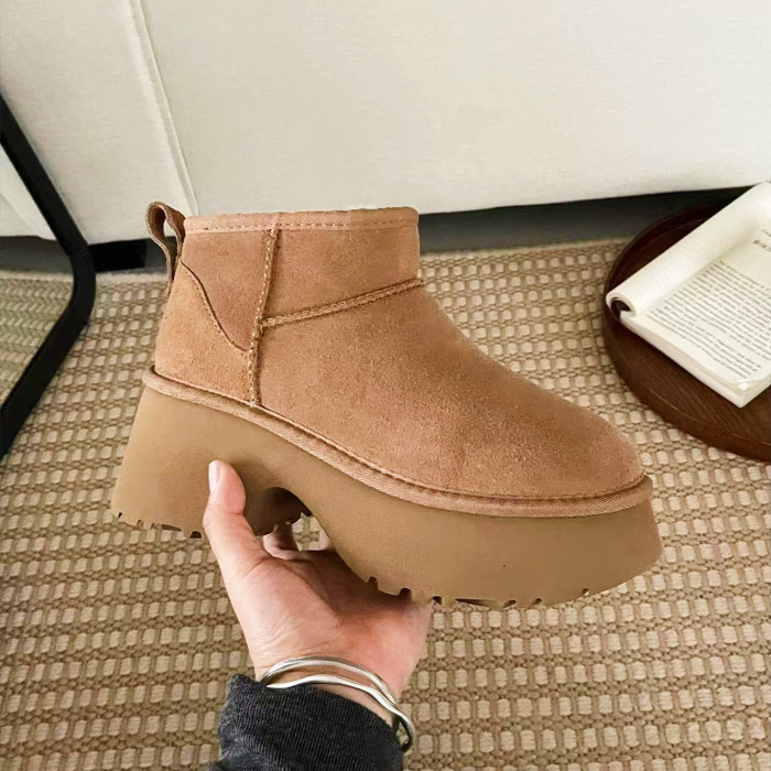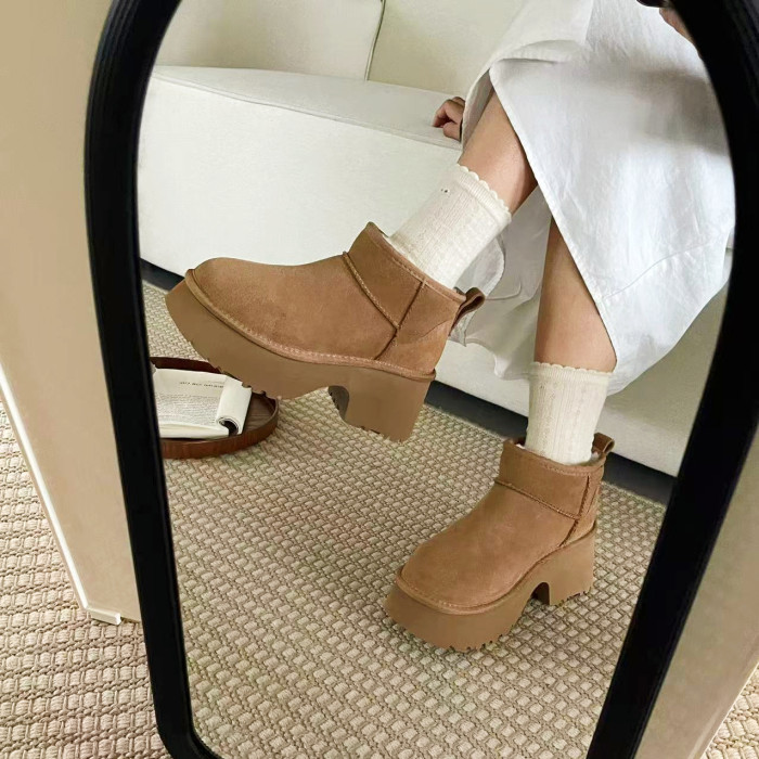 2025新款冬季人魚厚底高跟雪地靴女皮毛一體河南桑坡村棉鞋