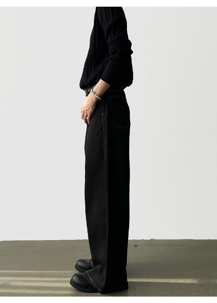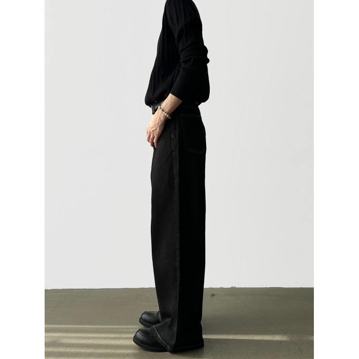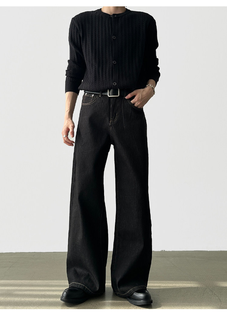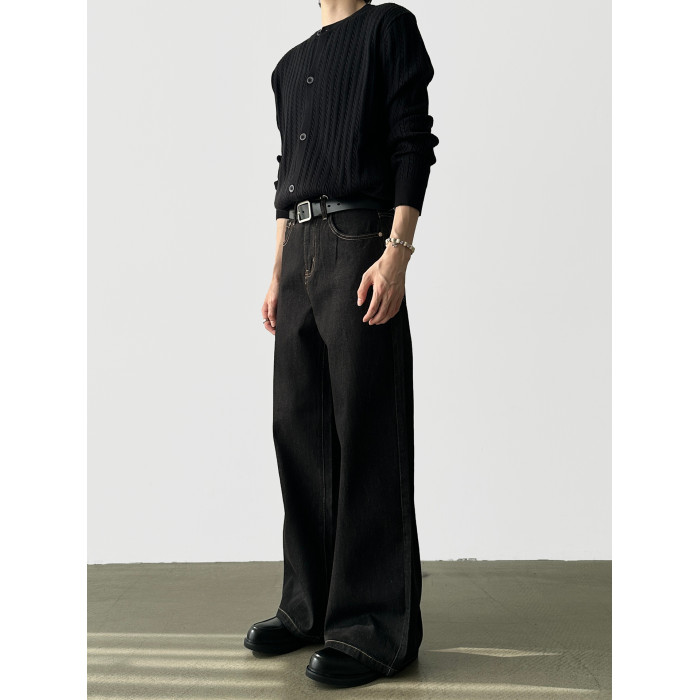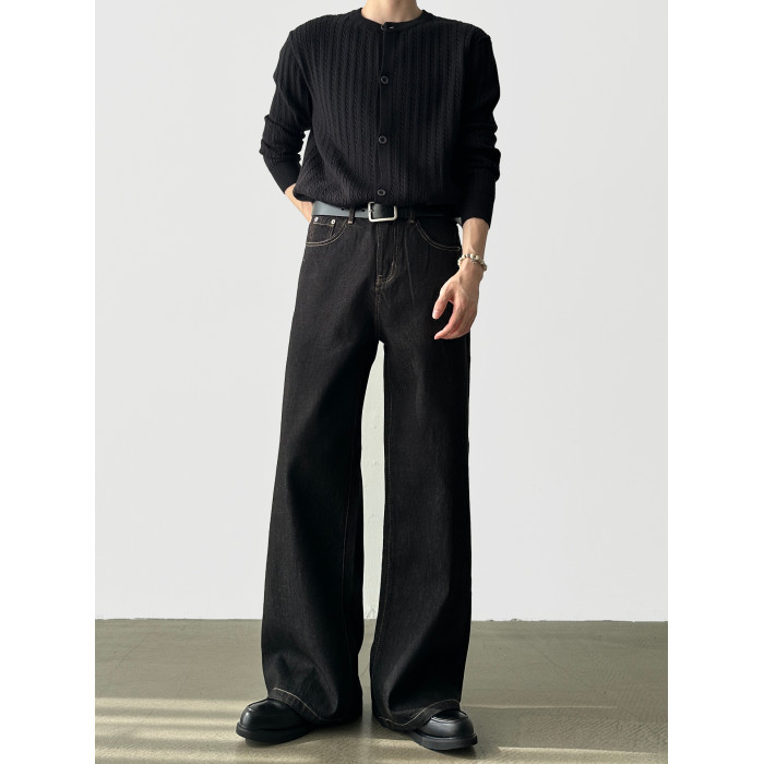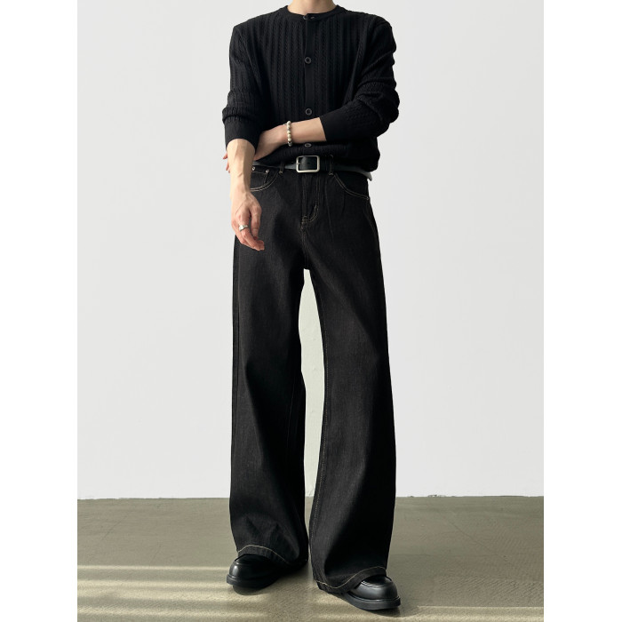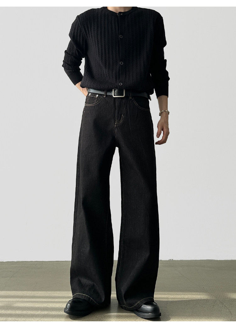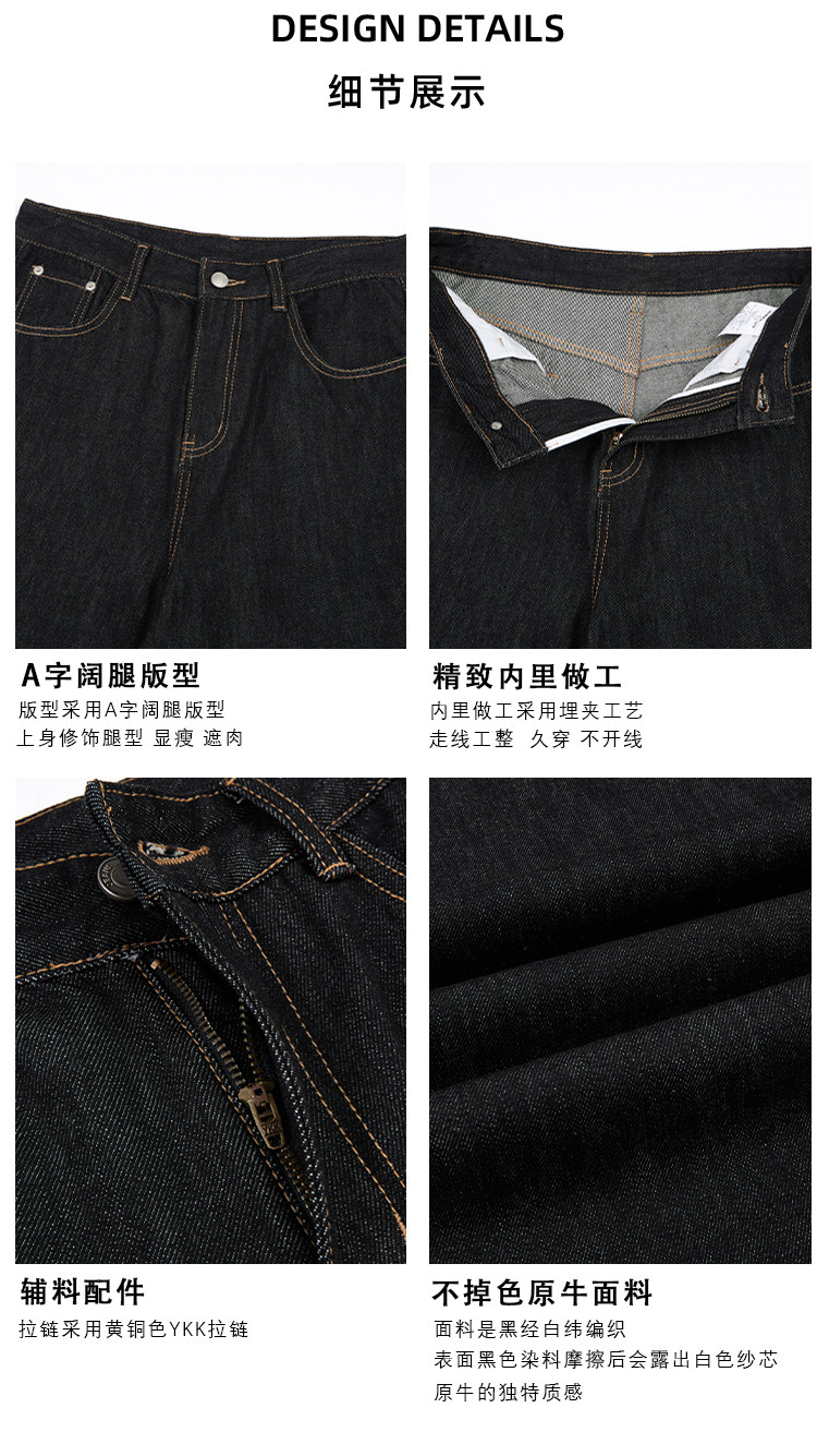 A6 studio秋季不掉色原牛A字濶腿牛仔褲男直筒寬鬆休閒通勤褲子