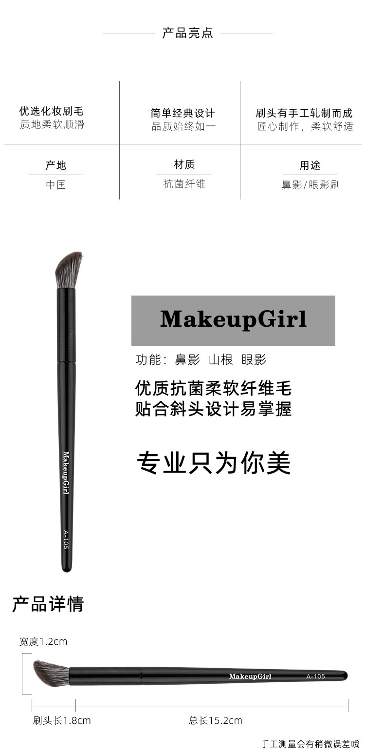魅女郎a105手指腹斜頭鼻影刷修容刷隂影刷側影刷可攜式媚女郎化妝刷