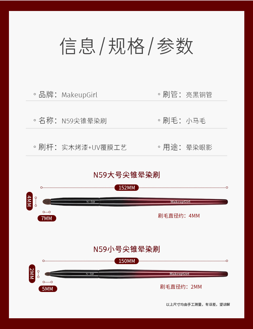 魅女郎硃釉N59尖錐暈染刷眼影臥蠶提亮刷小馬毛眼部細節化妝刷子
