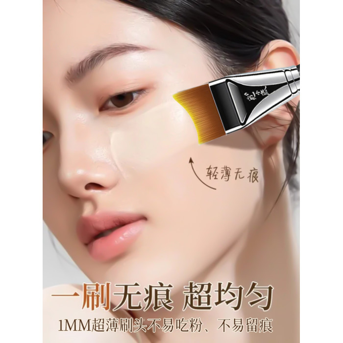 覔小鹿超薄化妝師專用月牙無痕粉底液刷扁頭敏感肌專用加調色板
