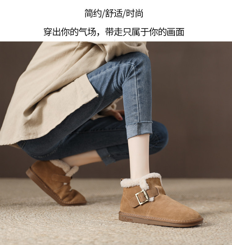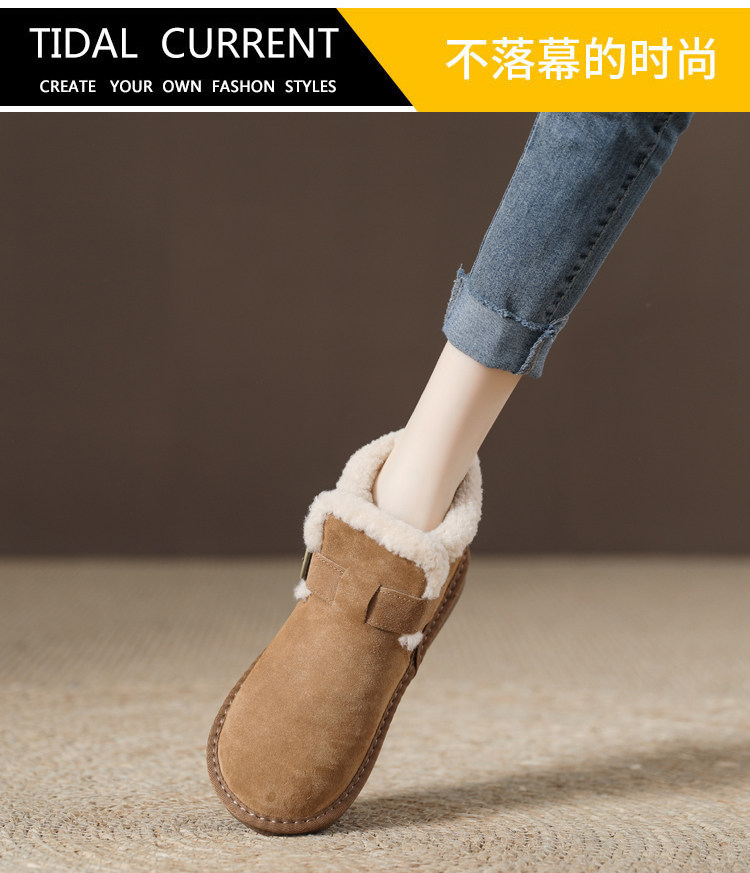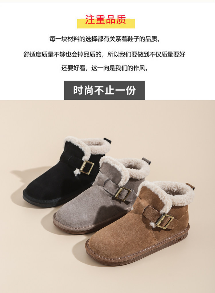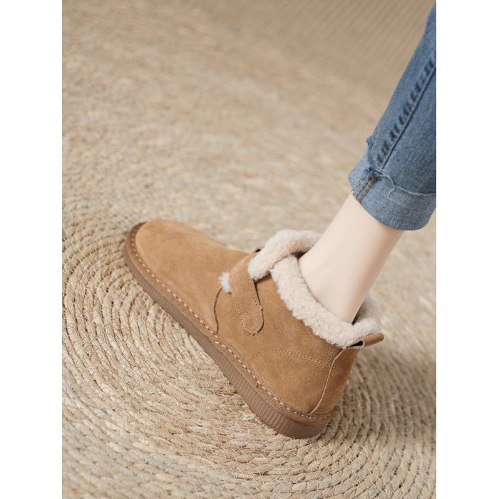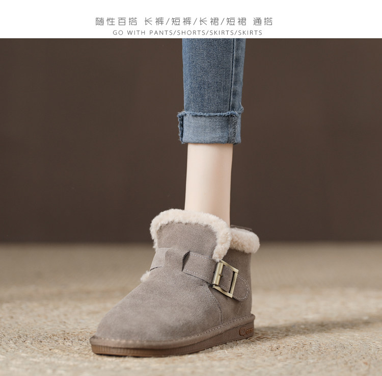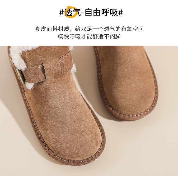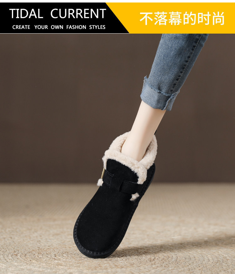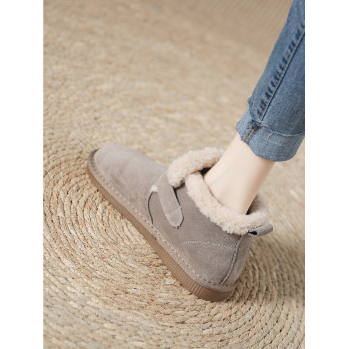 真羊皮毛一體雪地靴女款2025年新款女鞋冬季加絨加厚短款麵包棉鞋
