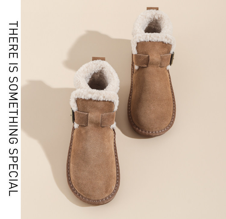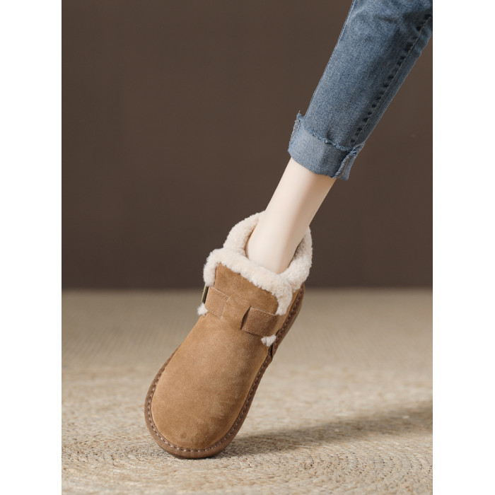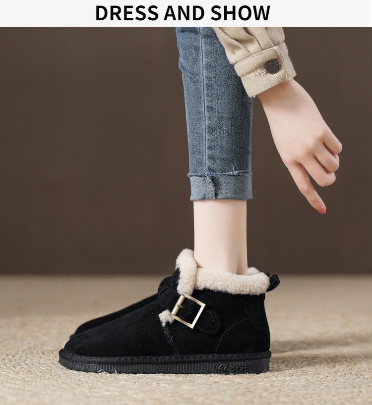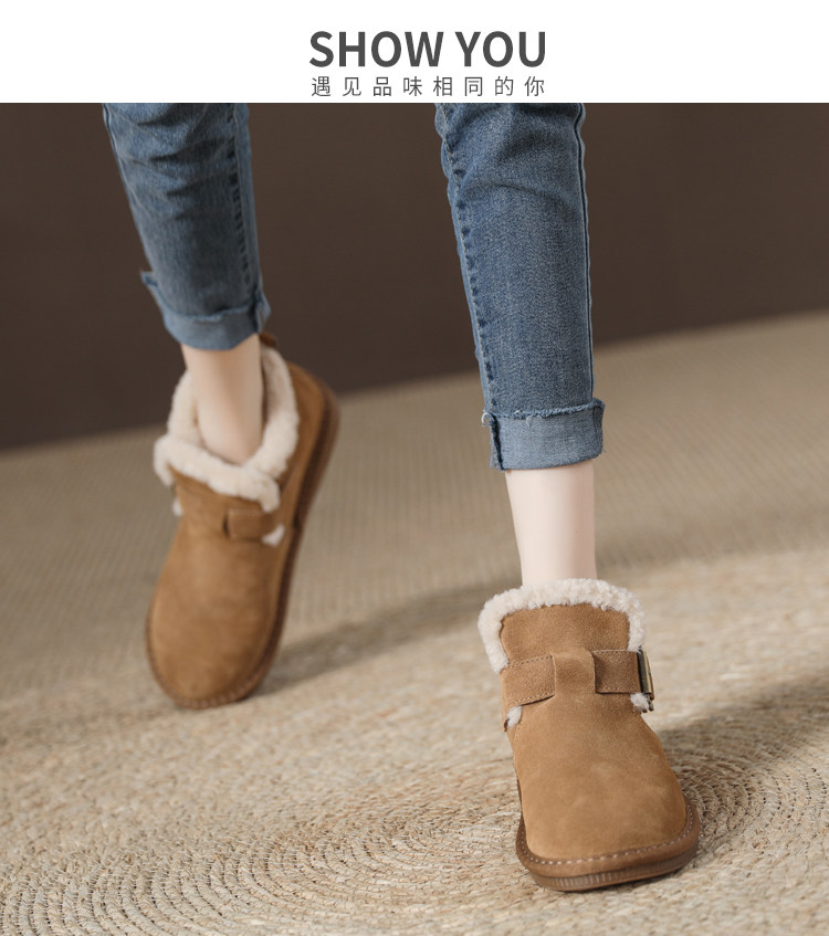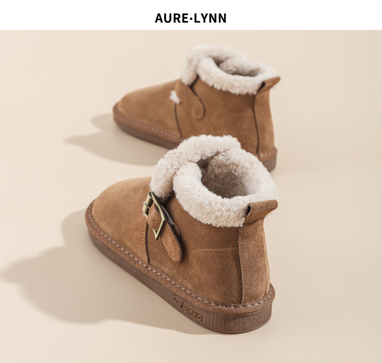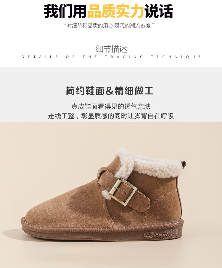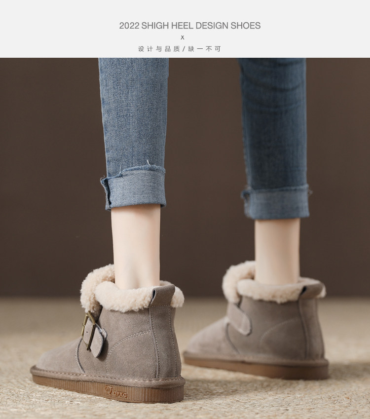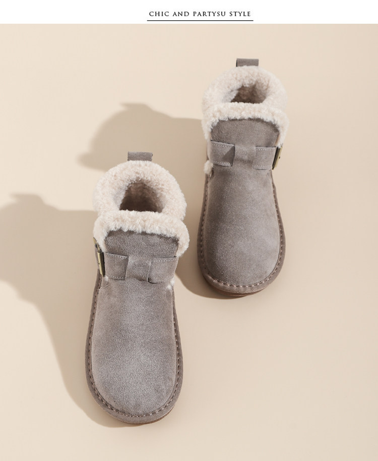 真羊皮毛一體雪地靴女款2025年新款女鞋冬季加絨加厚短款麵包棉鞋