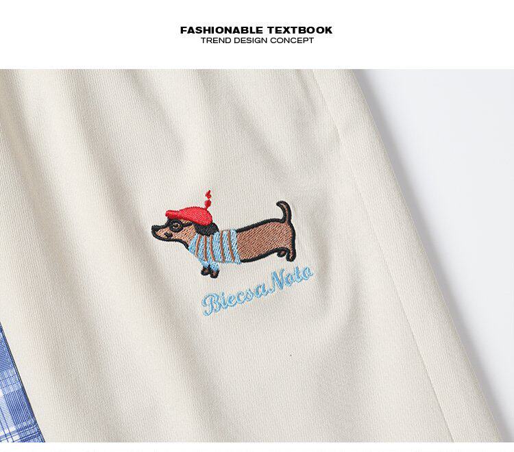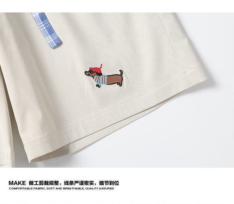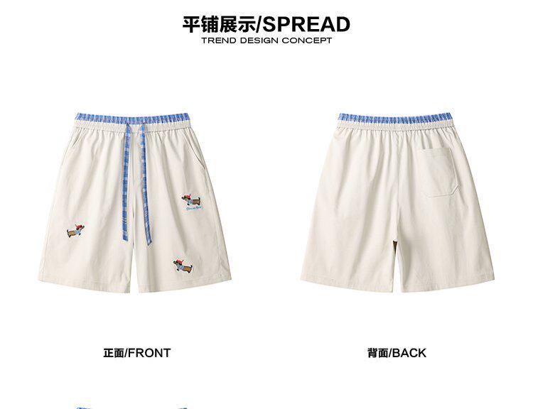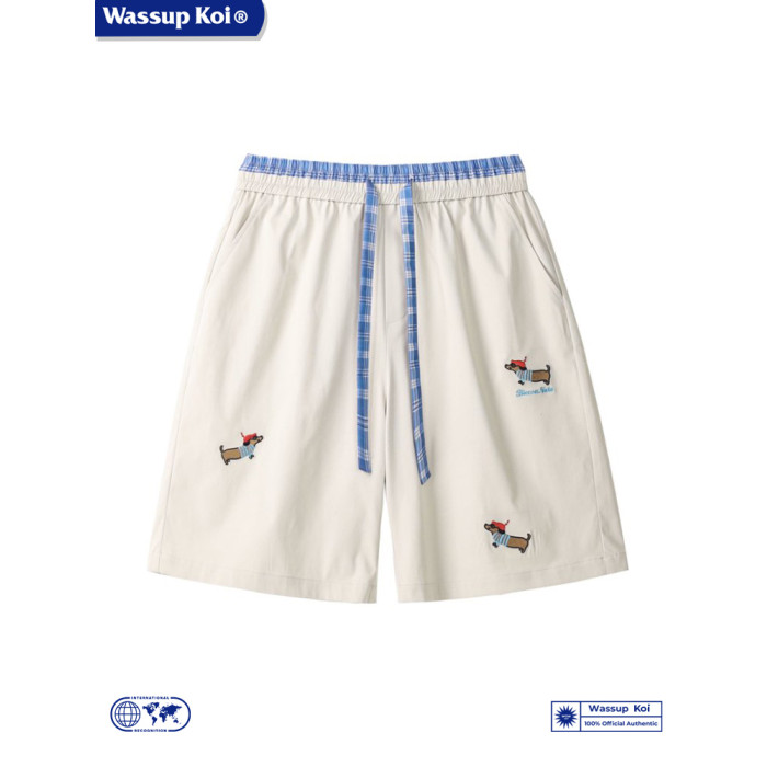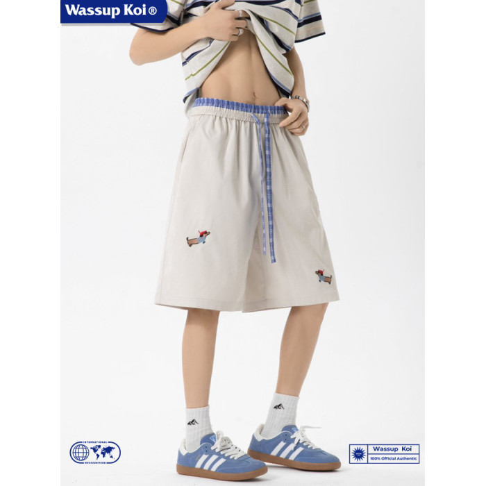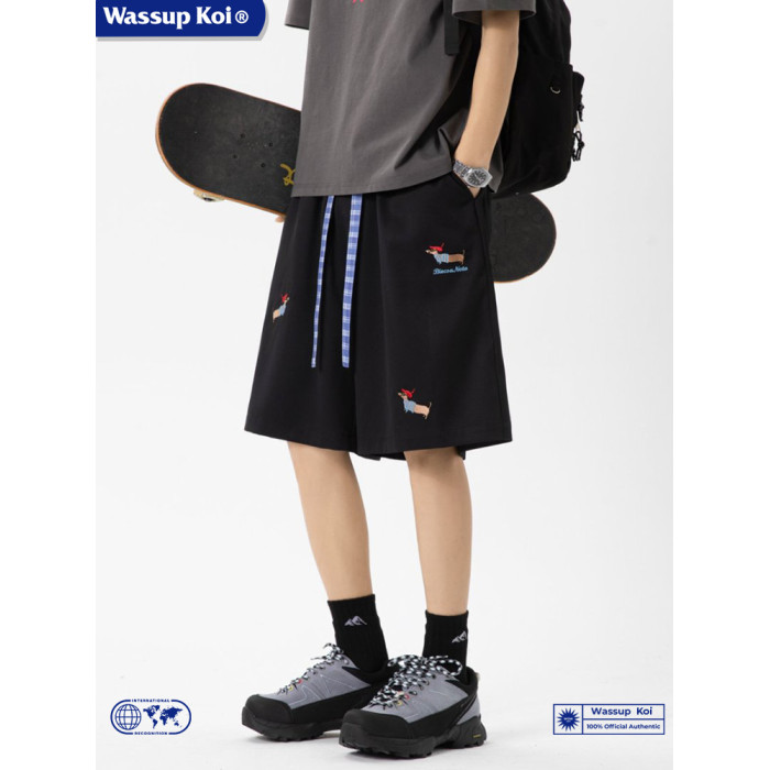 WASSUP KOI臘腸狗刺綉美式運動短褲男夏季寬鬆運動休閒五分沙灘褲