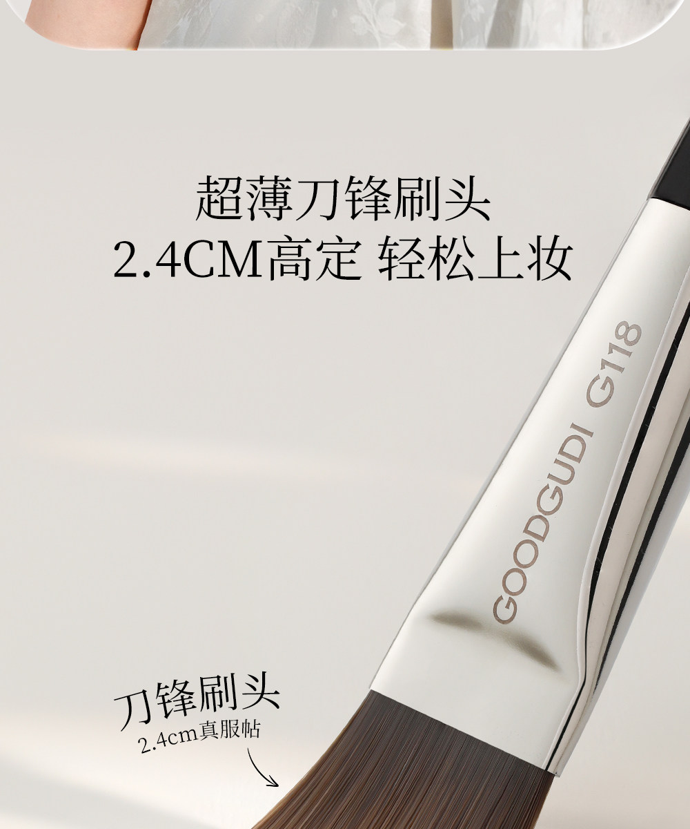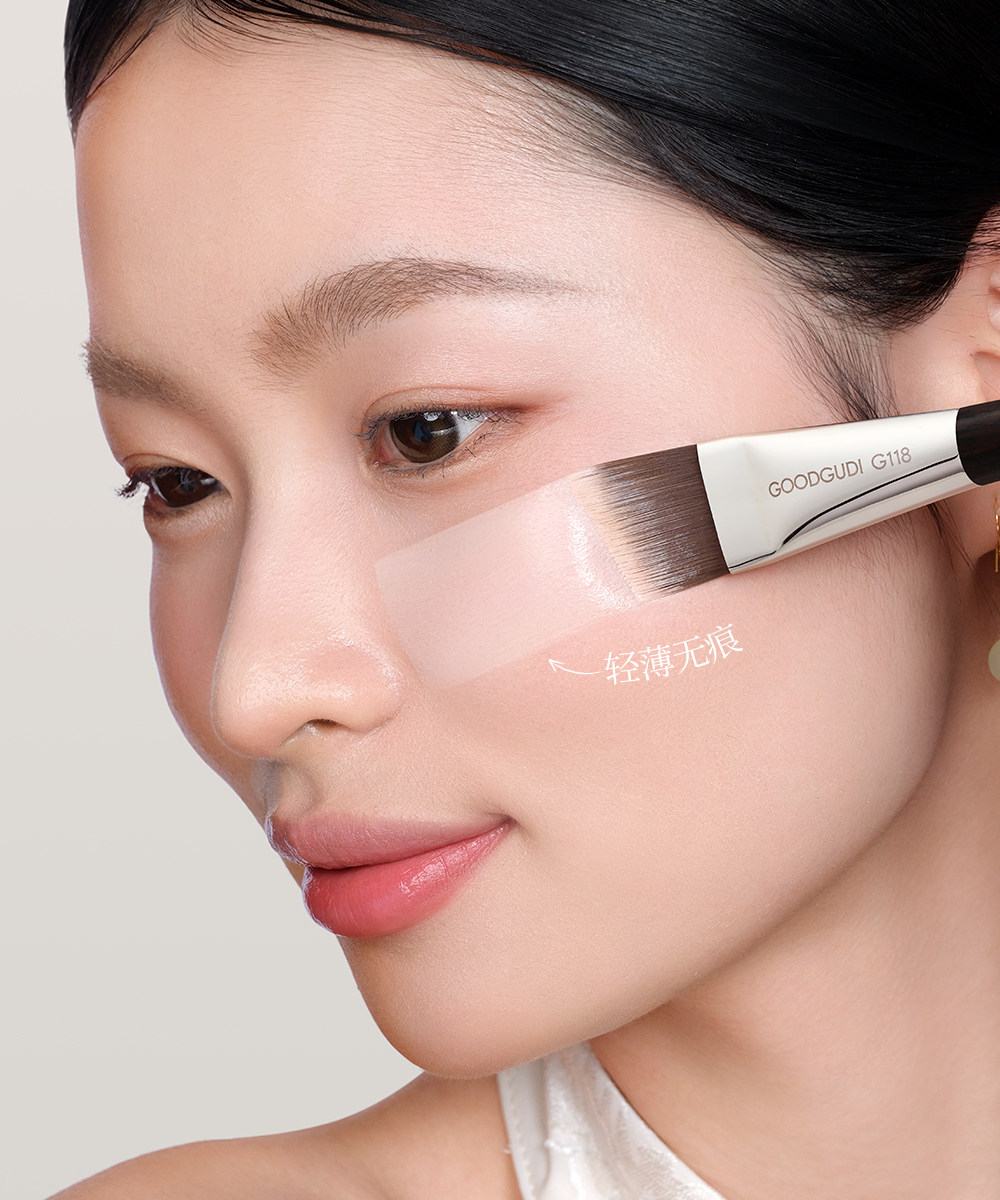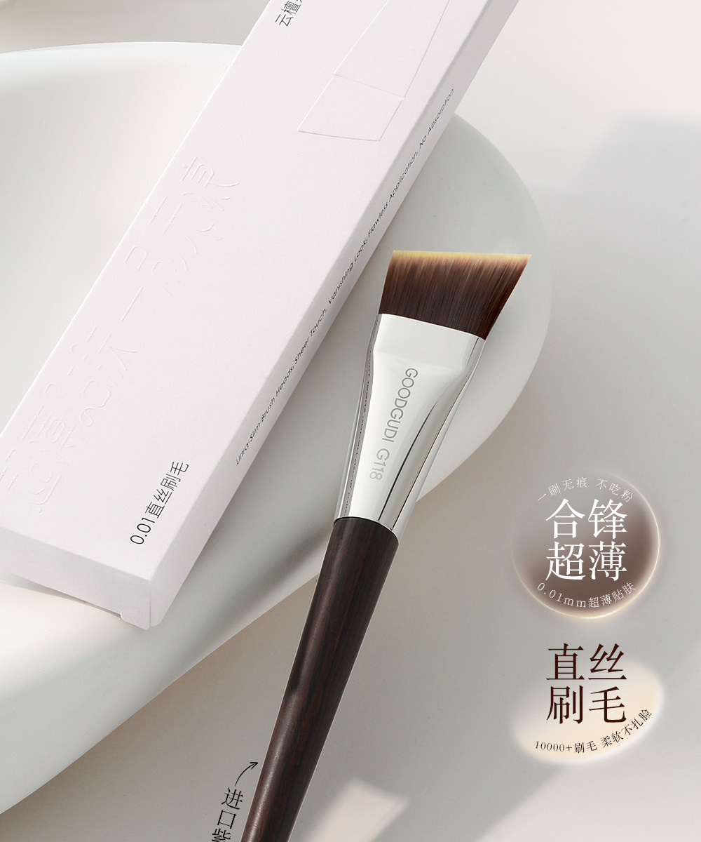 古迪雲檀超薄刀鋒粉底刷子加調色板扁頭一刷無痕不吃粉化妝師專用