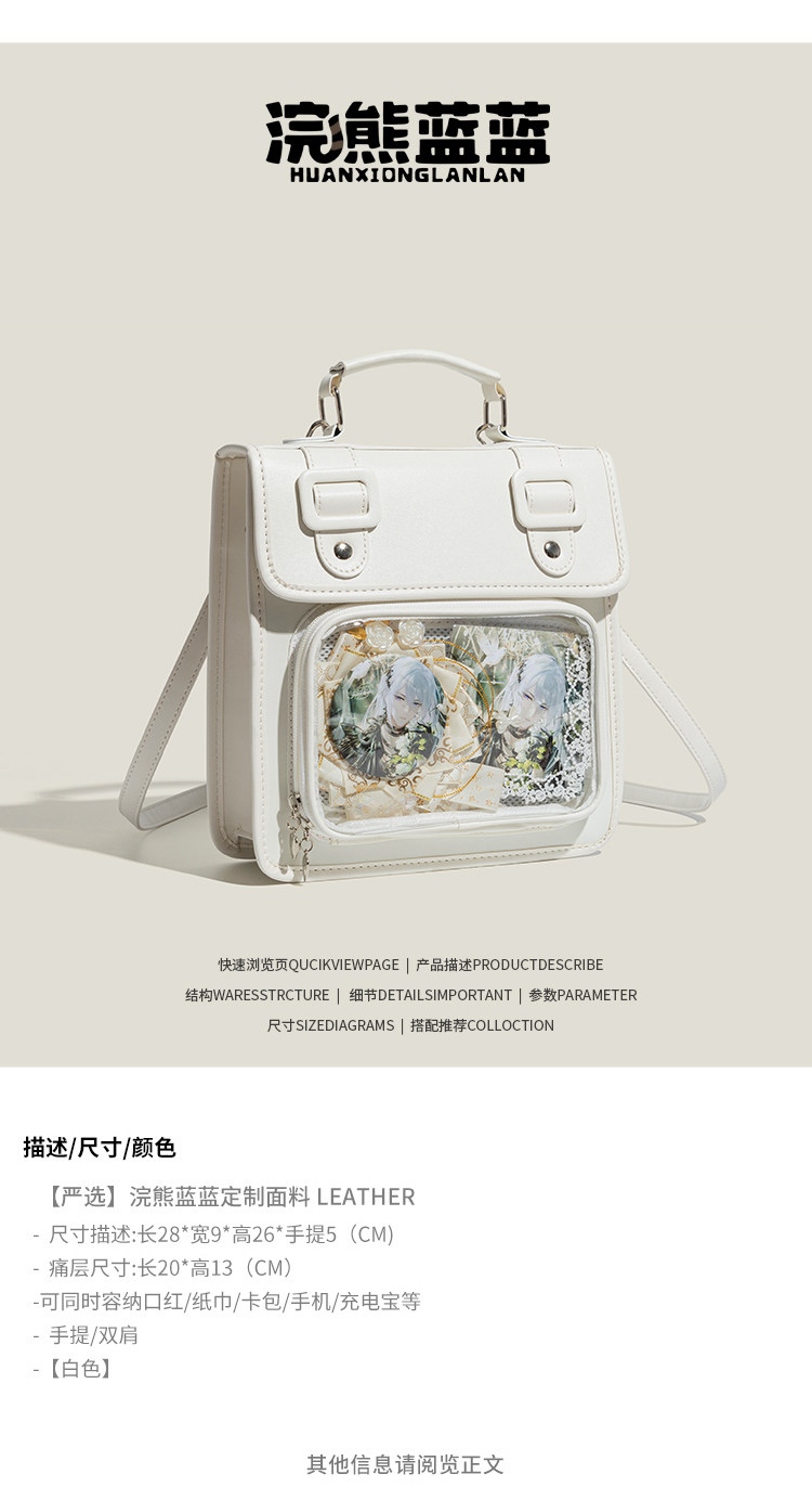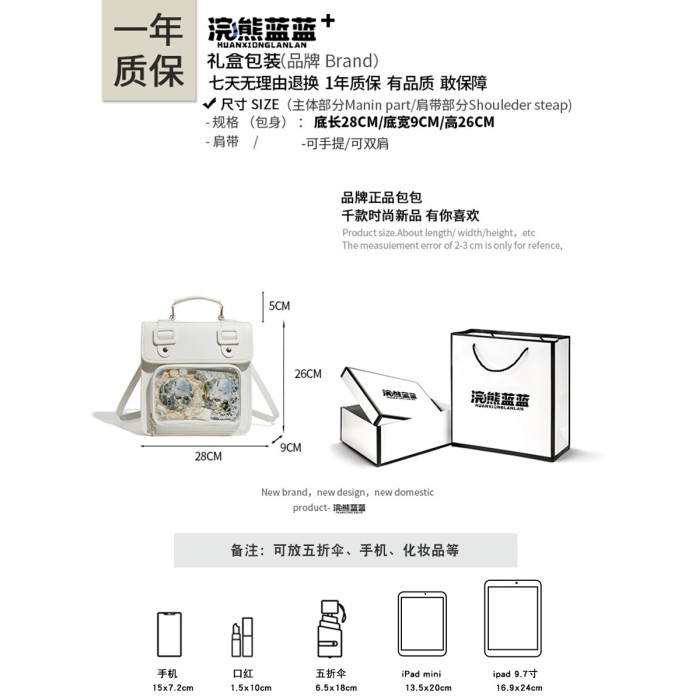 浣熊藍藍原創透明痛包女日常百搭校園學院風二次元透明單肩雙肩包