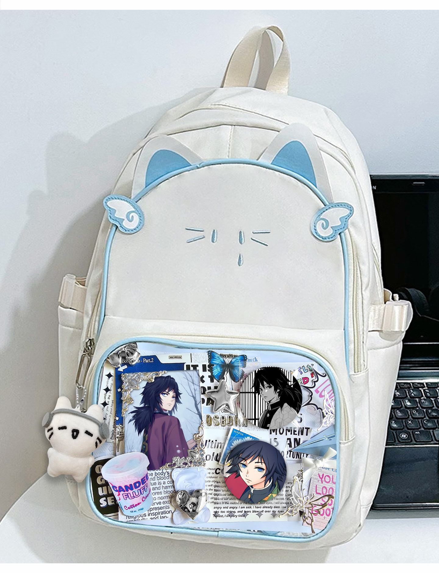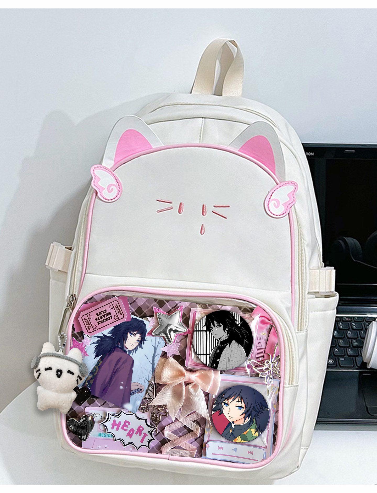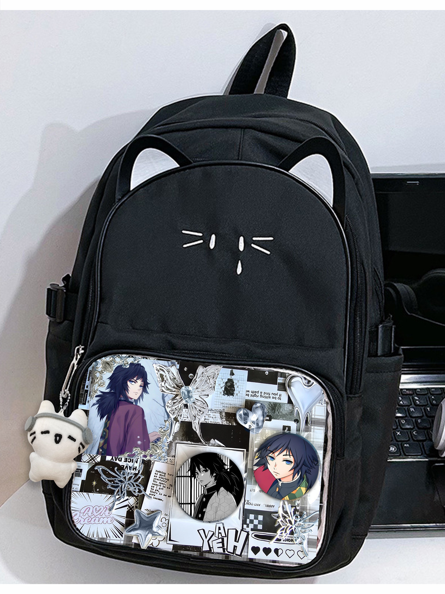 富岡義勇鬼滅之刃吧唧痛包大容量雙肩書包單肩包貓貓包學生少女心