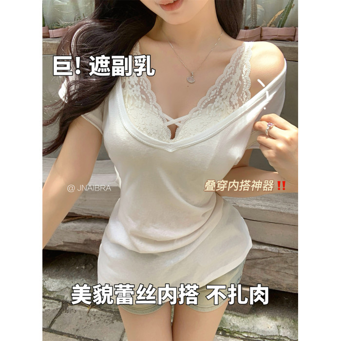 超聚攏!龍心蕾絲內搭曡穿神器!遮副乳美背打底背心春夏純欲氛圍感