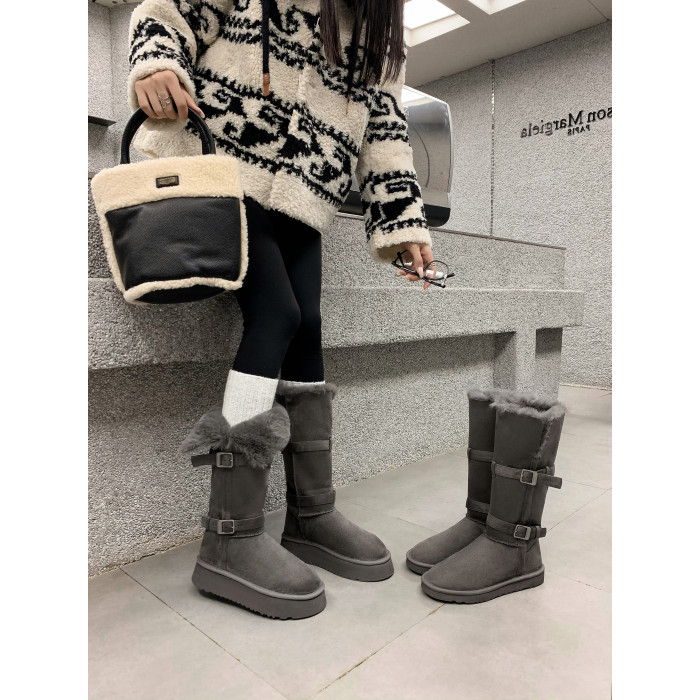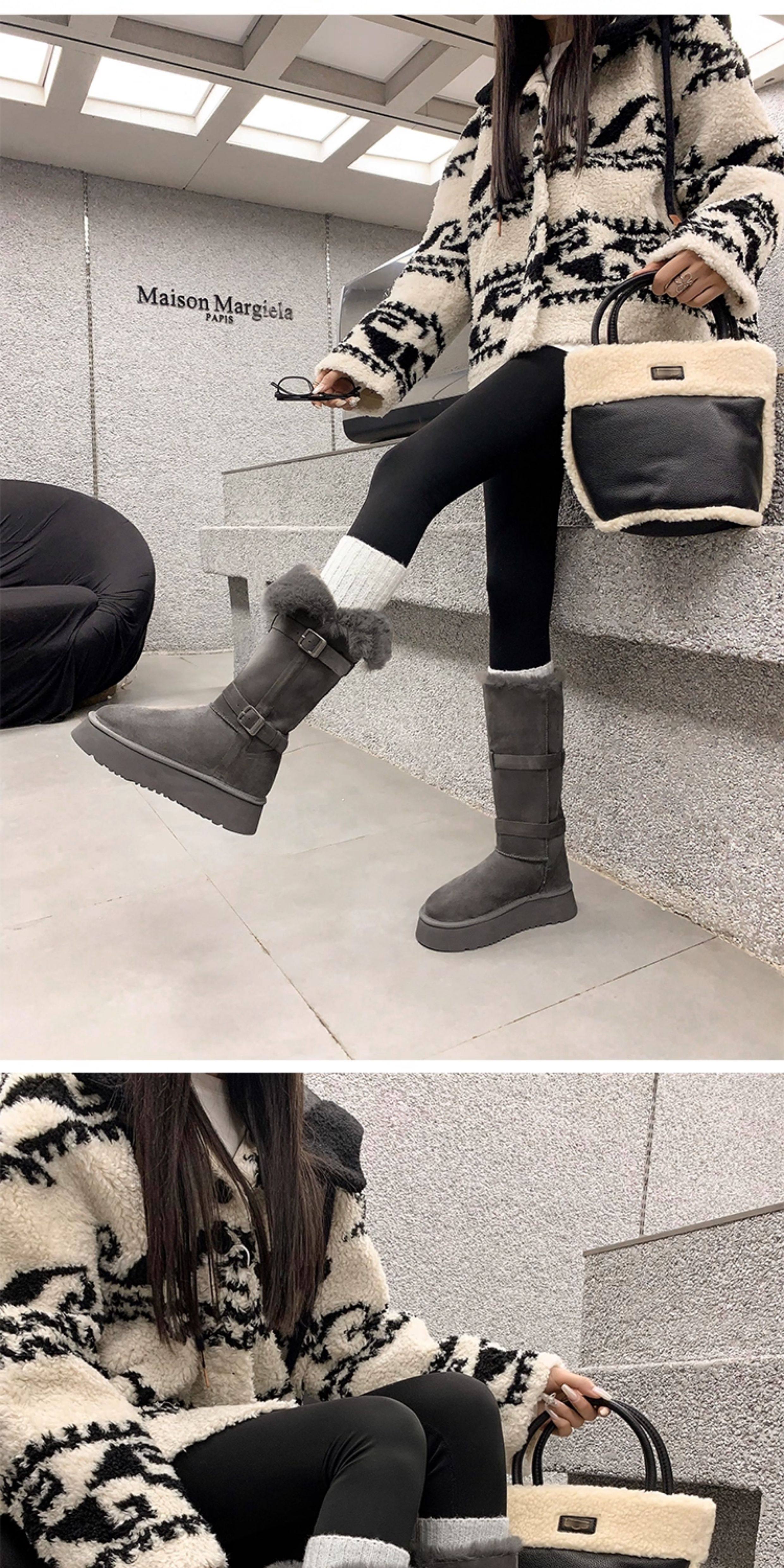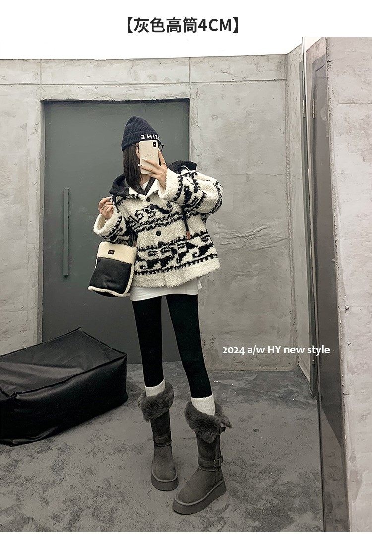 品牌撤櫃兩穿灰色長筒雪地靴女2025冬季新款皮毛一體加絨加厚長靴