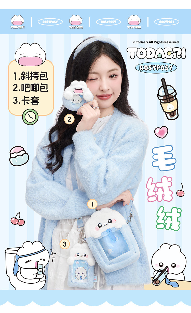 RosyPosy柔設&兔代理毛絨雙肩包趴趴包斜後後背包痛包筆袋卡套吧唧包