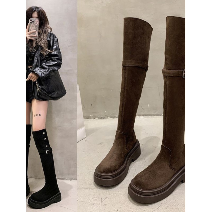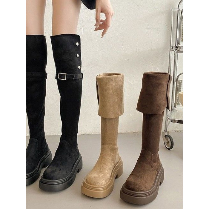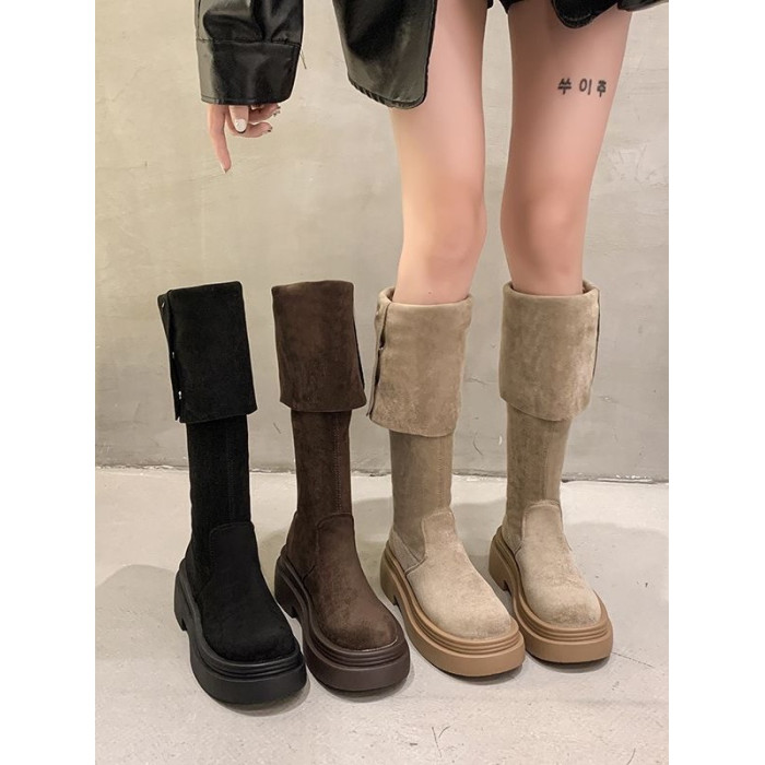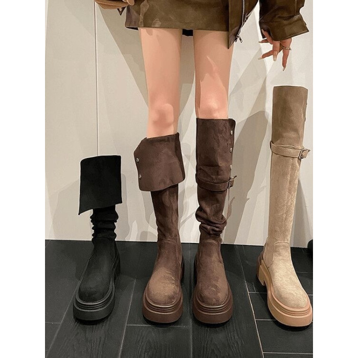 兩穿繙折厚底長筒靴子女2026年春秋四季新款粗跟過膝騎士靴歐美