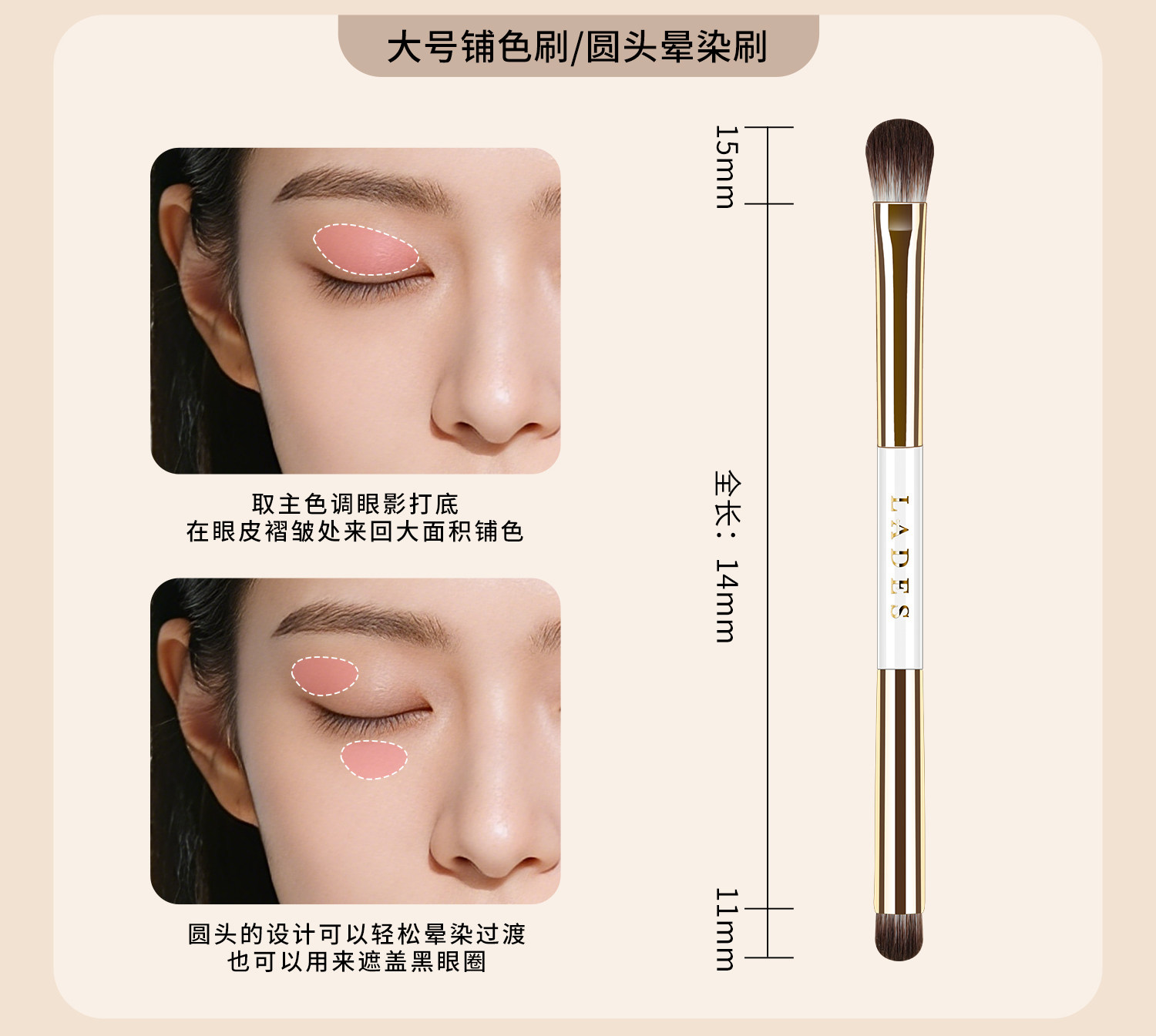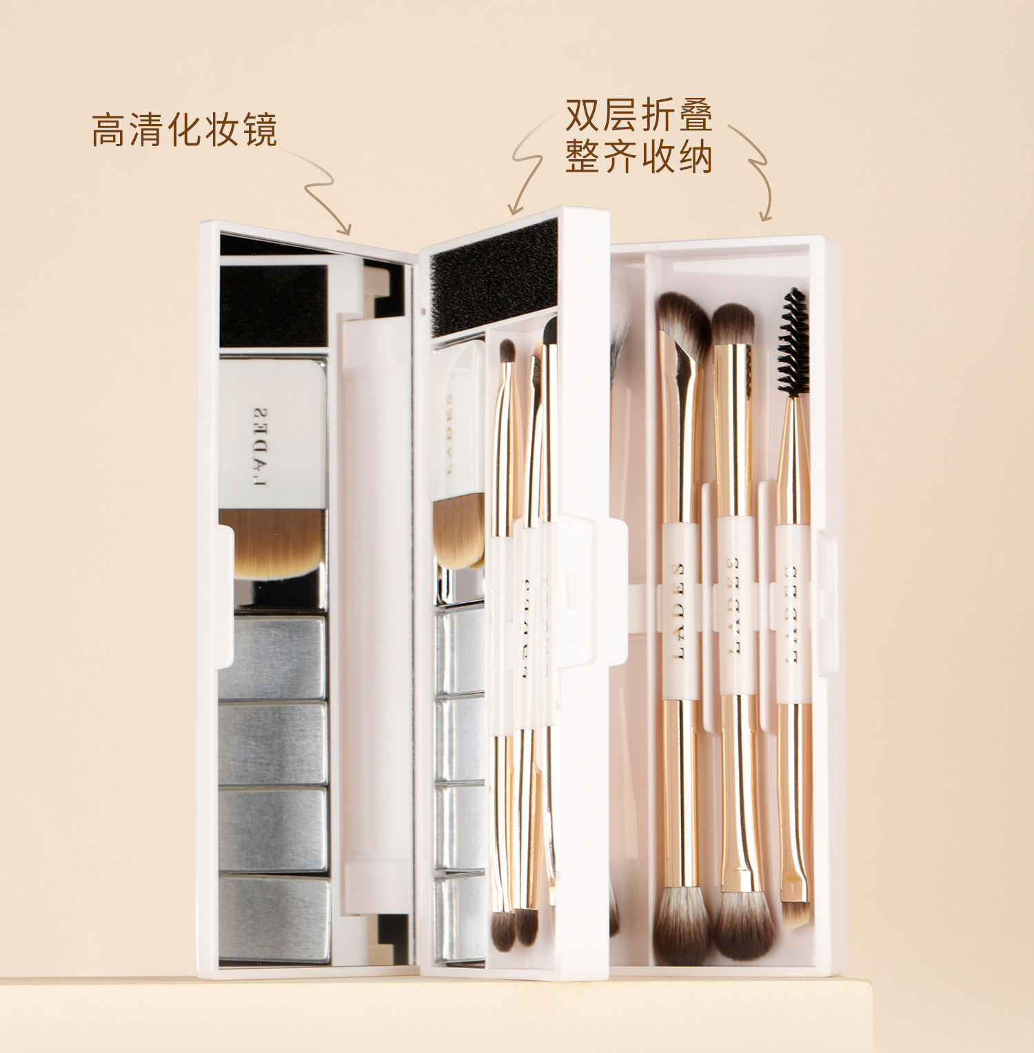 LADES/藍蒂絲三折曡15支雙頭可攜式套刷眼影刷點彩鋪色化妝刷套盒裝