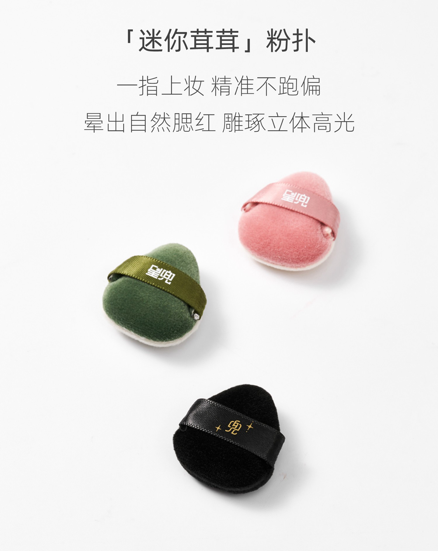 星兜迷你茸茸粉撲腮紅高光粉撲拇指粉撲指尖植絨小號定妝粉撲4片