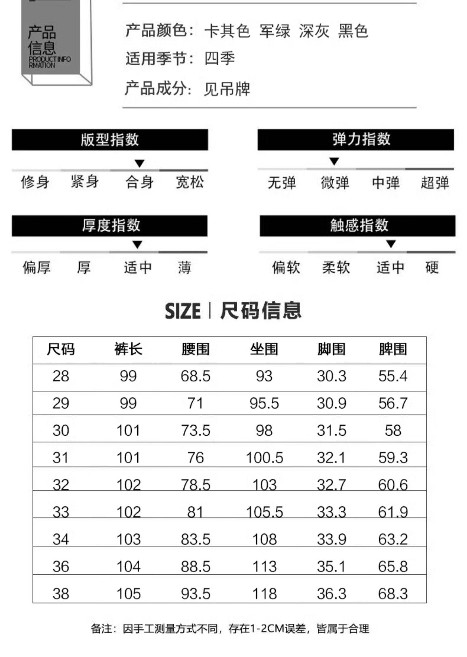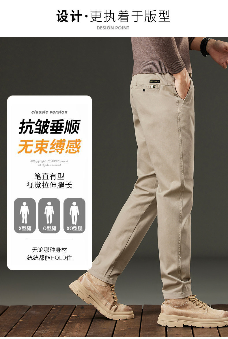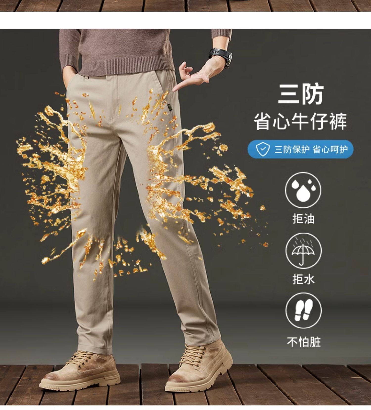 黑科技三防秋冬純棉褲子男士卡其色直筒休閒長褲2025秋季新款春秋