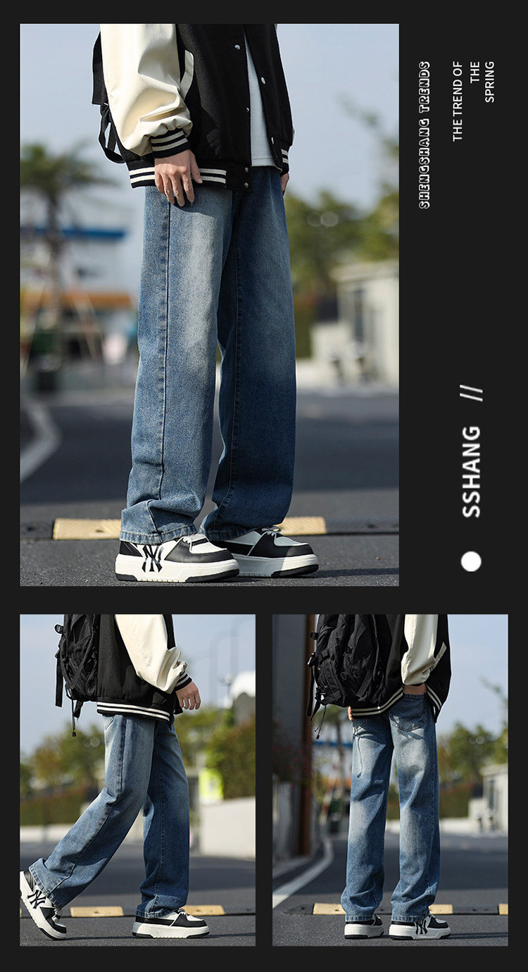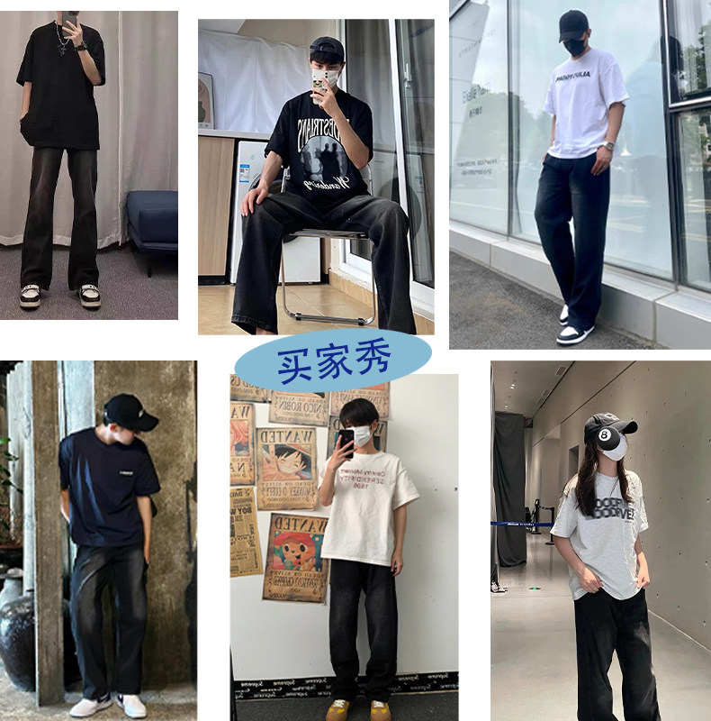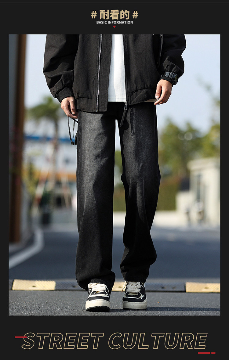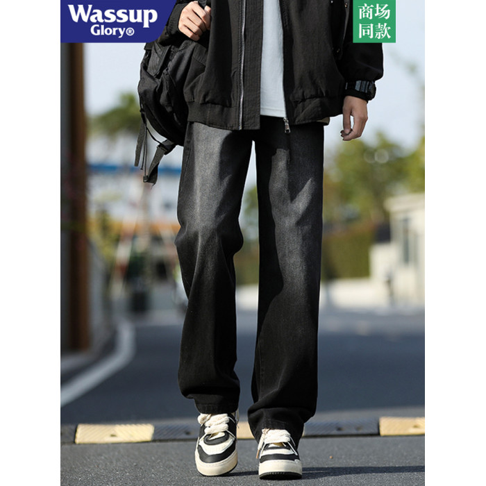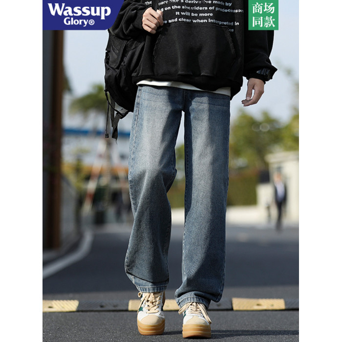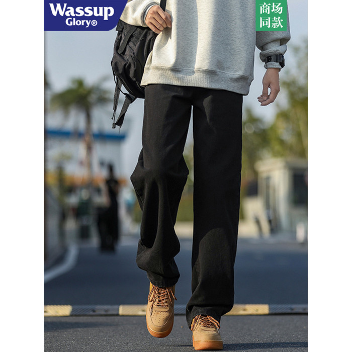 WASSUP GLORY美式牛仔褲男冬季加絨加厚潮牌休閒褲子寬鬆直筒長褲