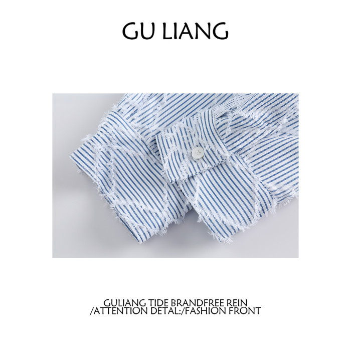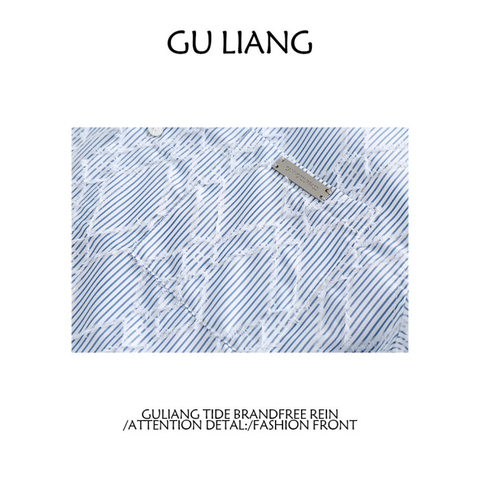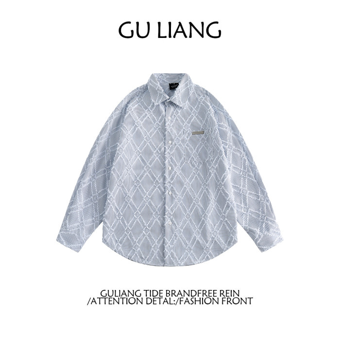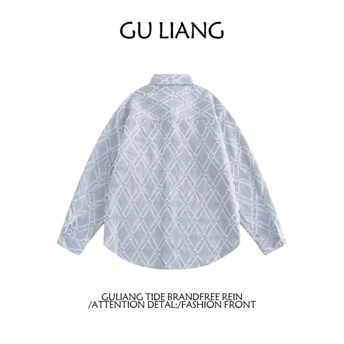 GU LIANG「設計師品牌」/男女同款/小衆特殊面料菱形格百搭襯衫潮