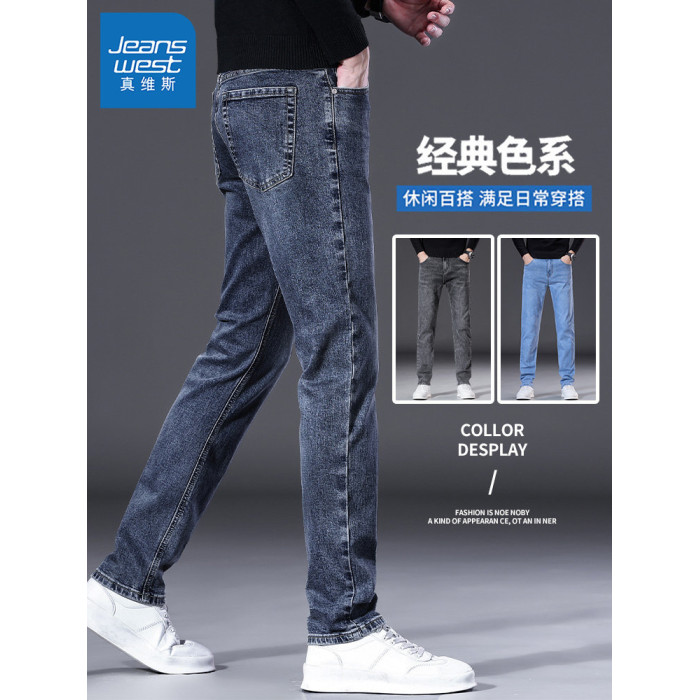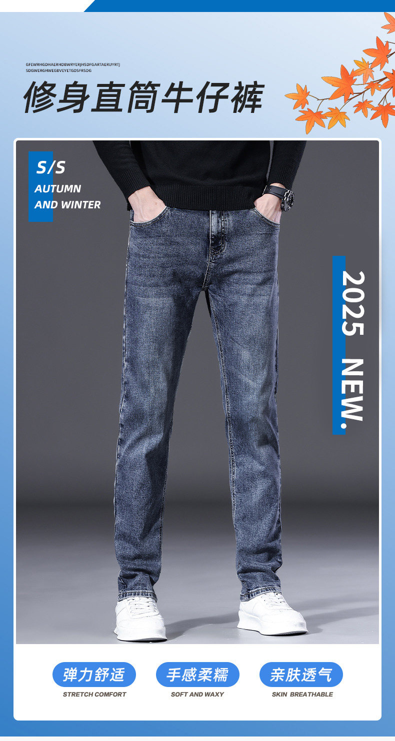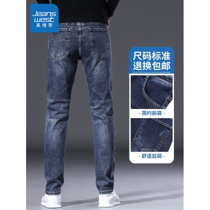 真維斯牛仔褲男秋冬新款2025男士修身直筒長褲彈力潮牌百搭加絨褲