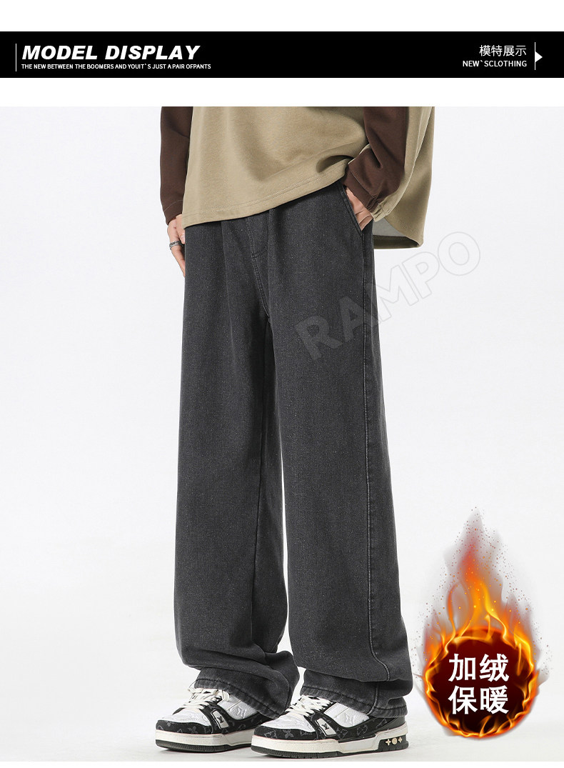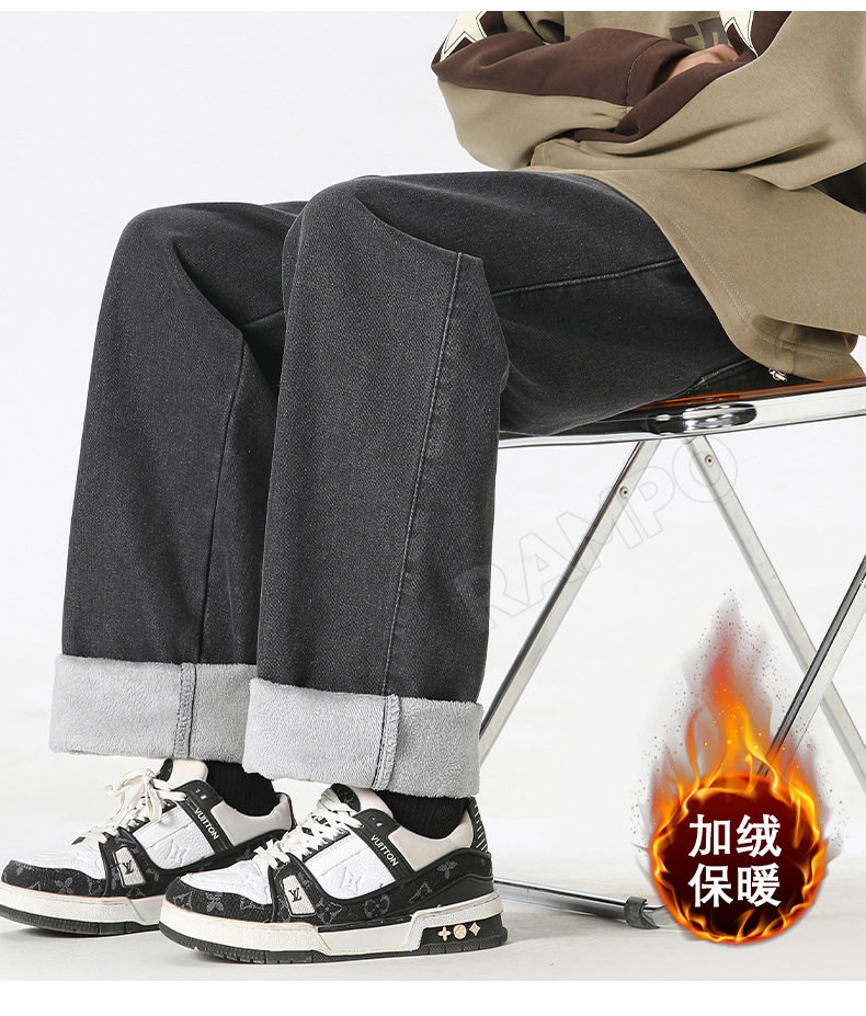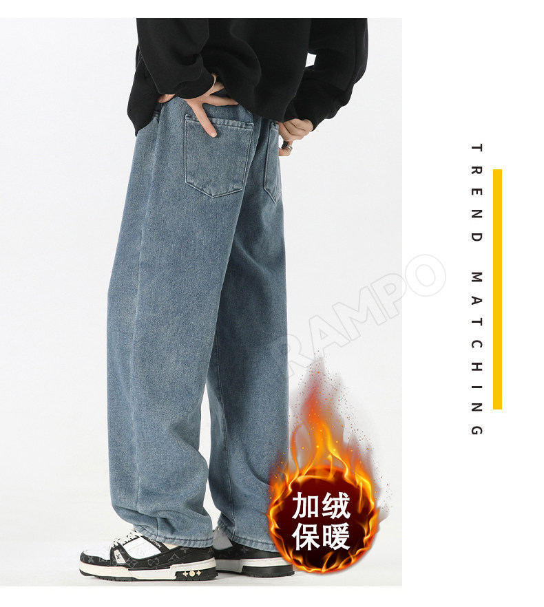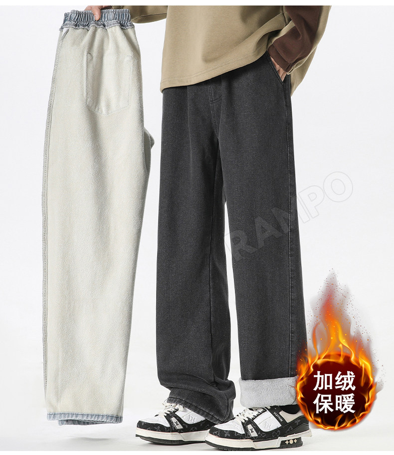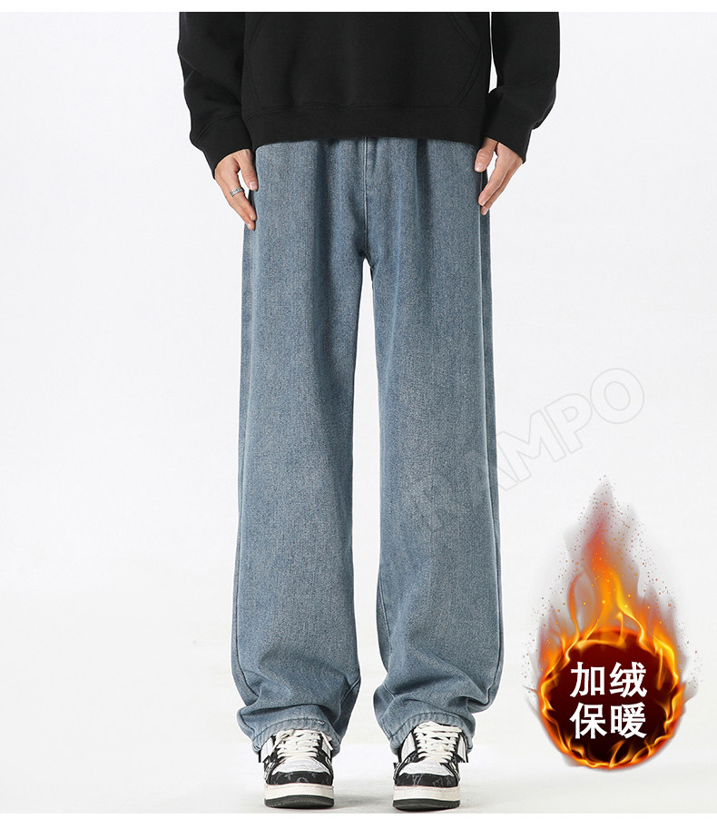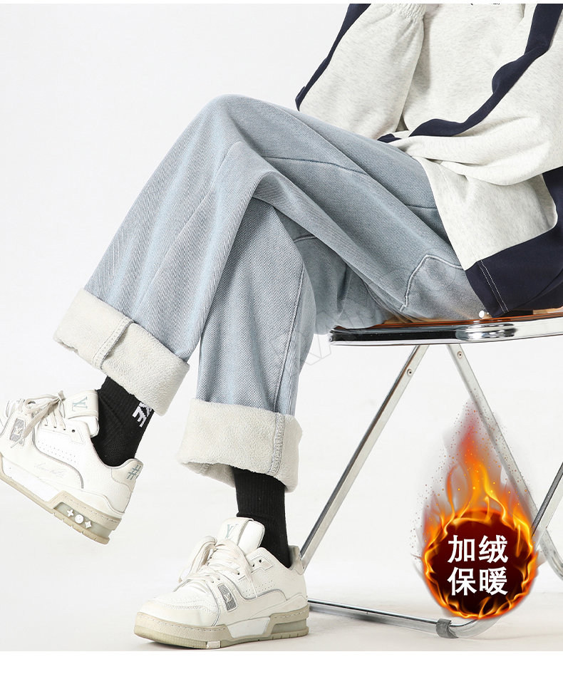 牛仔褲男款加絨加厚保暖冬季2025新款寬鬆直筒褲男士休閒男裝長褲