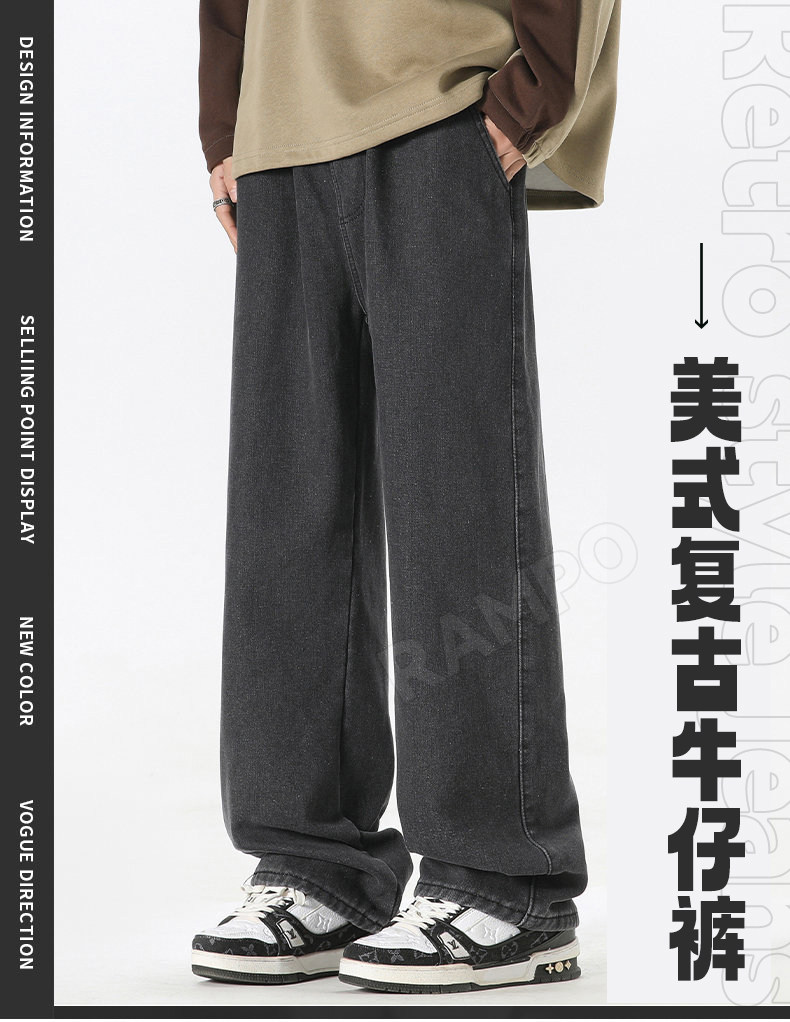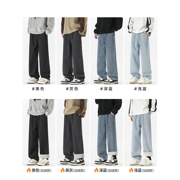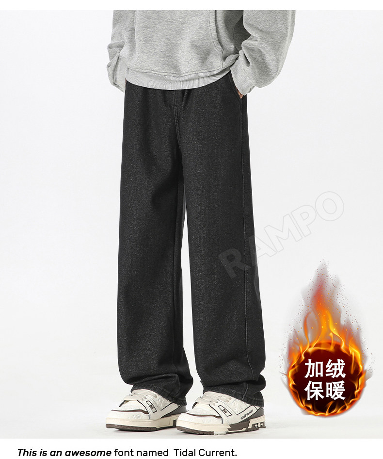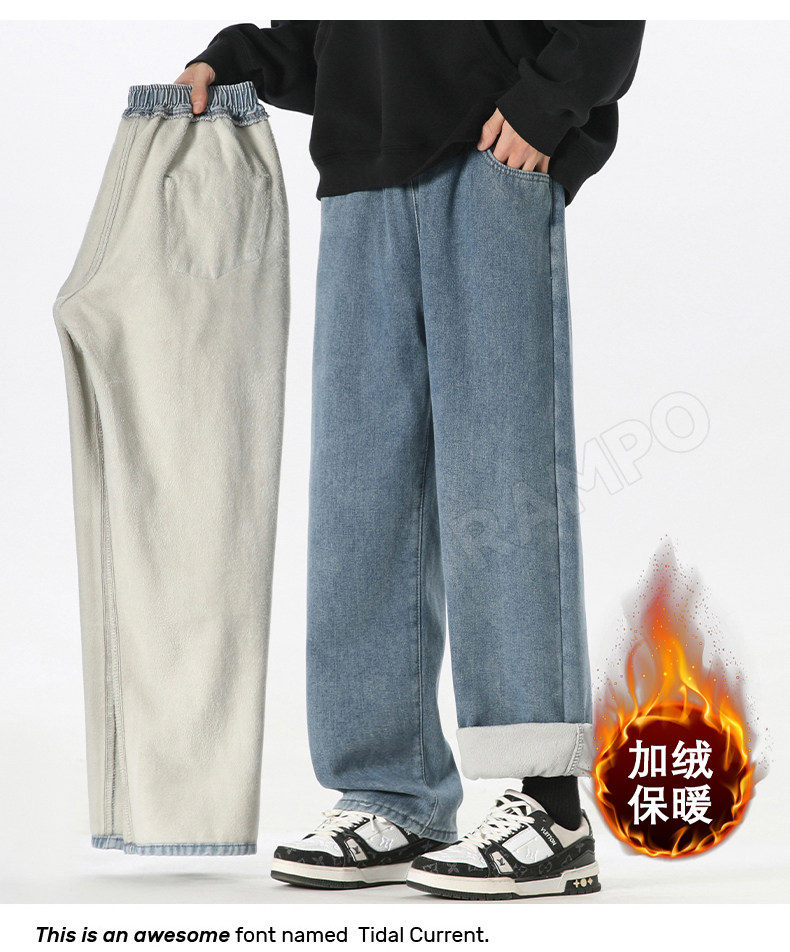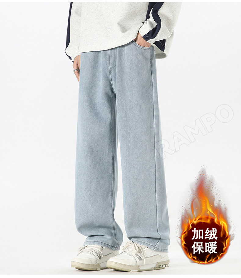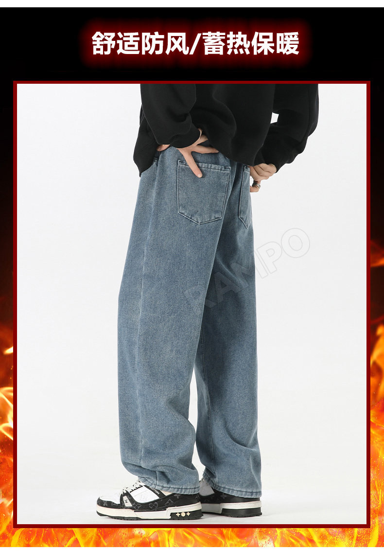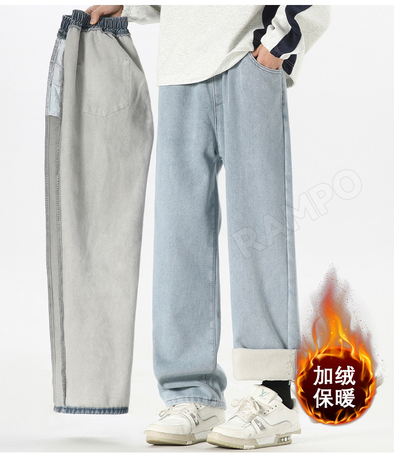 牛仔褲男款加絨加厚保暖冬季2025新款寬鬆直筒褲男士休閒男裝長褲