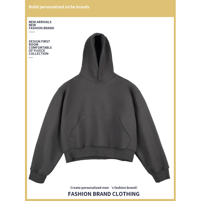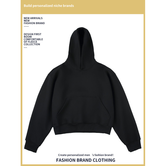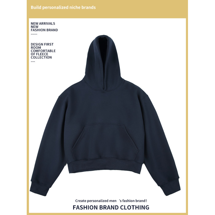 Weishang秋冬新款連帽純色套頭衫寬鬆休閒短款內搭上衣慵懶衛衣