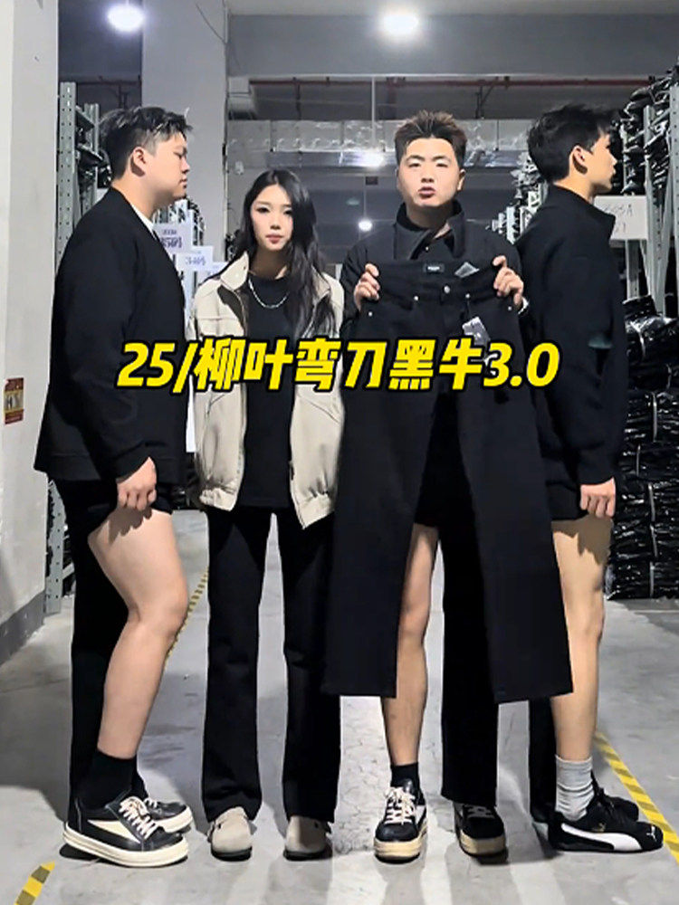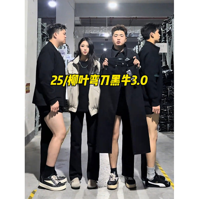 美式3.0黑色柳葉彎刀牛仔褲男款腿粗屁股大修身顯瘦直筒微喇褲子
