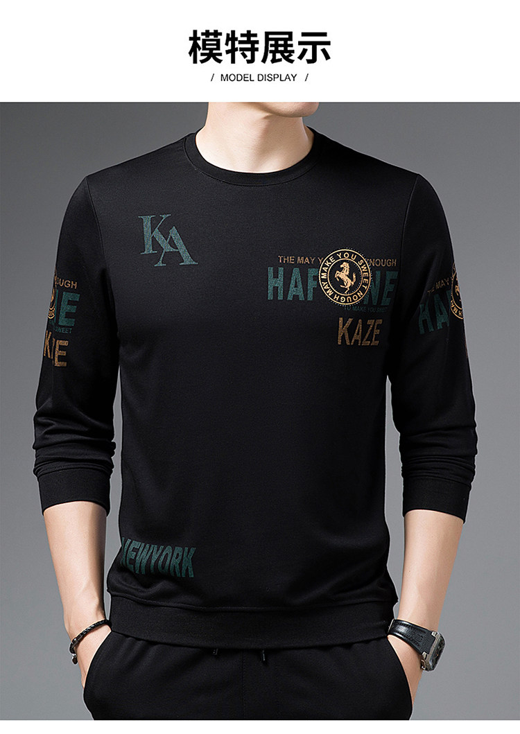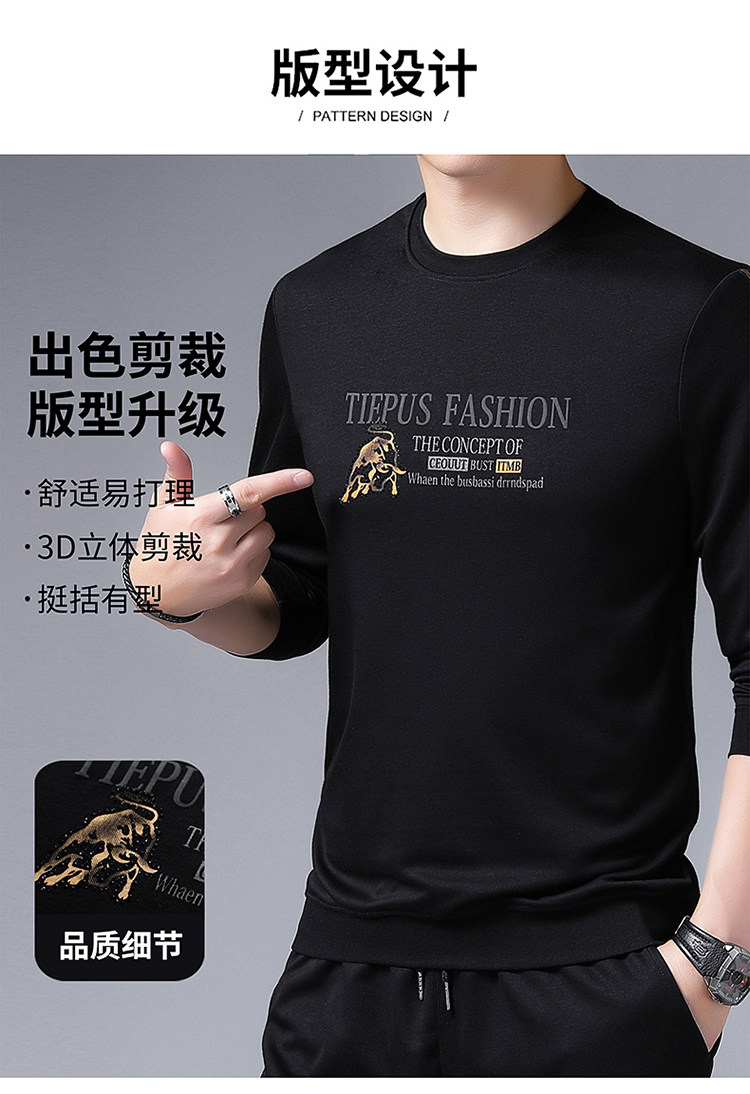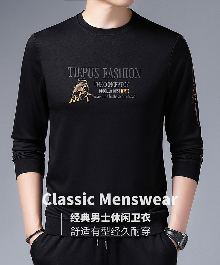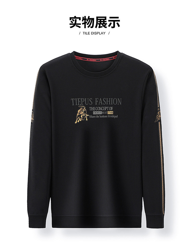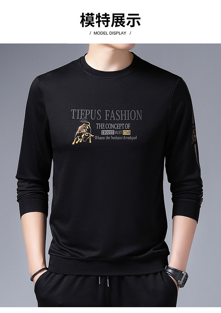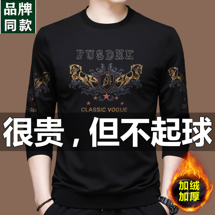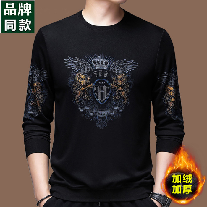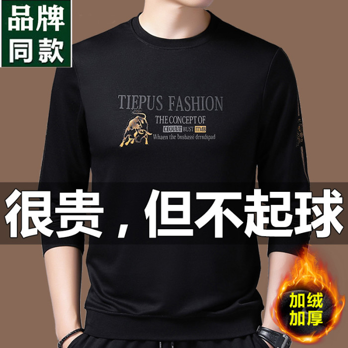 純棉衛衣男士加絨加厚冬季圓領印花中年長袖t恤保暖秋款休閒男裝