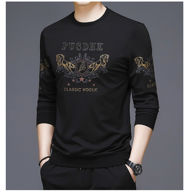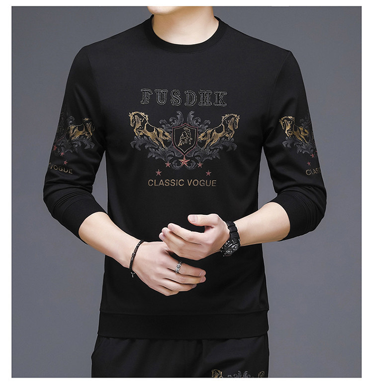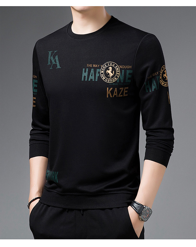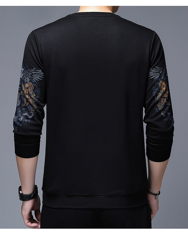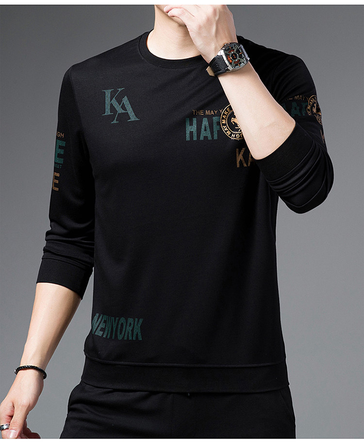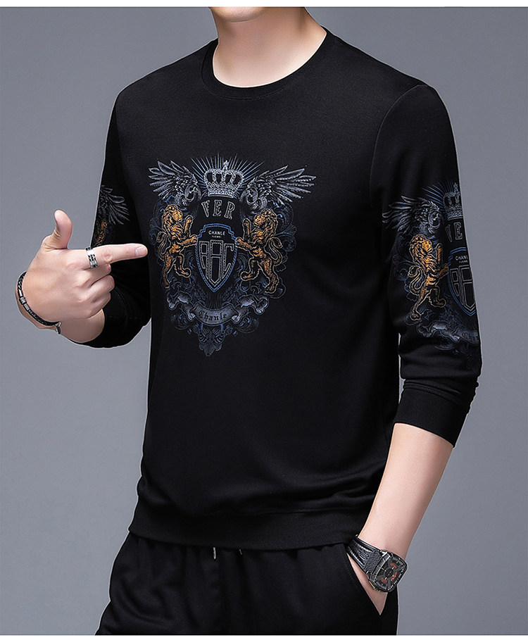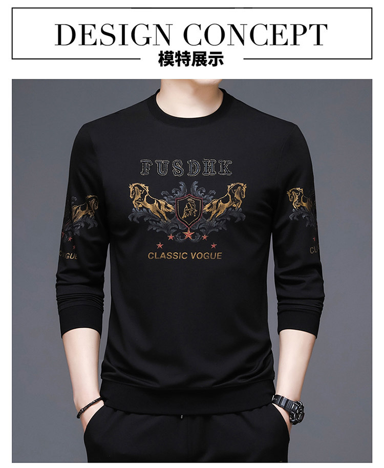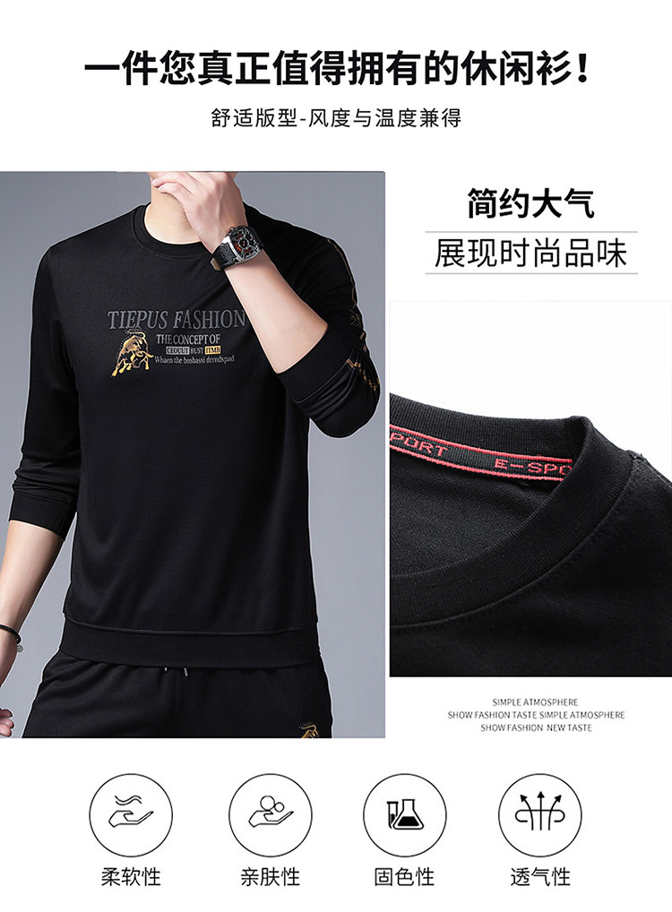 純棉衛衣男士加絨加厚冬季圓領印花中年長袖t恤保暖秋款休閒男裝