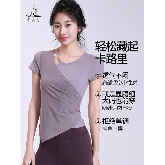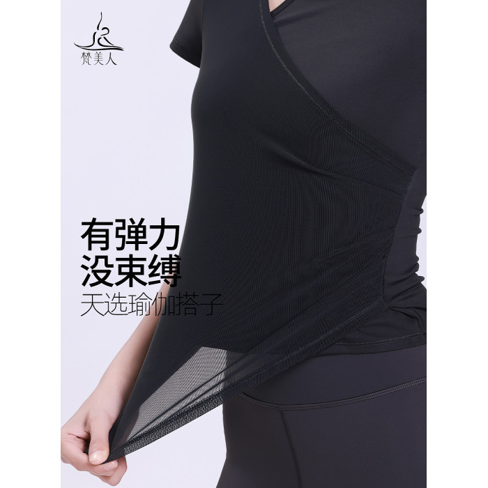 梵美人瑜珈服女新款專業網紗運動短袖健身服跑步普拉提訓練服上衣