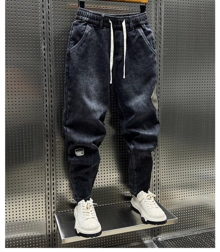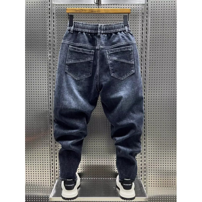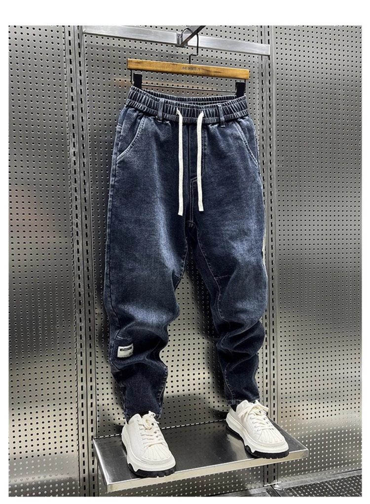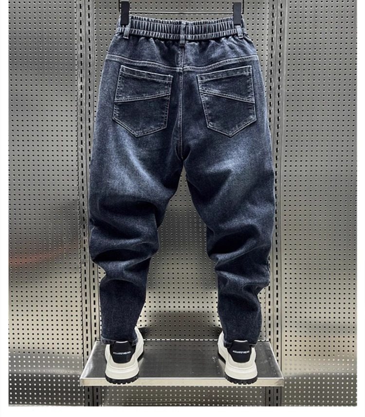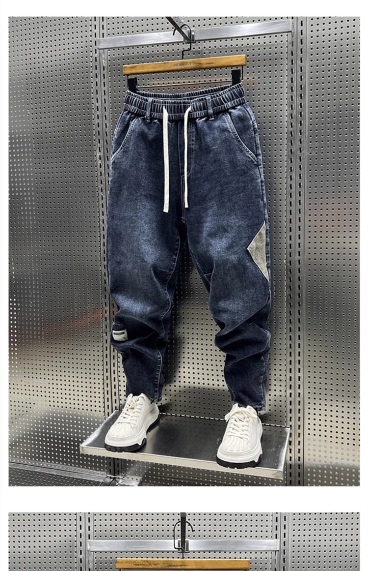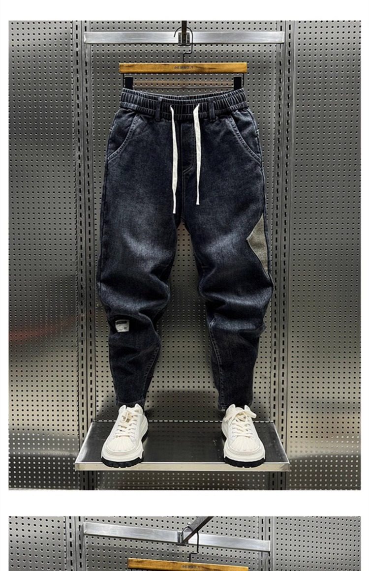 大碼300斤秋冬潮牌男士牛仔褲子水洗百搭彈力寬鬆小腳哈倫九分褲2