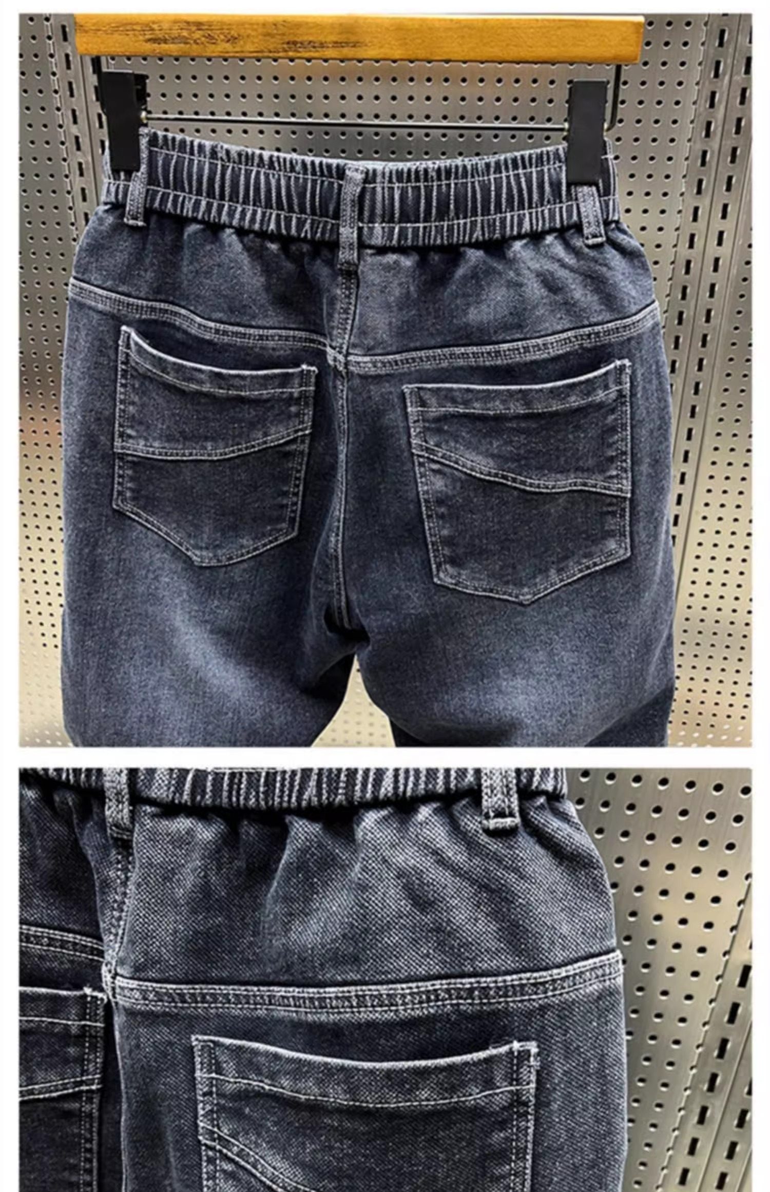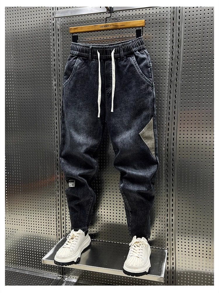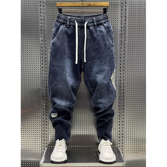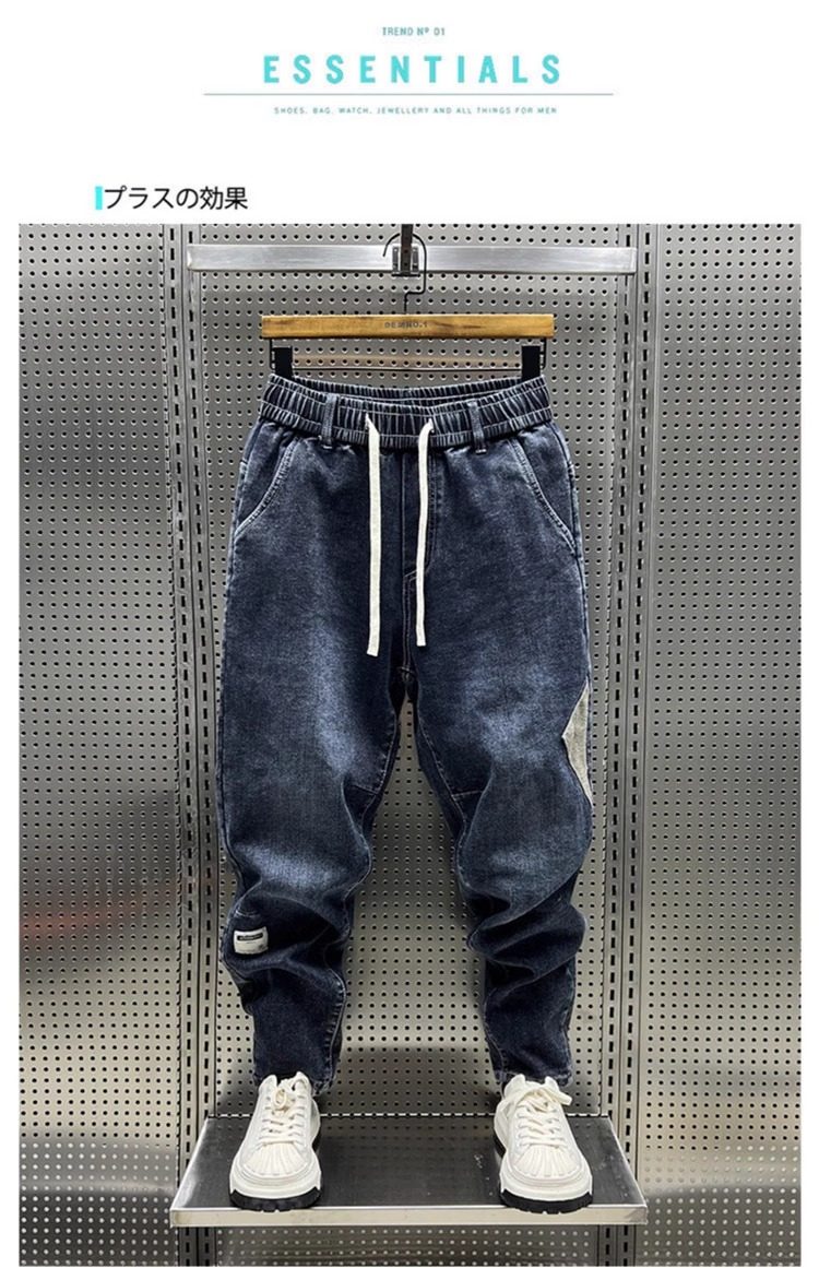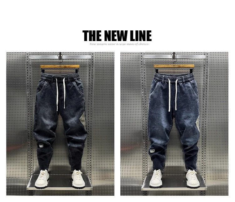 大碼300斤秋冬潮牌男士牛仔褲子水洗百搭彈力寬鬆小腳哈倫九分褲2