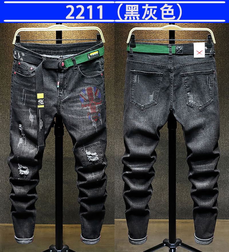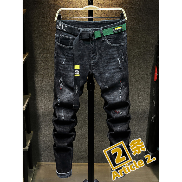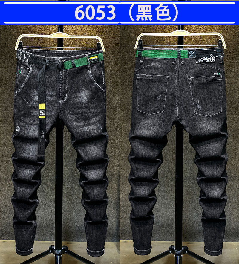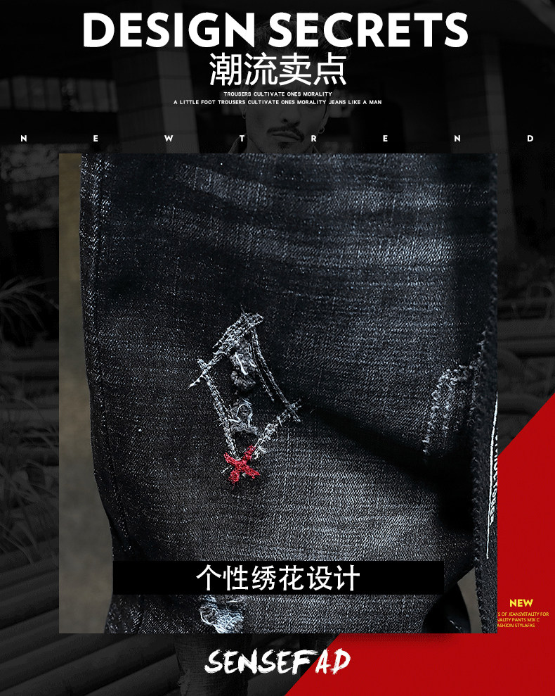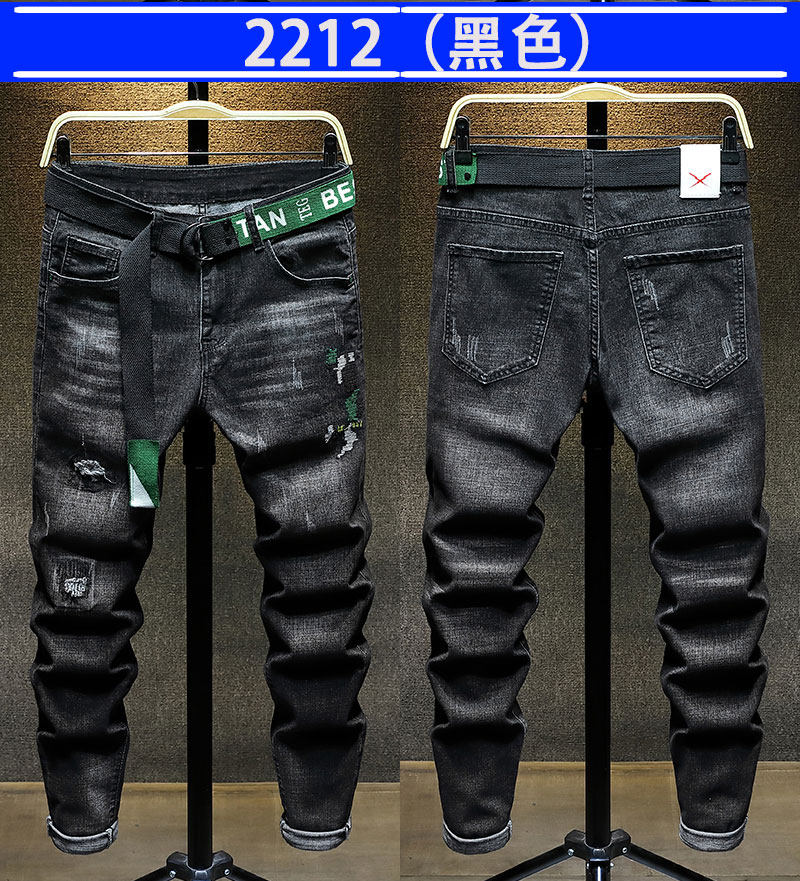 秋季新款潮牌破洞黑色新塘牛仔褲男士寬鬆直筒韓版潮流高彈力褲子
