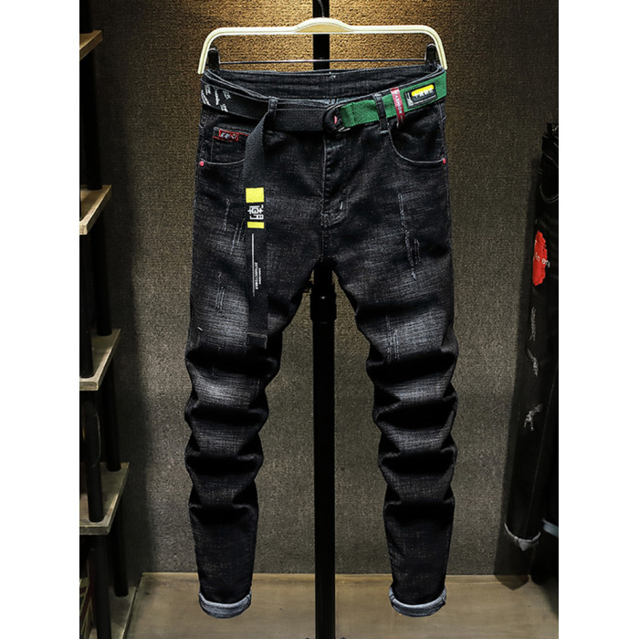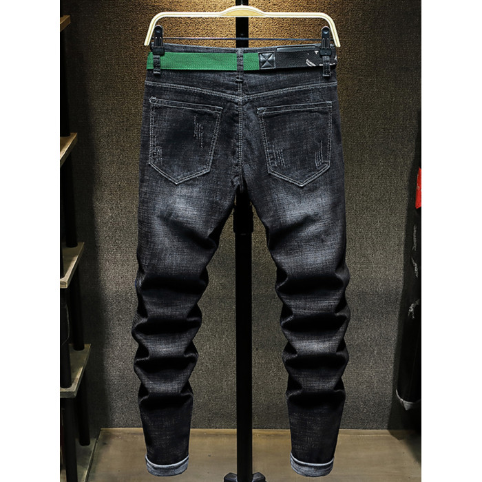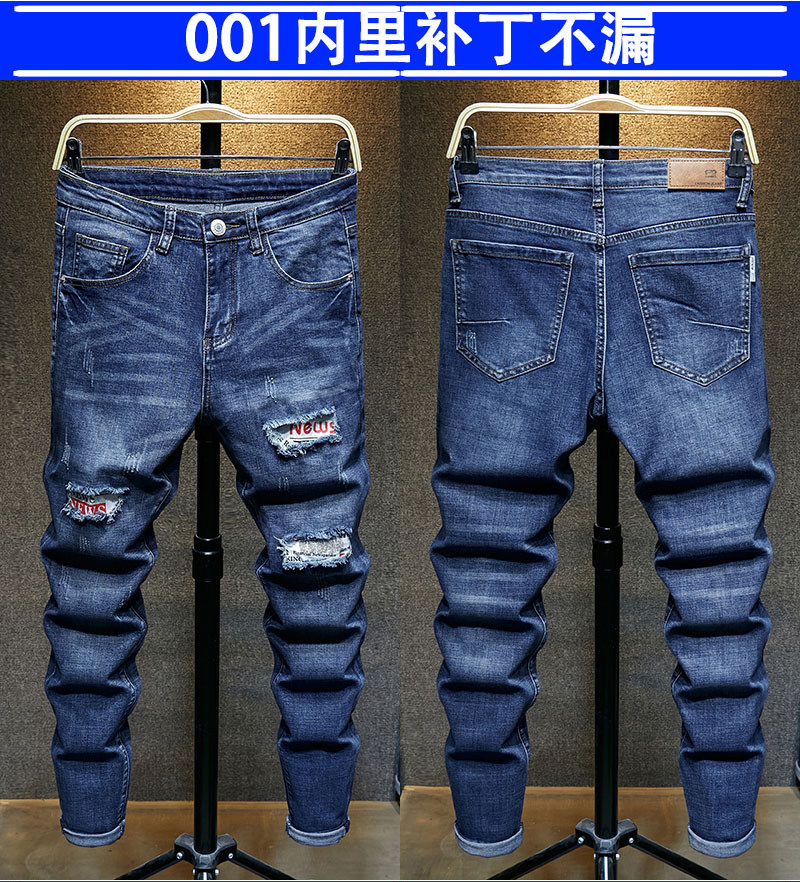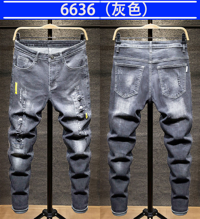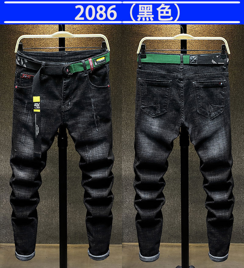 秋季新款潮牌破洞黑色新塘牛仔褲男士寬鬆直筒韓版潮流高彈力褲子