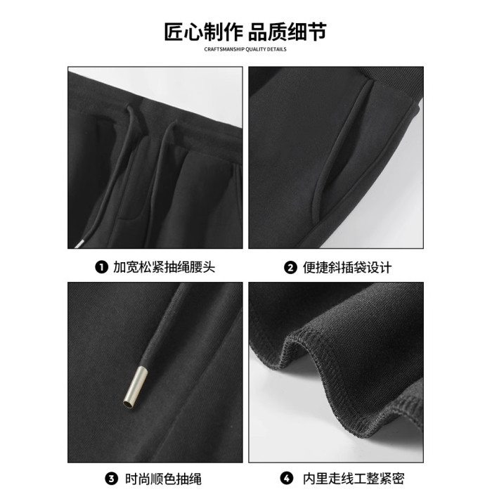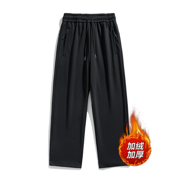 大碼加絨褲子男秋冬季直筒休閒長褲加肥加大男士運動束腳針織衛褲